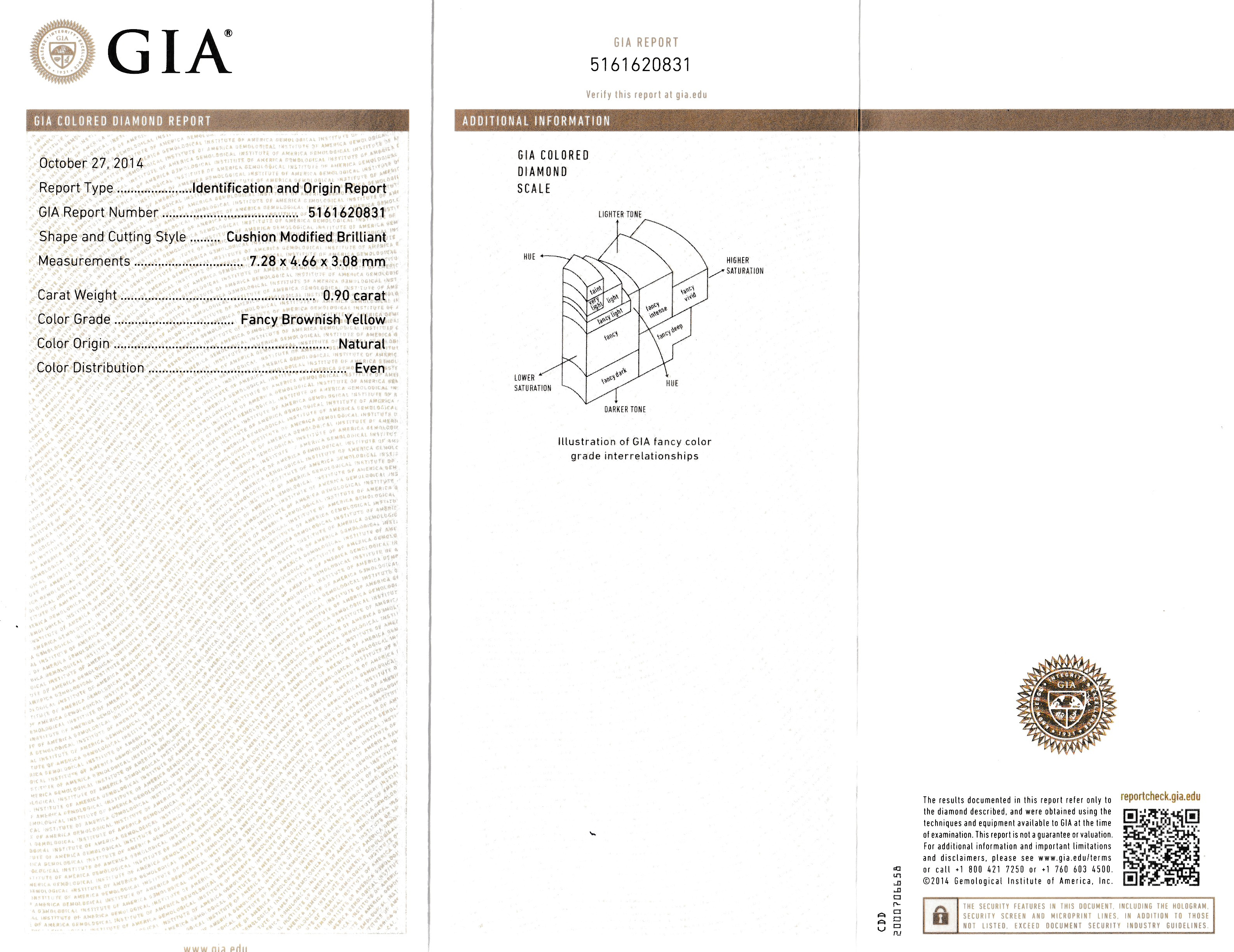 Loser Diamant im Cushion-Cut, 0.90 ct Natural Fancy Brownish Yellow, verschweißt, GIA Expertise Schätzpreis: 2013, - EUR