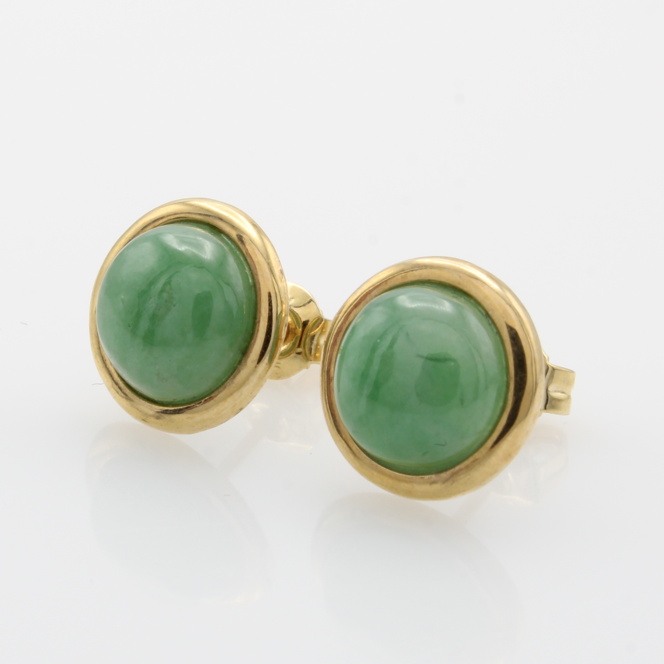 Paar Ohrstecker mit Jade, GG 585/000, D. ca.8 mm