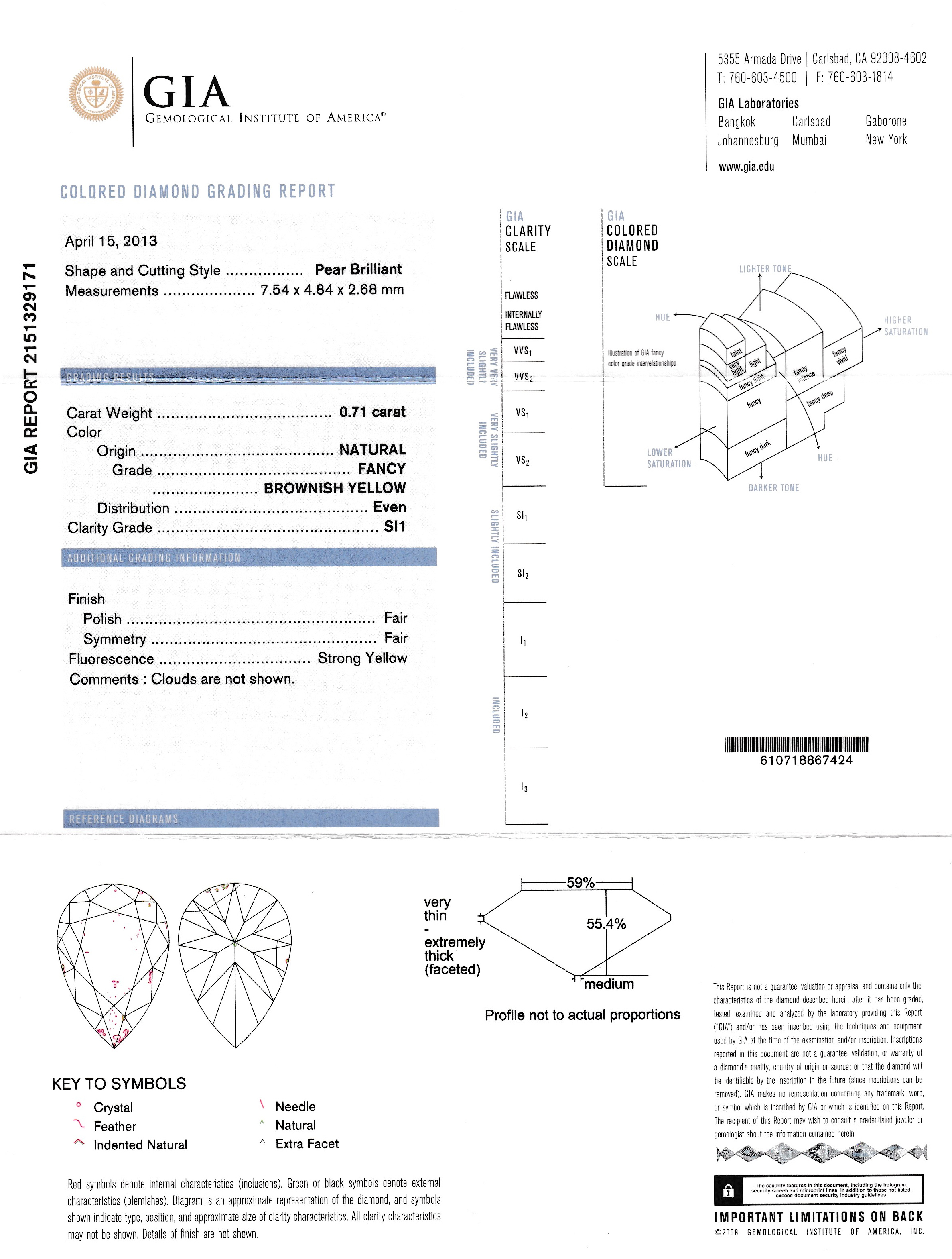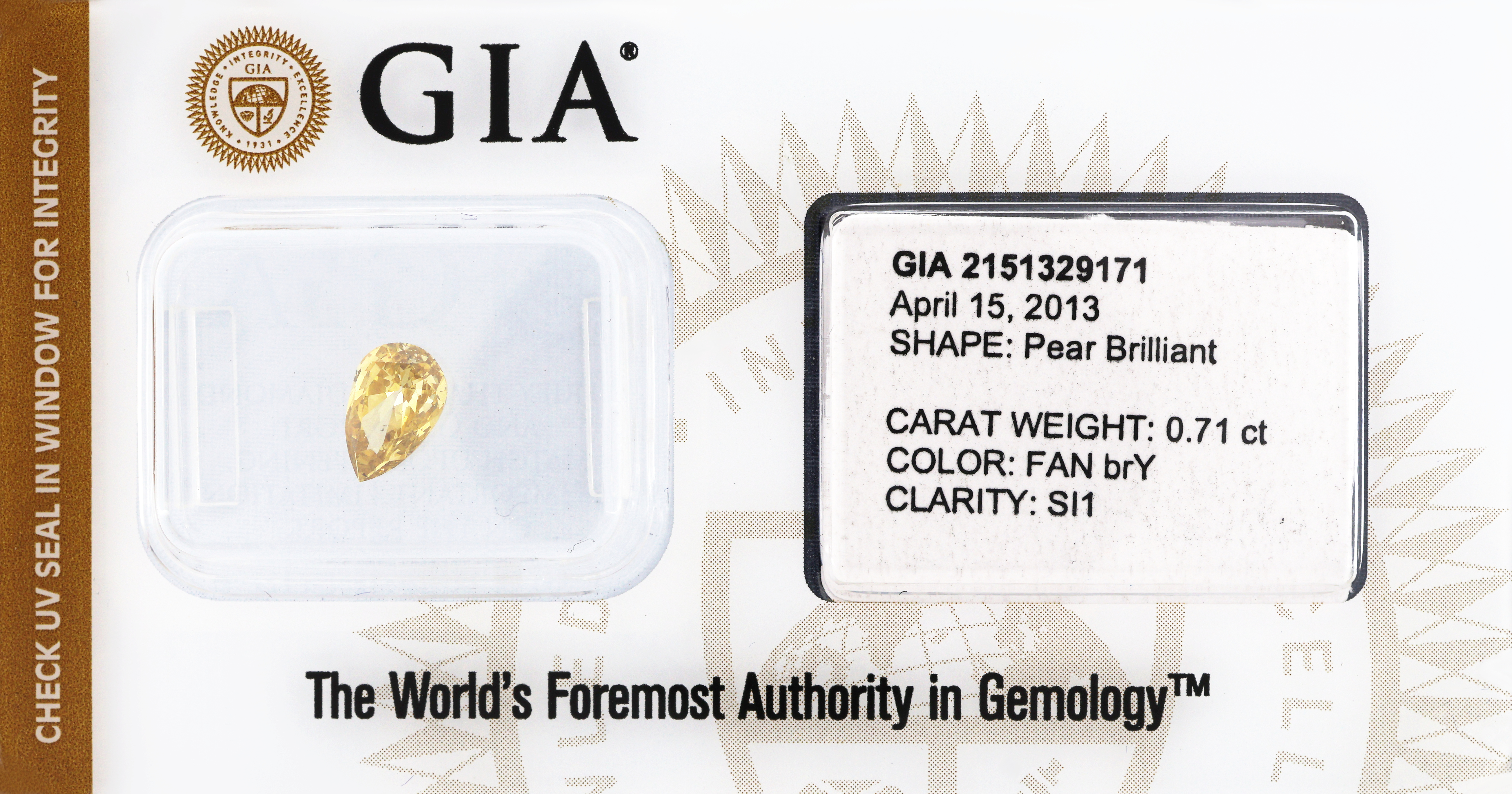 Loser Diamant-Tropfen, 0.71 ct Natural Fancy Brownish Yellow/si1, verschweißt, GIA Expertise Schätzpreis: 1955, - EUR