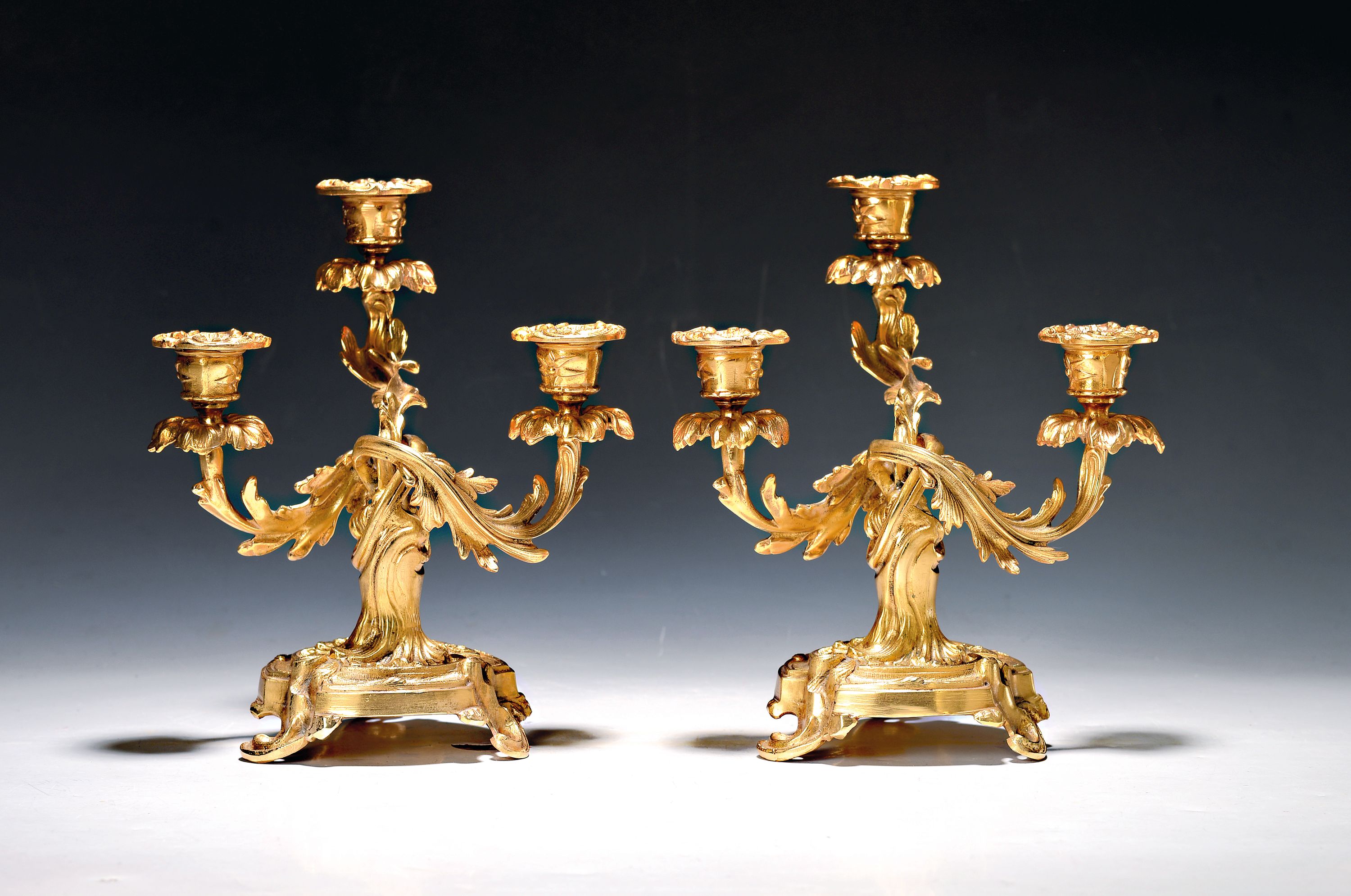 Paar Rokoko-Leuchter/Prunkleuchter, wohl Frankreich, um 1870, Bronze, vergoldet,