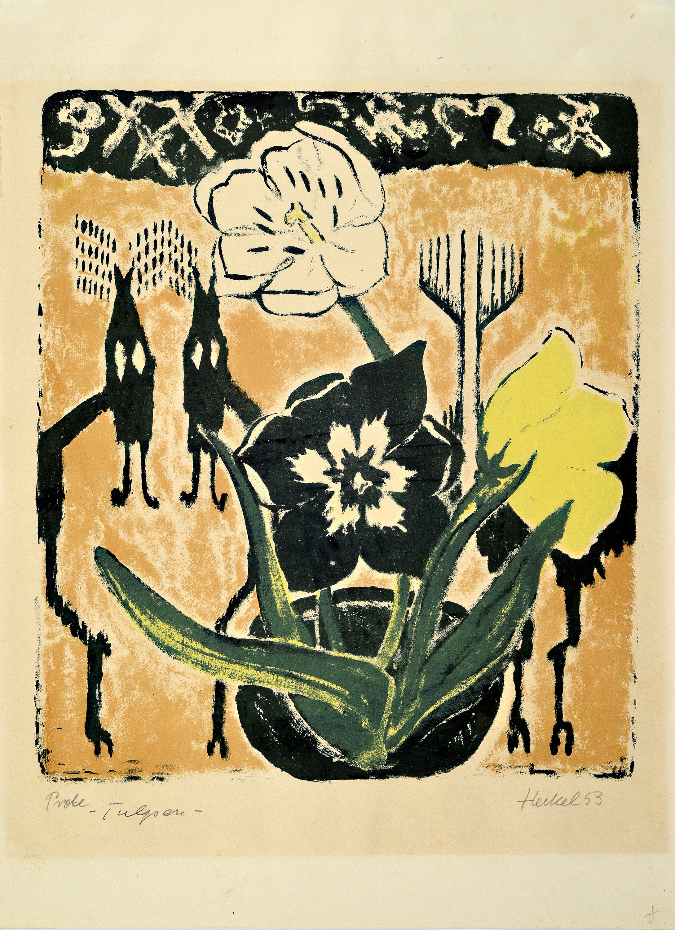 Erich Heckel, 1883 Döbeln-1970 Radolfzell, Tulpen, Farbholzschnitt, rechts unten