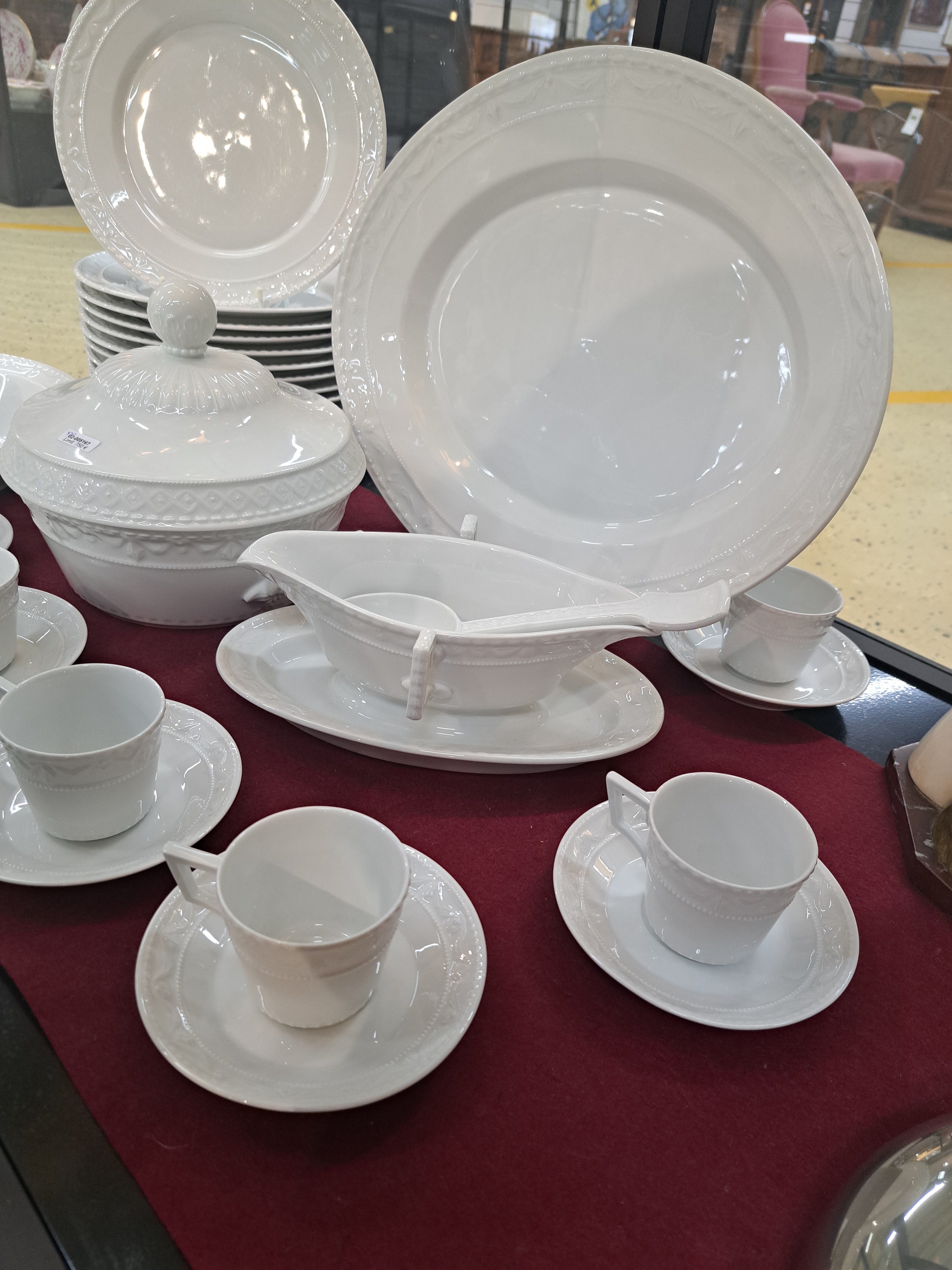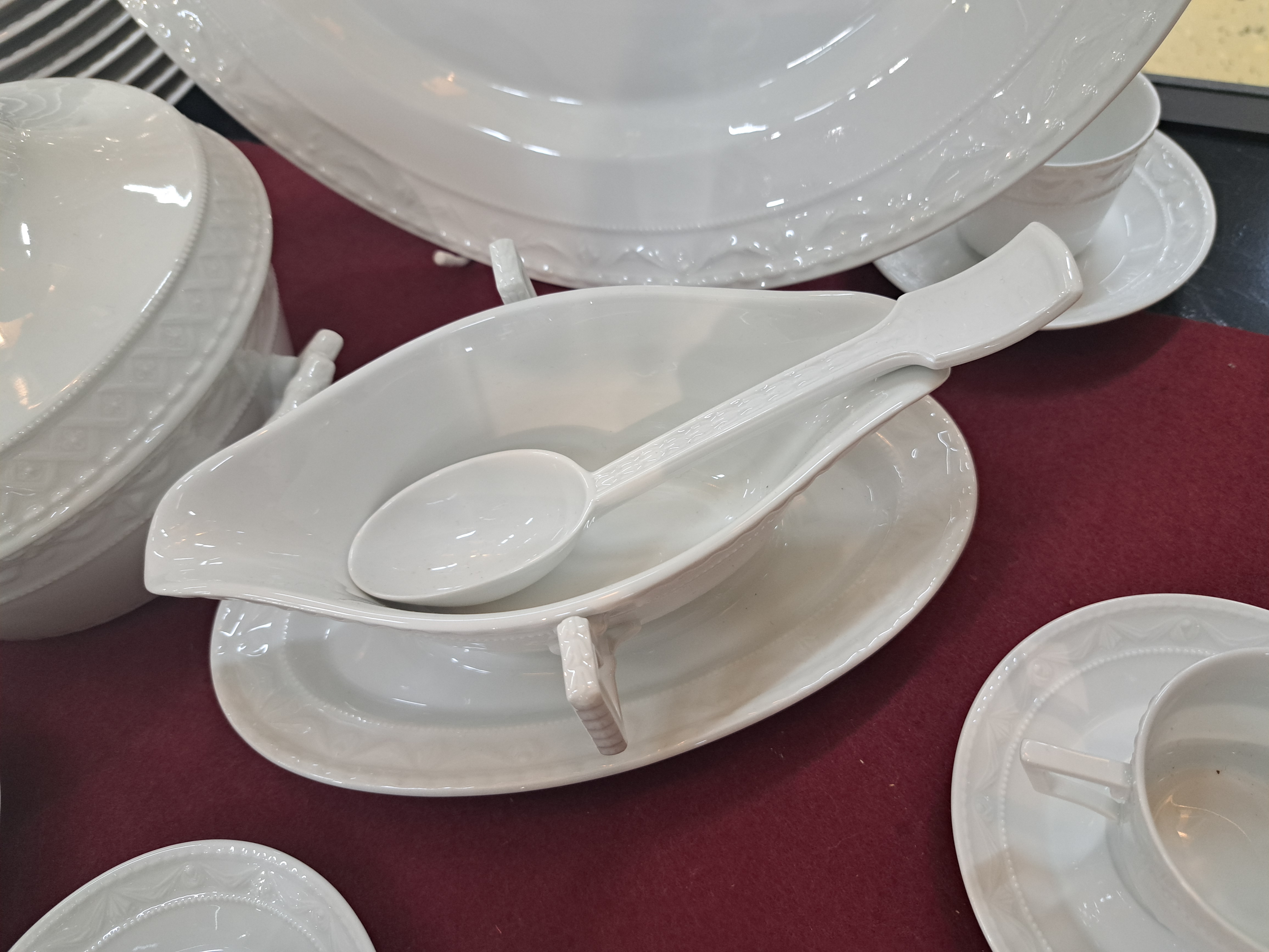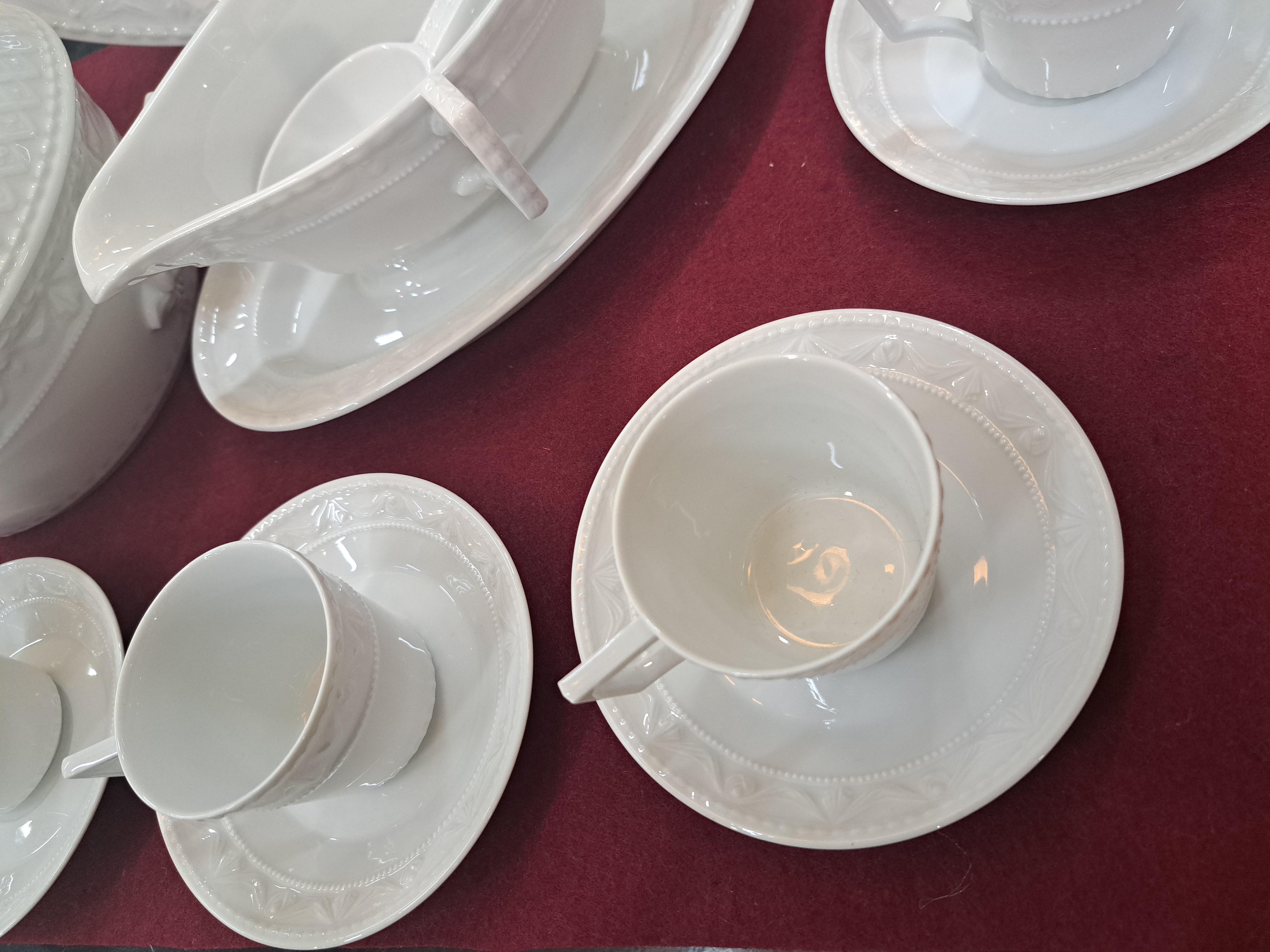 Herzog von Kurland, ausgehendes 20.Jh., Weißporzellan, Reliefzier, 12 Menüteller