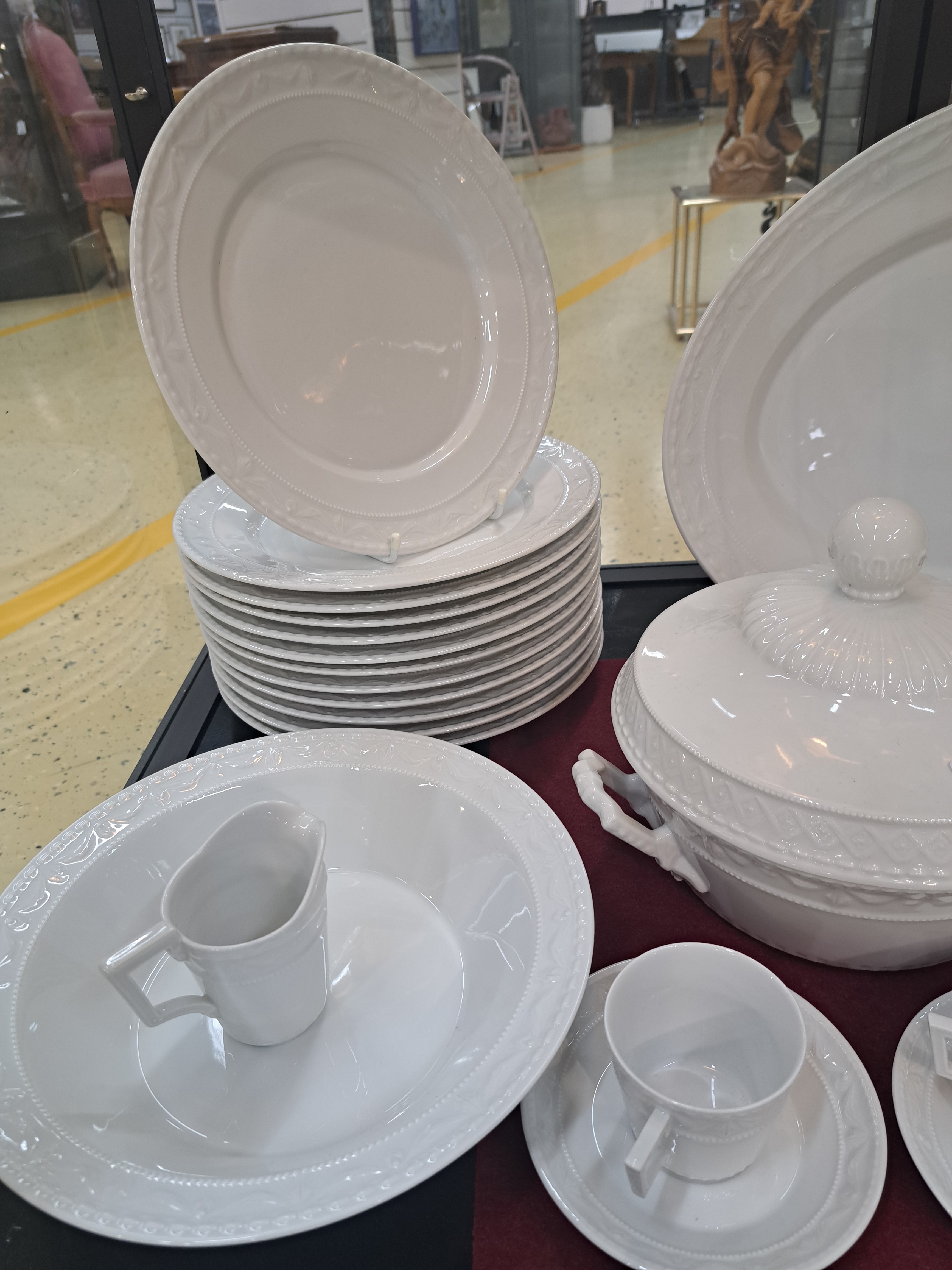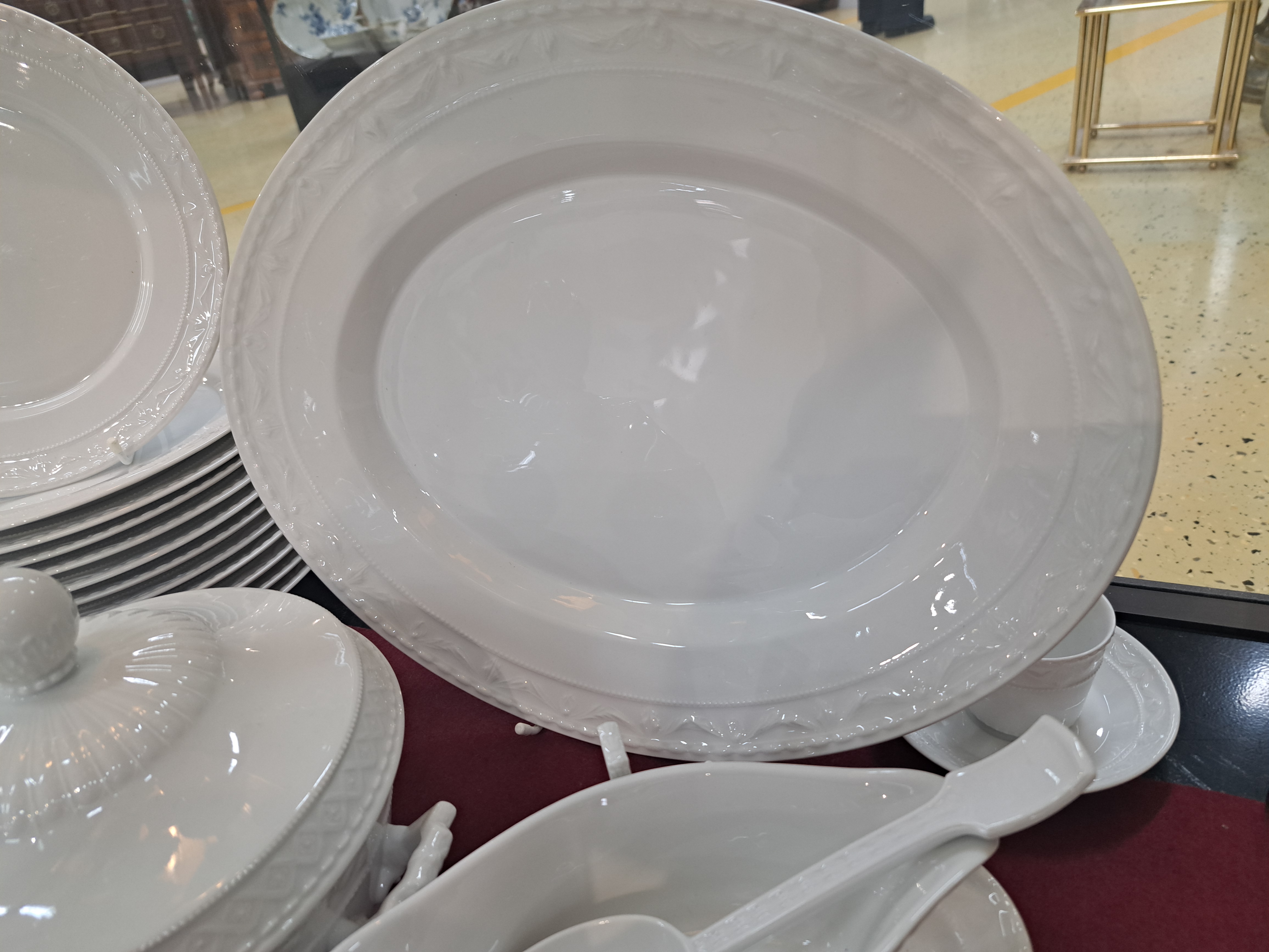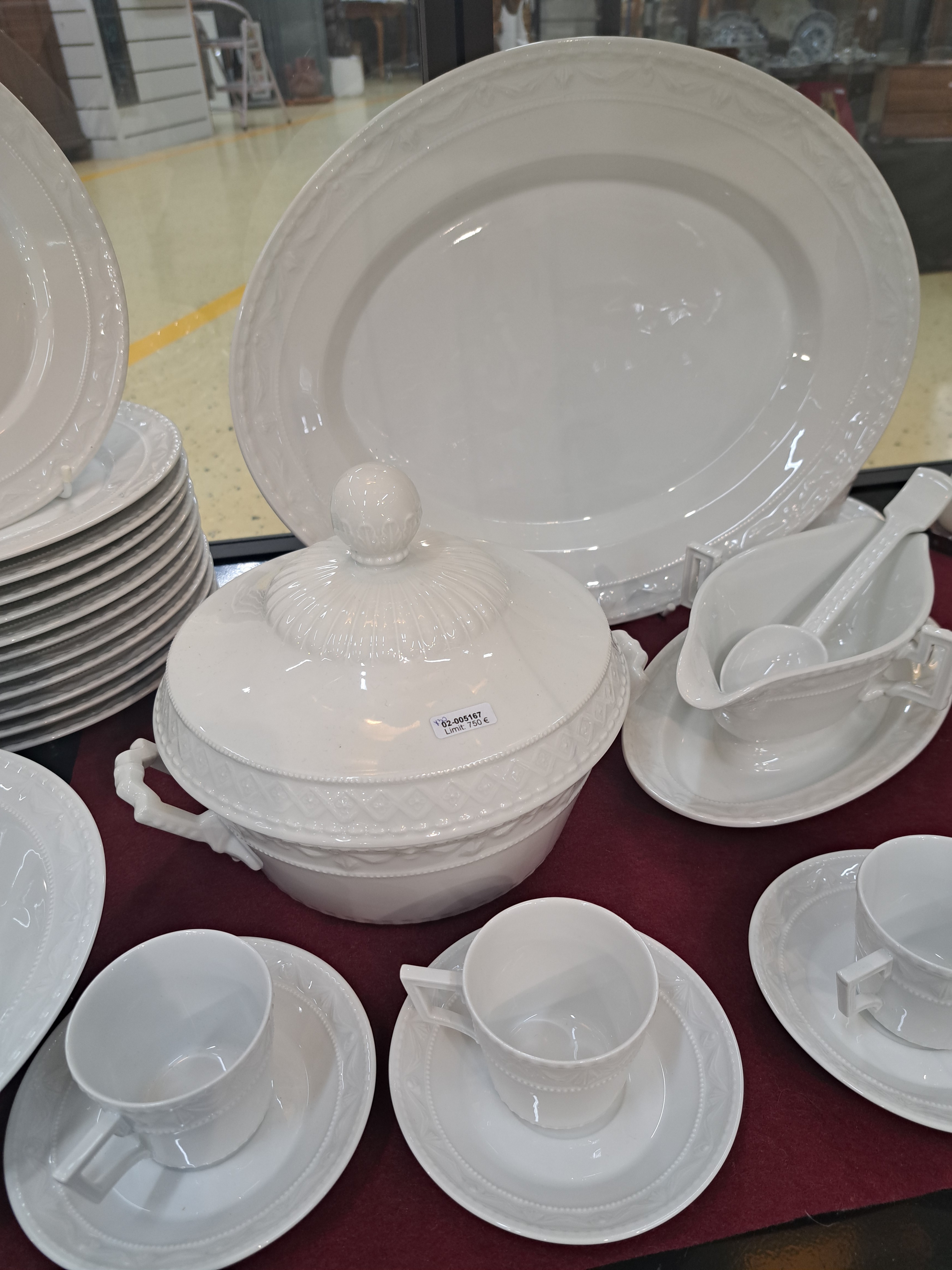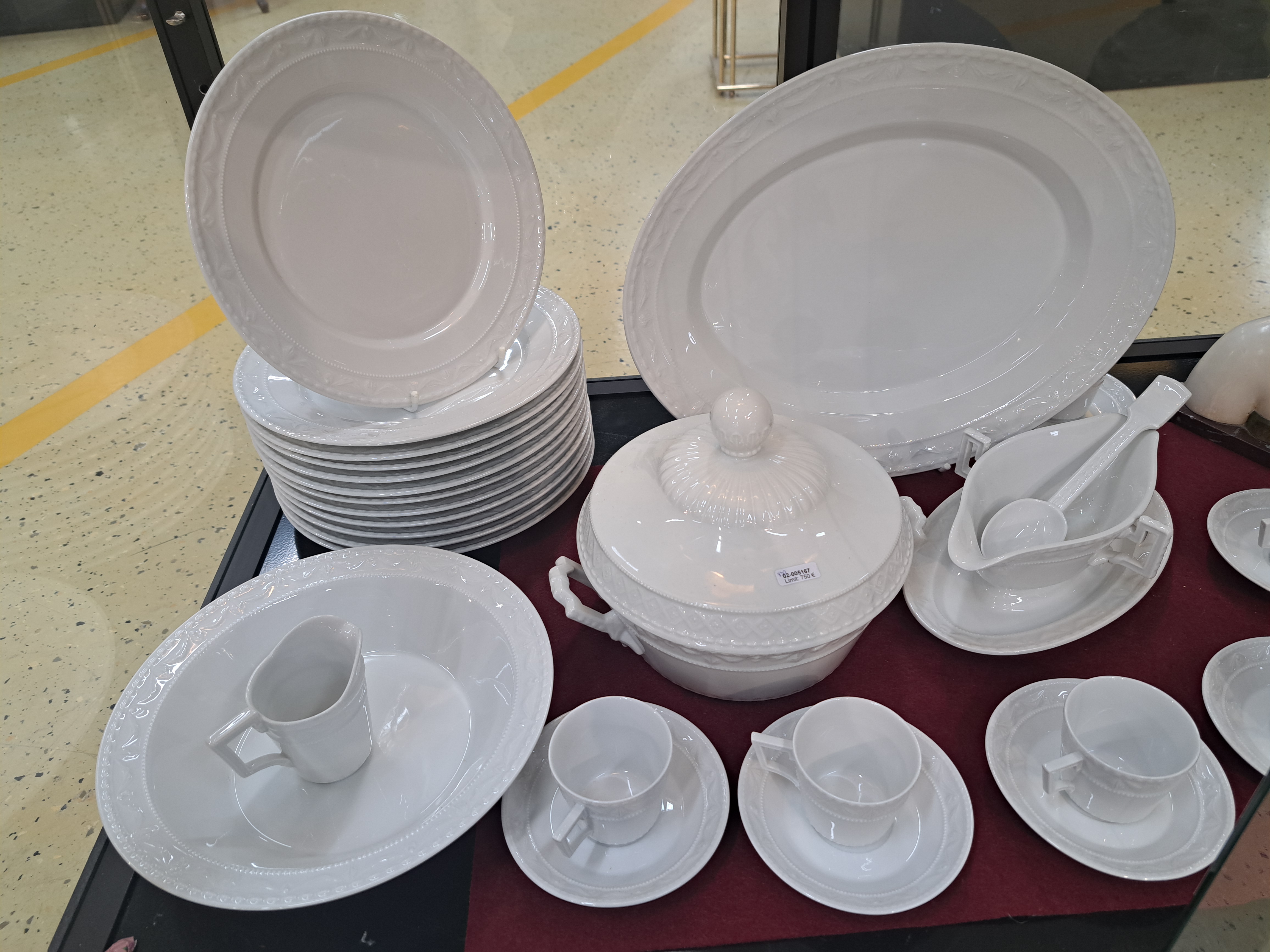 Herzog von Kurland, ausgehendes 20.Jh., Weißporzellan, Reliefzier, 12 Menüteller