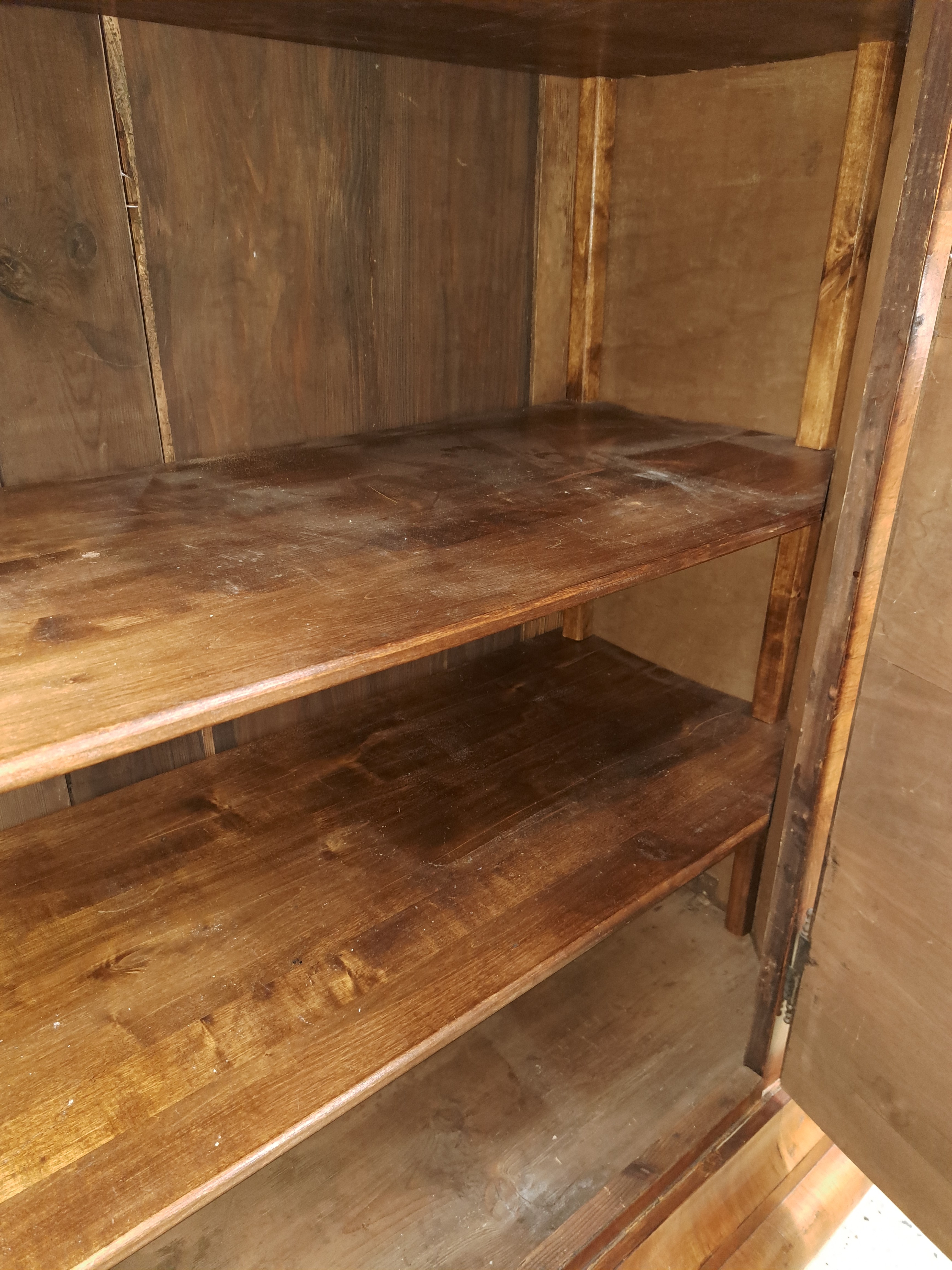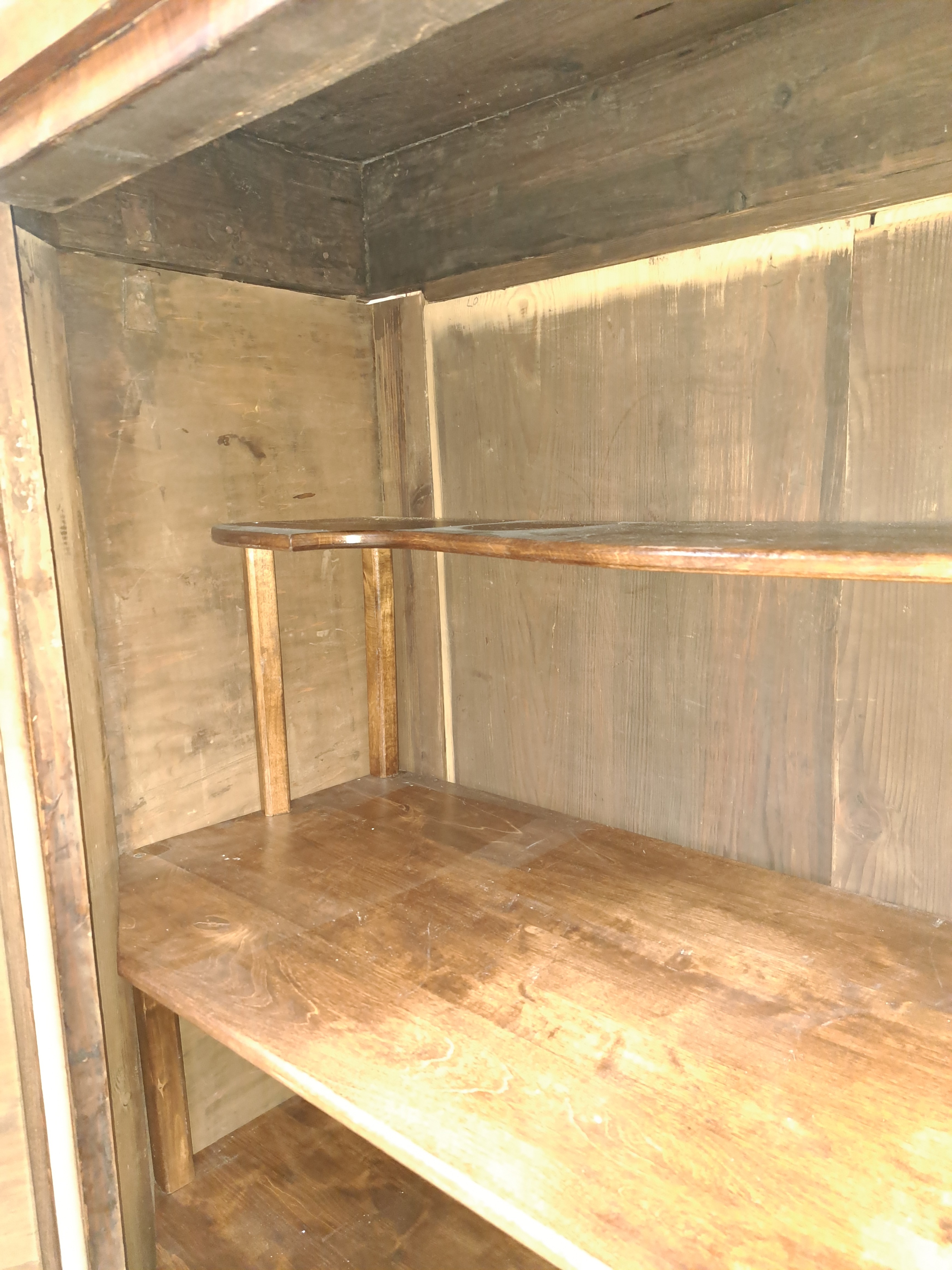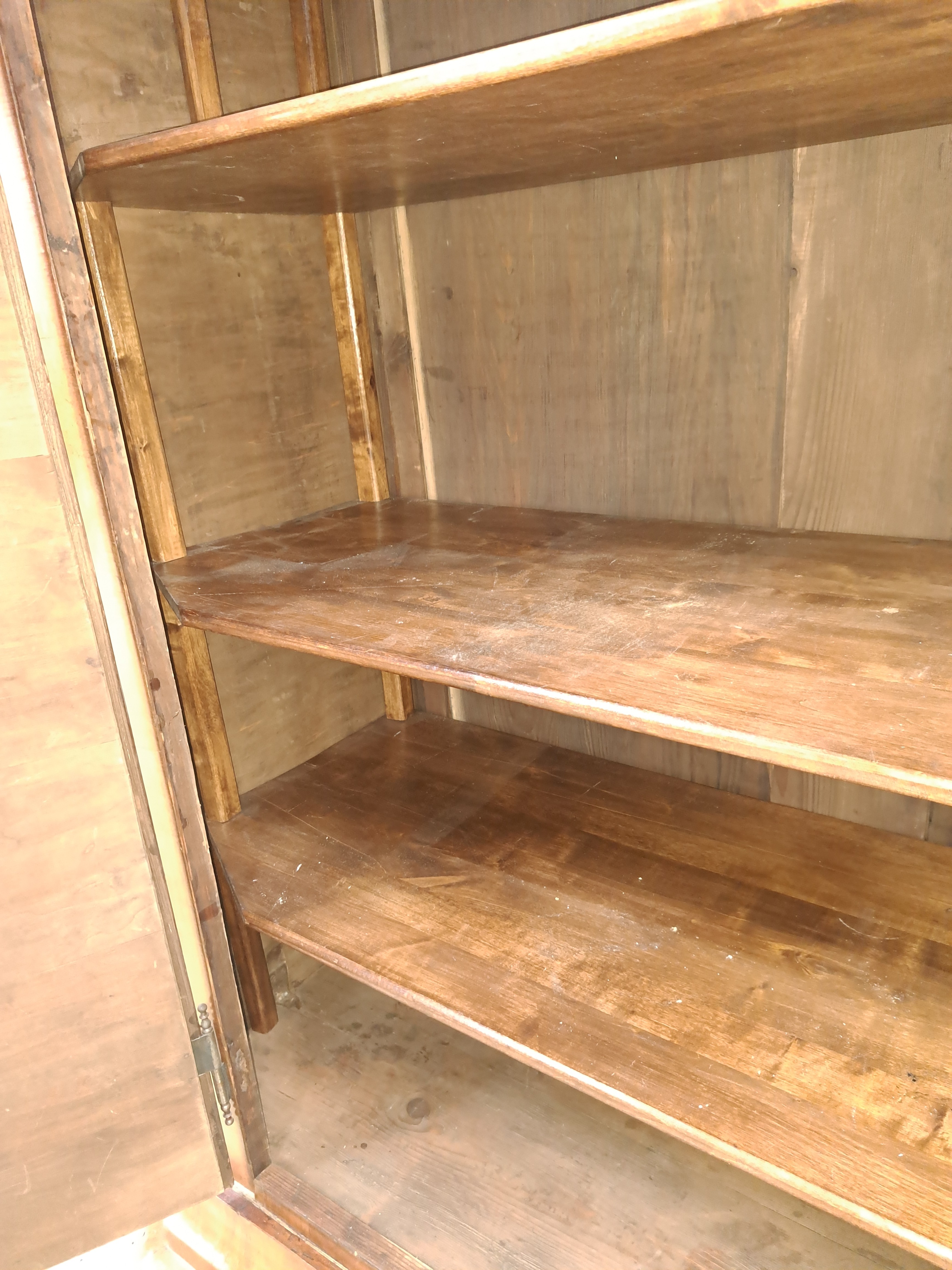Biedermeierschrank, um 1830/40, Nußbaumfurnier, Türen mit aufwendigen Würfelintarsien aus diversen Hölzern, ca. 194 x 172 x 64 cm, EZ 2