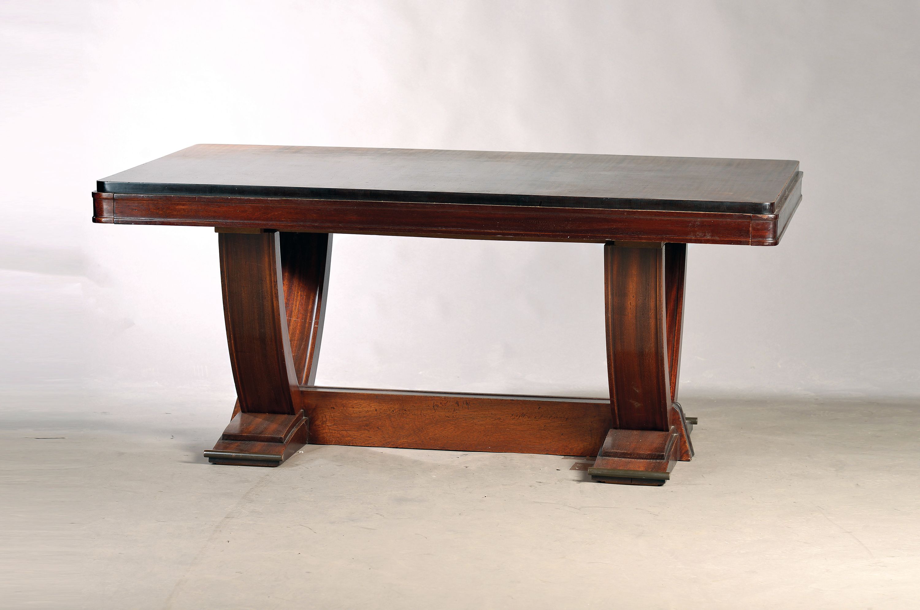 Salontisch, Art-Deco, um 1930, Mahagoni massiv, Seiten zum ausziehen, ohne Verlängerungsplatten,