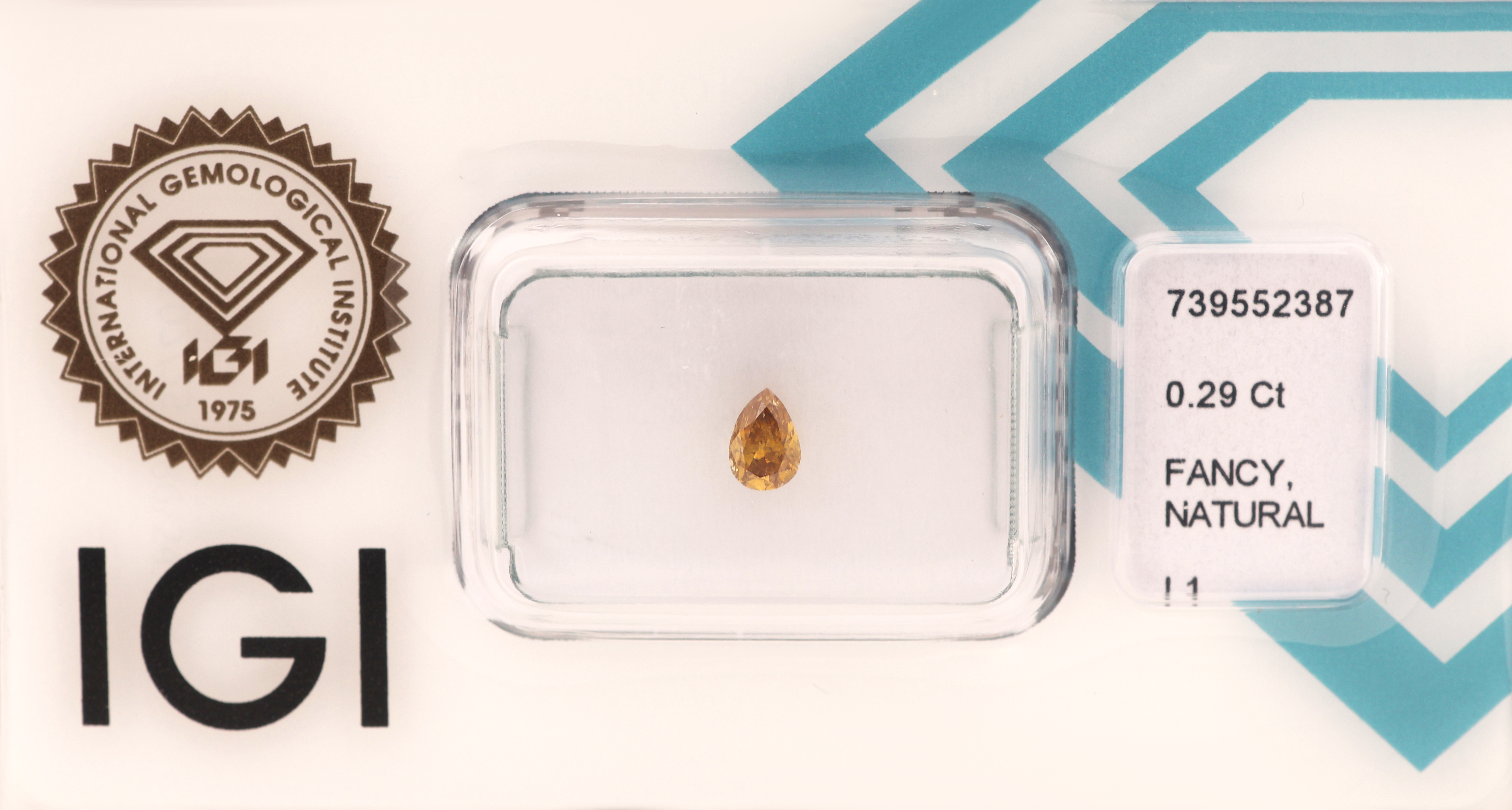 Yellow/si2, 1 x bevelled pear, 0.29 ct Natural Fancy Intense Orangy Yellow/p1, and