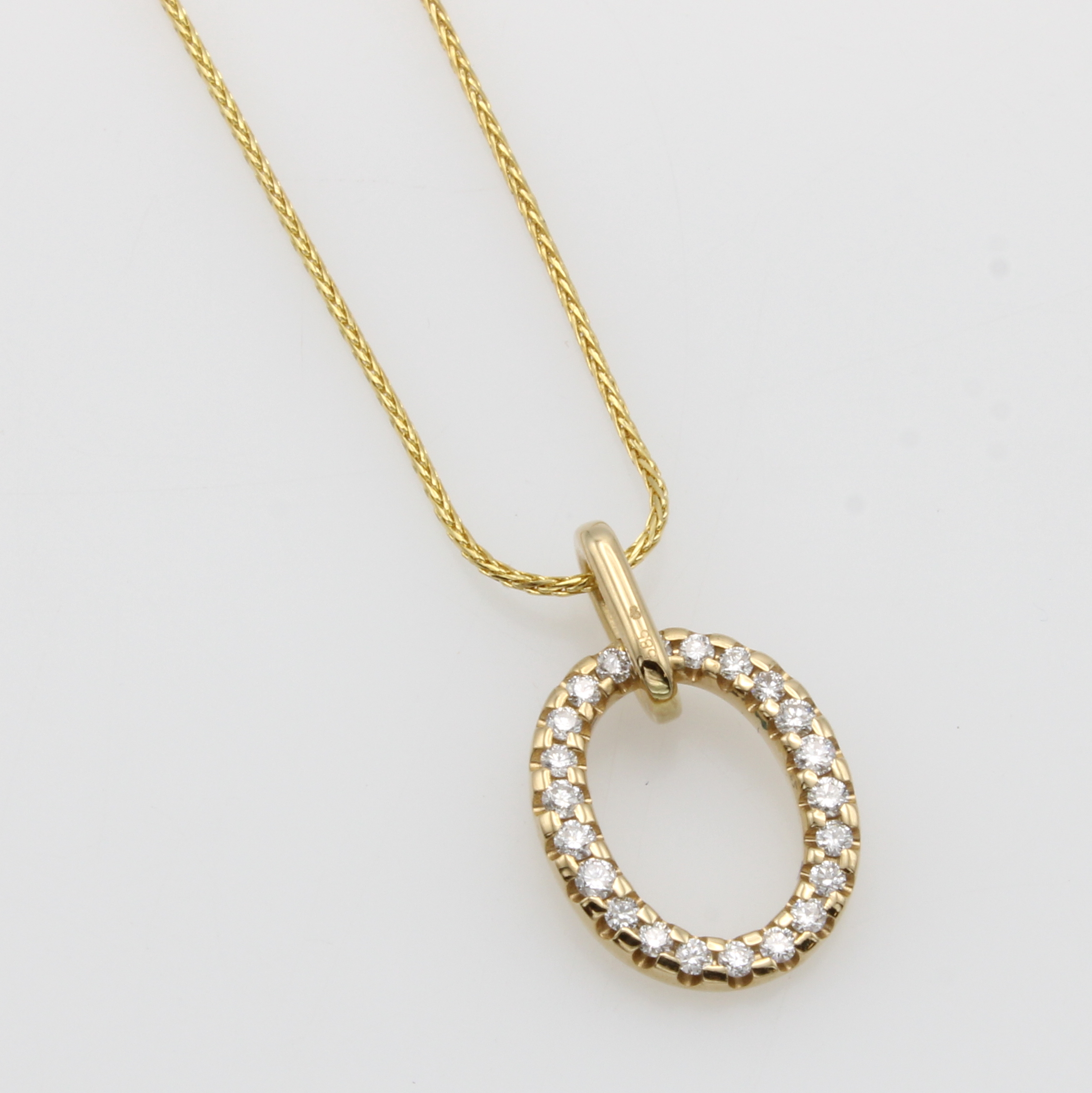 Anhänger mit Brillanten an Kette, GG 585/000, ovale Form, Brill. zus. ca. 0.20 ct Weiß/p, in L. ca. 43 u. 45 cm zu tragen Schätzpreis: 1310, - EUR