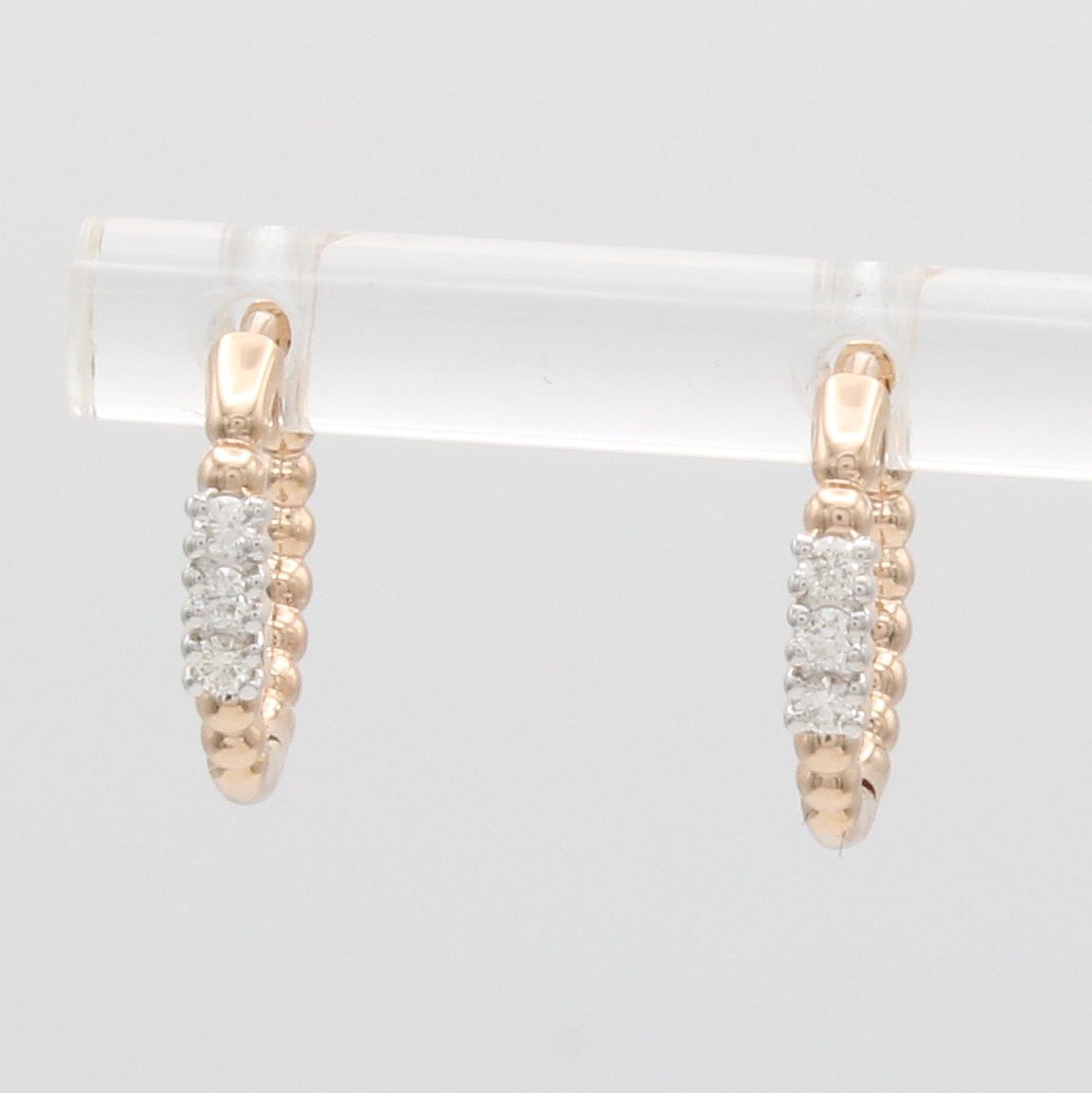 Paar Klappcreolen mit Brillanten, RG 585/000, 6 Brill. in rhod. Fassungen zus. ca. 0.10 ct Weiß/si, Kugeldesign, Innend. ca. 9 mm Schätzpreis: 860, - EUR