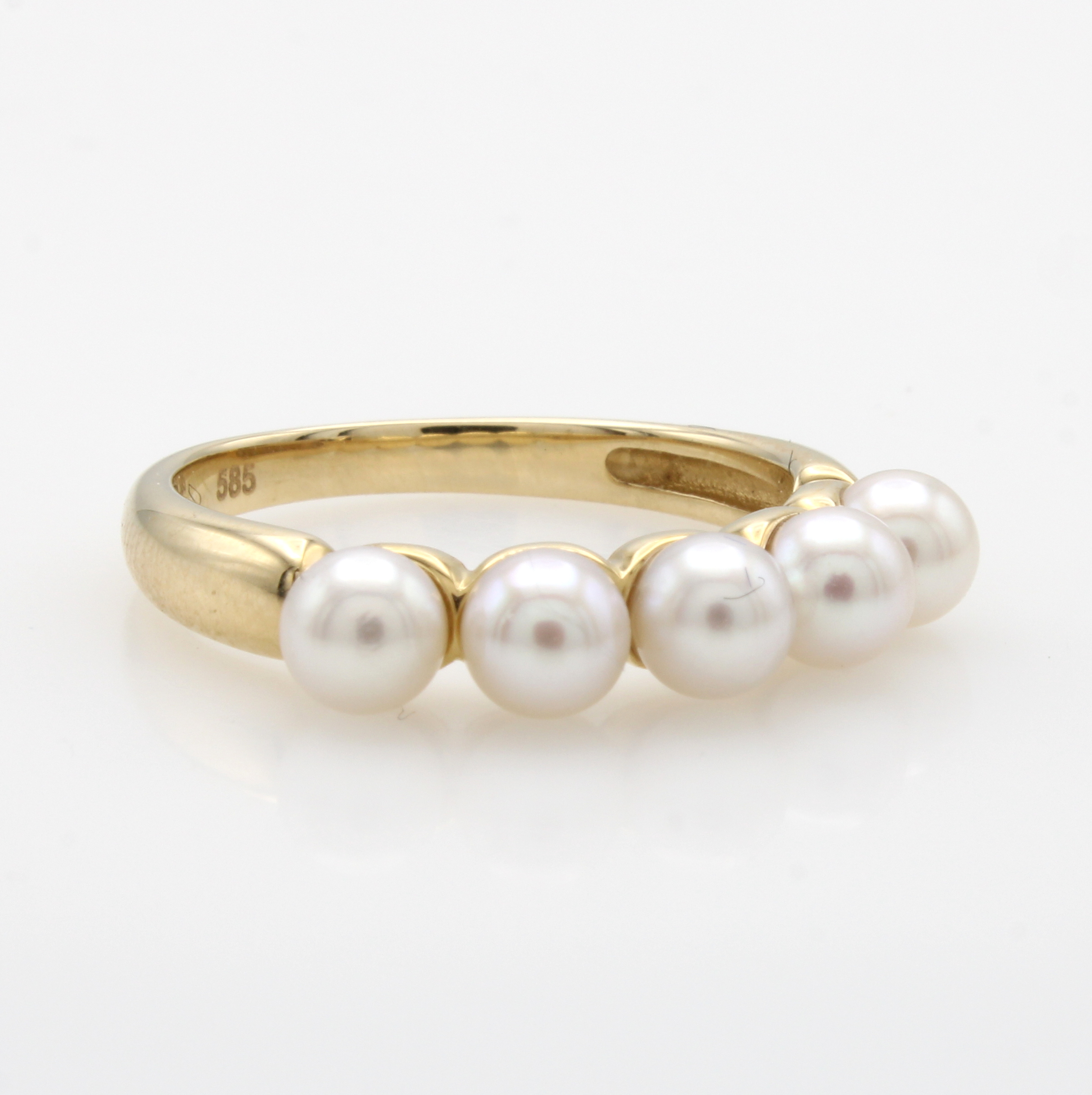 Ring mit Akoyazuchtperlen, GG 585/00, 5 weiße Perlen ca. 4.5-5 mm, RW ca. 55