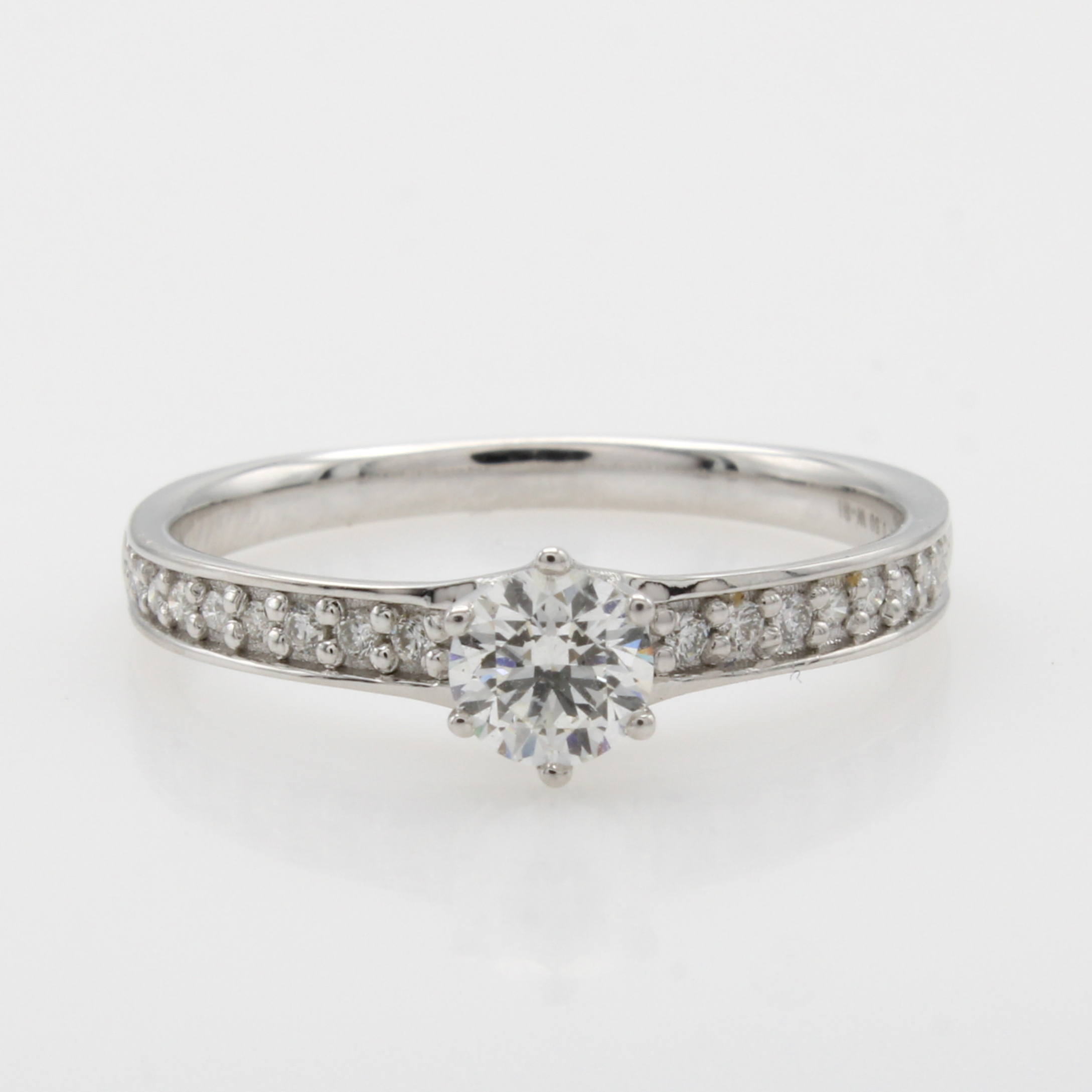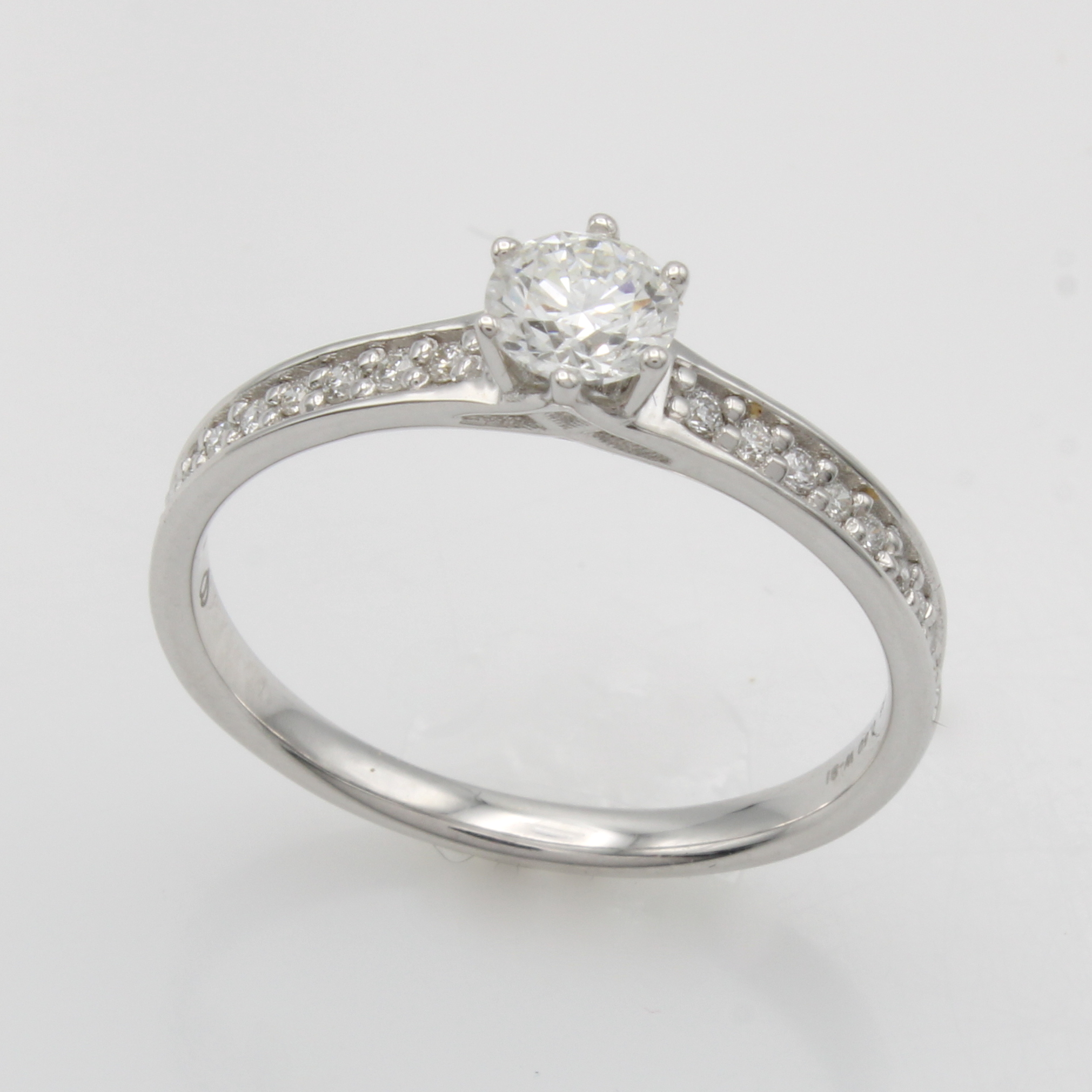 Ring mit Brillanten, WG 585/000, Solitär in Krappenfassung ca. 0.40 ct u. Besatzbrill. in Ringschultern zus. ca. 0.15 ct Weiß/si, RW ca. 56