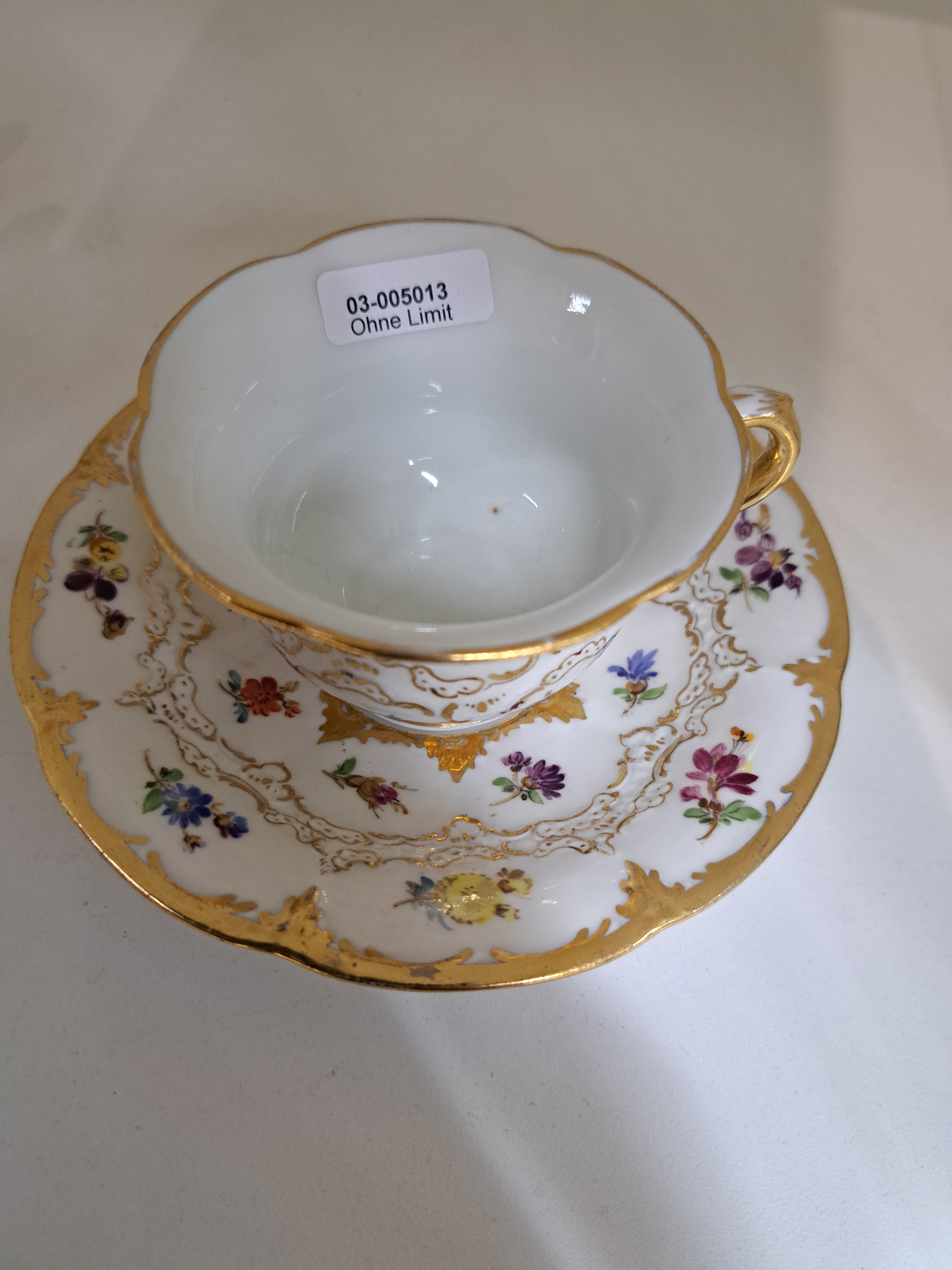Mokkatasse mit Untertasse, Meissen, 2.H.20.Jh., B-Form, bemalt im Dekor gestreute