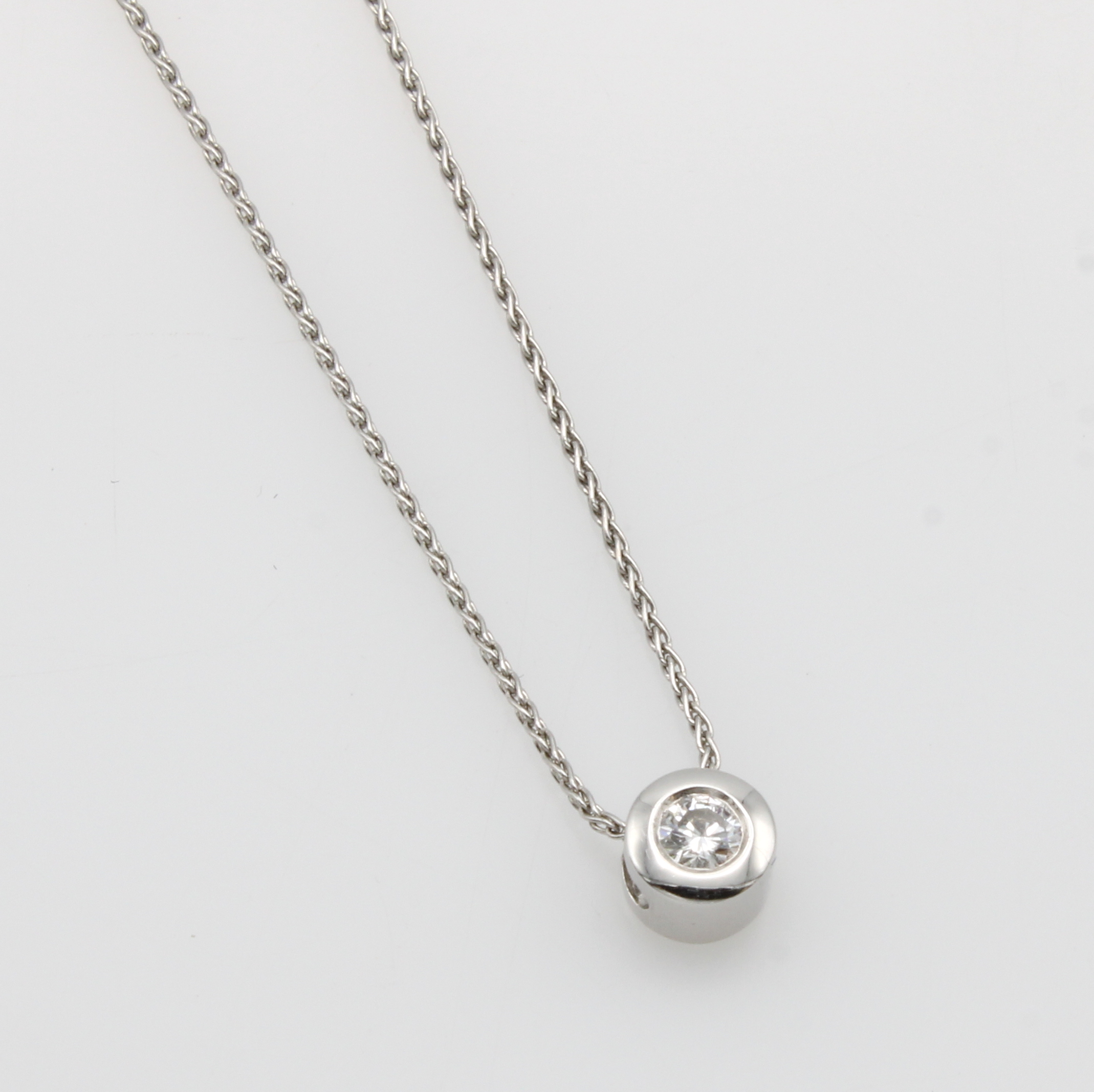 Brillantanhänger an Kette, WG 585/000, Brill. in glatter Fassung ca. 0.08 ct Weiß/si, L. ca. 45 cm Schätzpreis: 900, - EUR