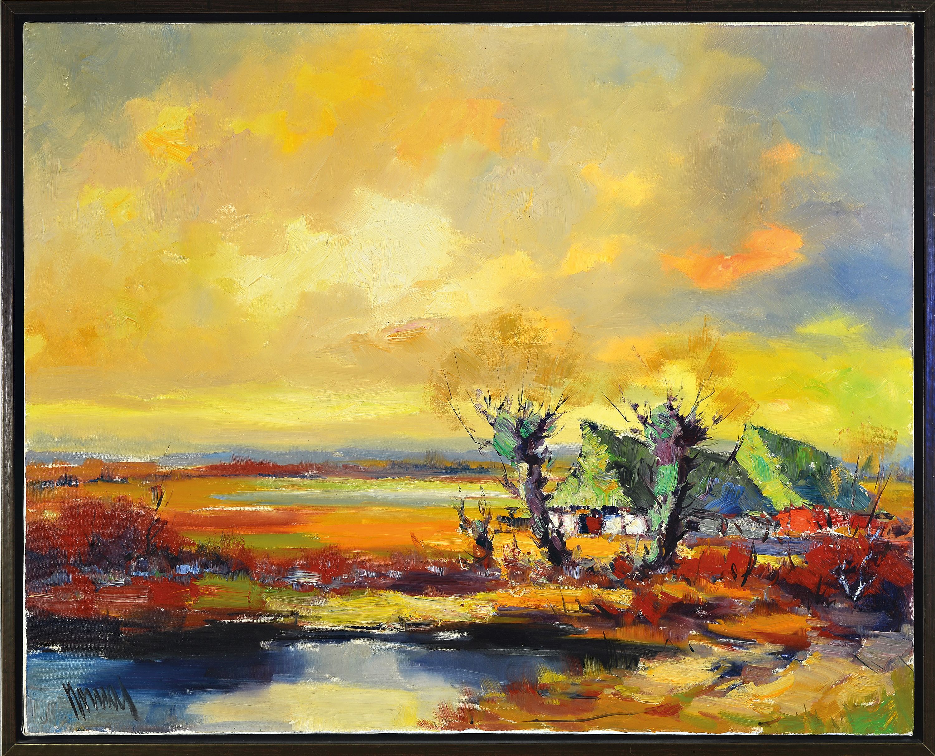 unten unleserlich signiert, farbkräftiger expressiver Duktus. ca. 80x100cm, Rahmen