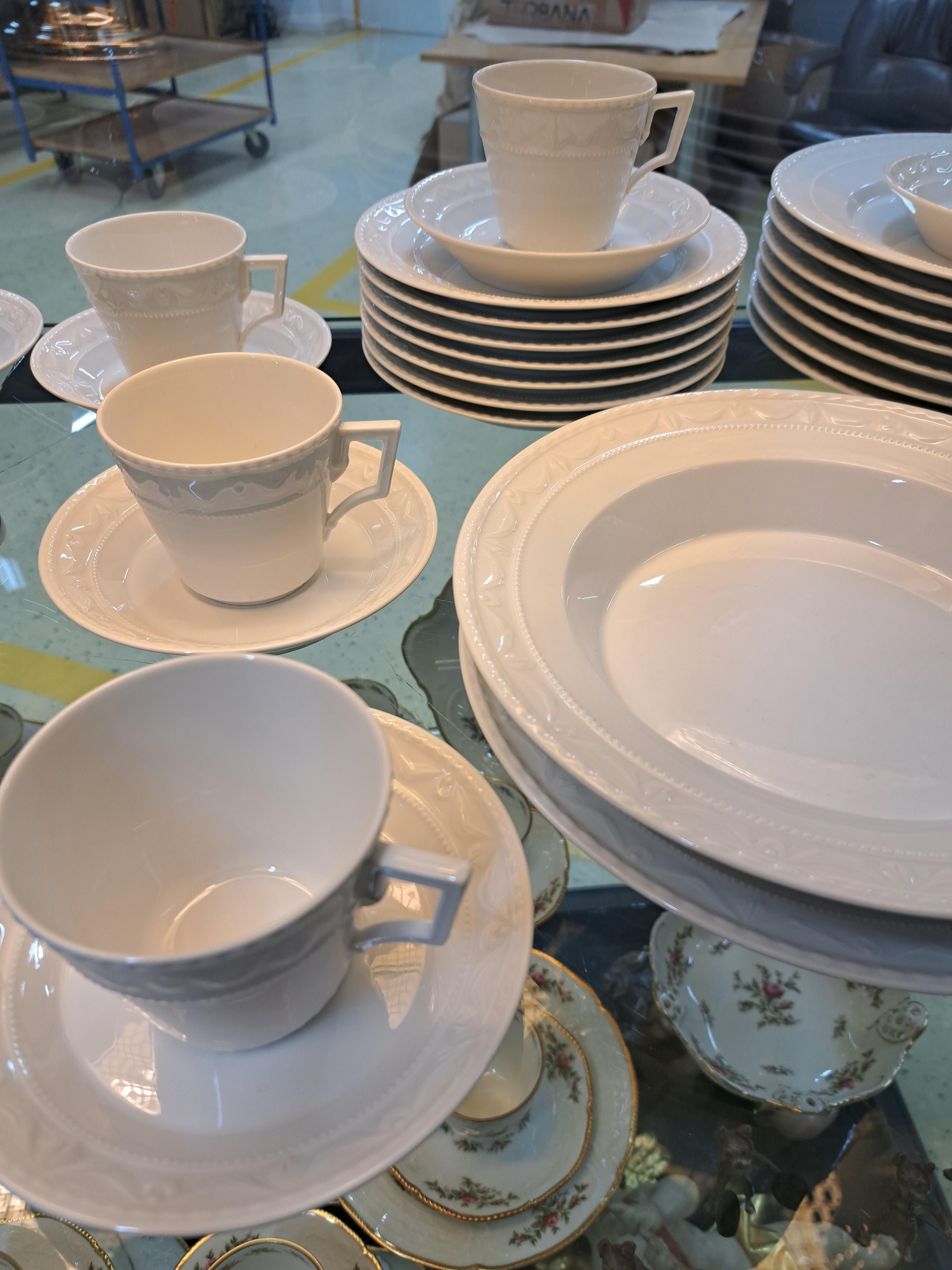 6 tiefe Teller, 8 Desserteller, 8 Tassen mit Untertassen
