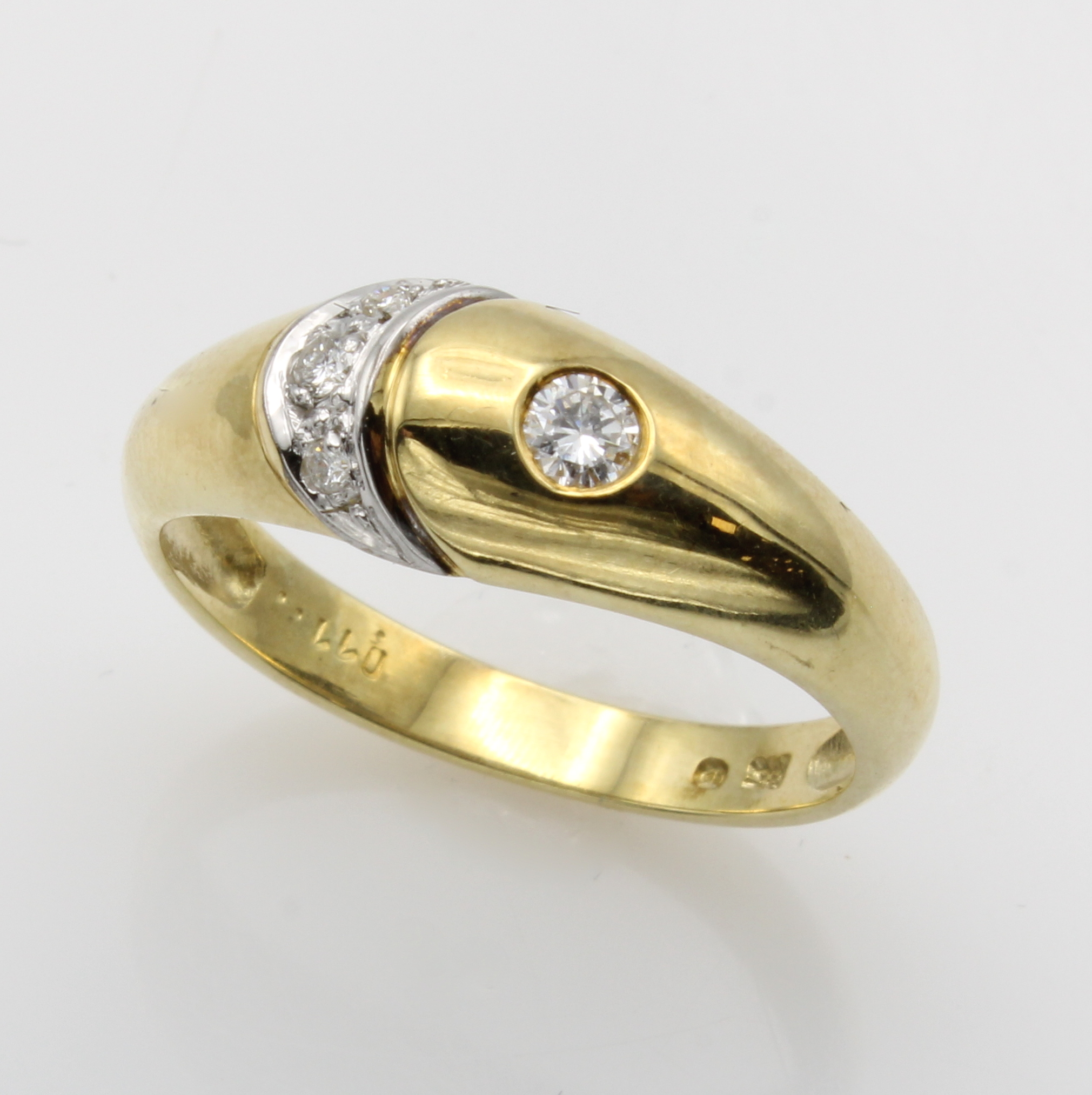 Ring mit Brillanten, GG 585/000, konvexer Ringkopf, Brill. zus. ca. 0.11 ct Weiß/p, RW ca. 55.5 Schätzpreis: 980, - EUR