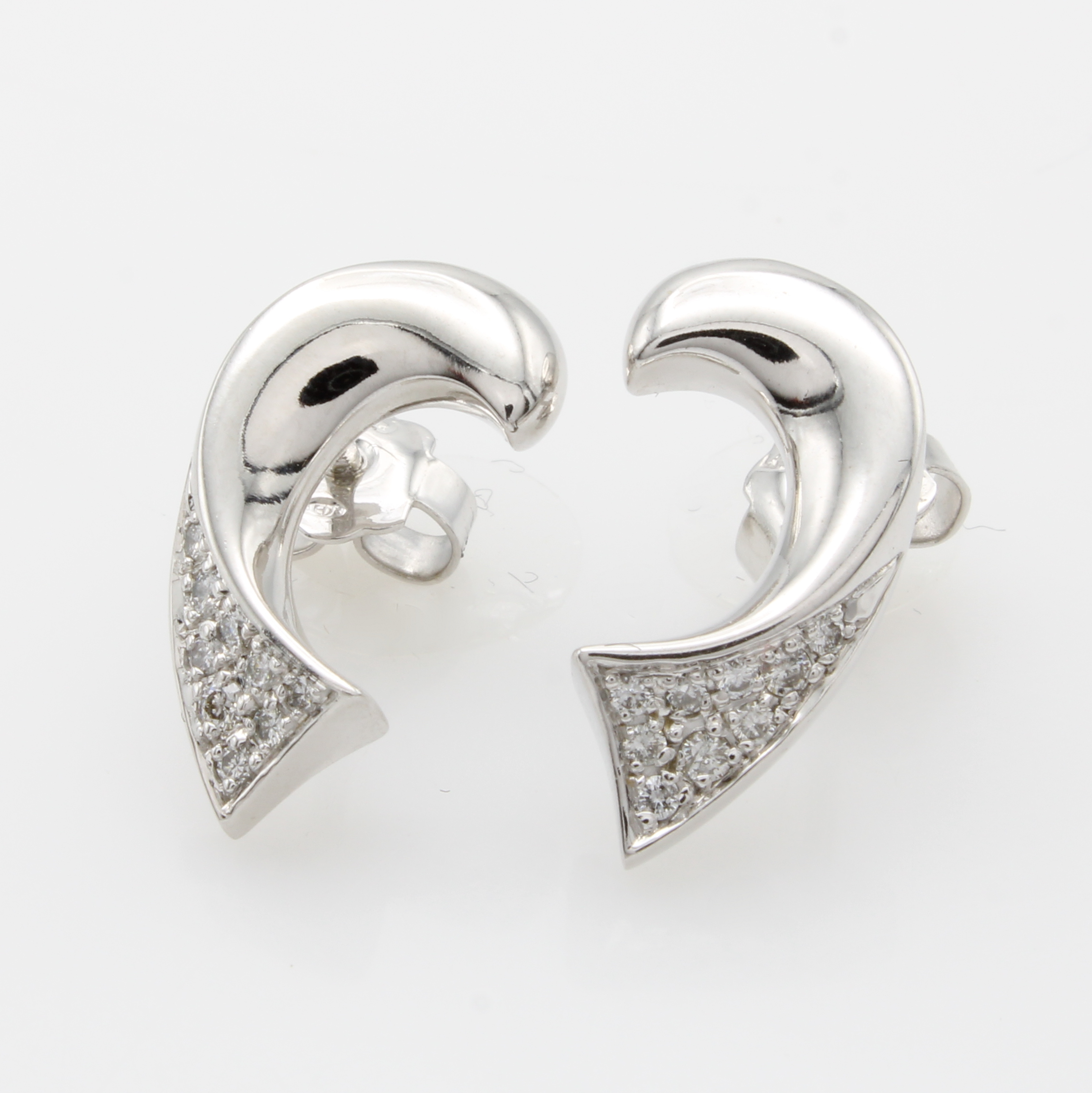 Paar Ohrstecker mit Brillanten, WG 585/000, geschwungene Form, Brill. zus. ca. 0.17 ct Weiß/si Schätzpreis: 1800, - EUR