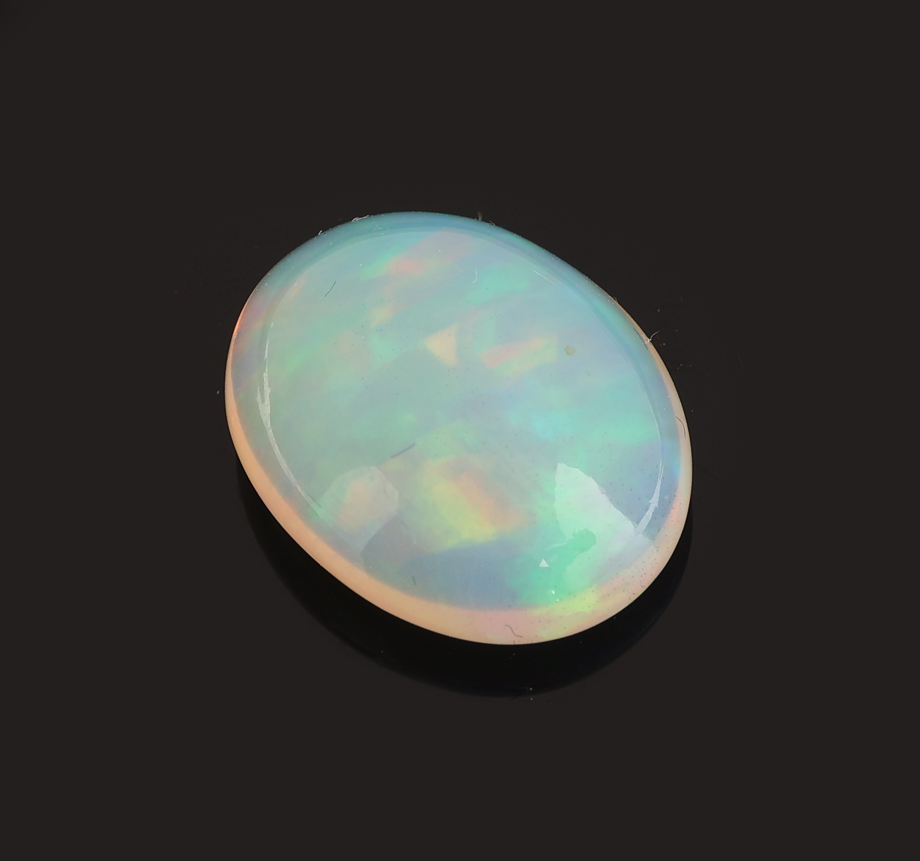 Loser weißer Opal, ca. 7.84 ct, ovaler Cabochon, Farbspiel in Grün, Blau und Rot,