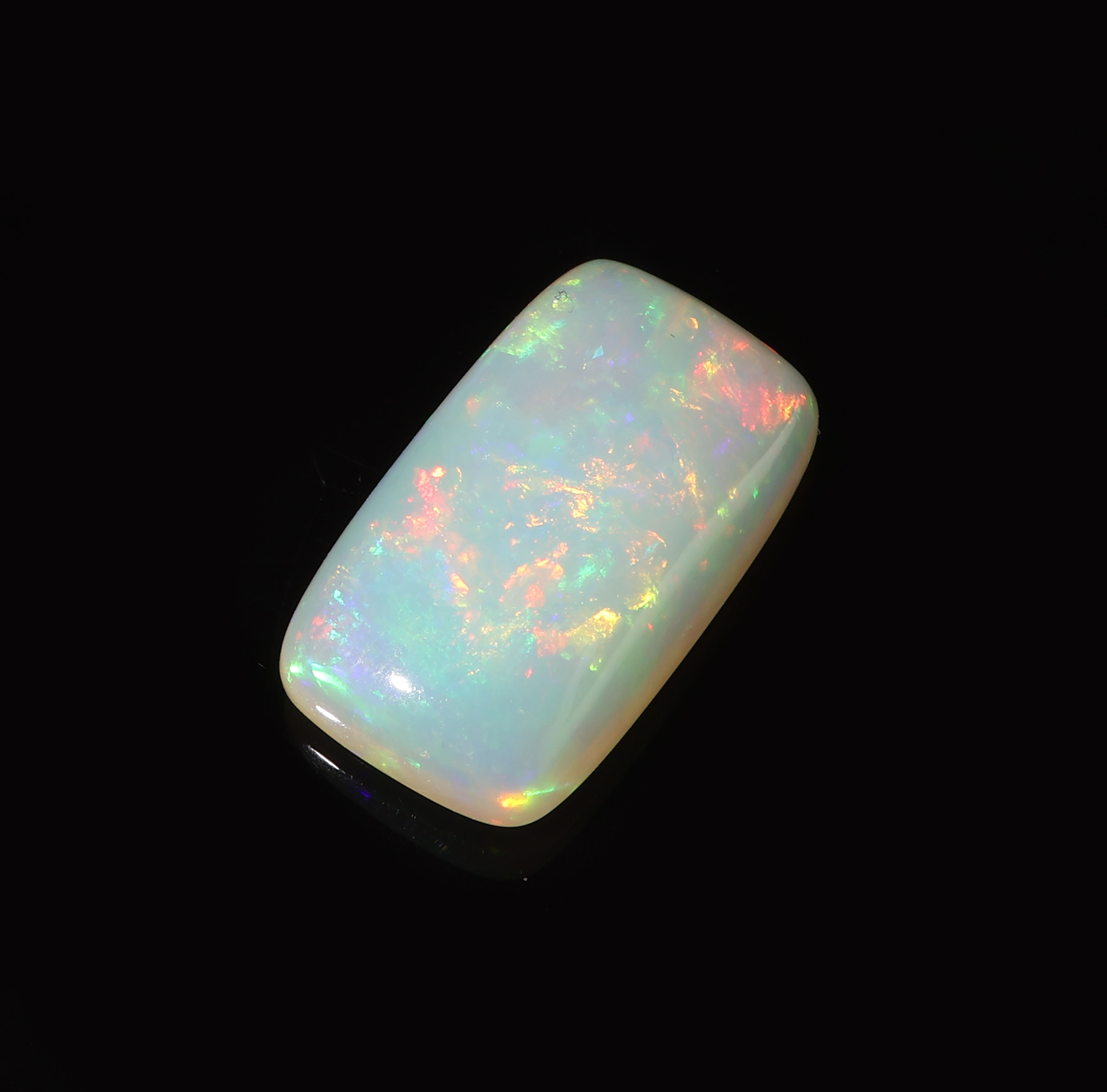 Loser weißer Opal, ca. 5.80 ct, kissenf. Cabochon, Farbspiel in Blau, Rot und Grün,
