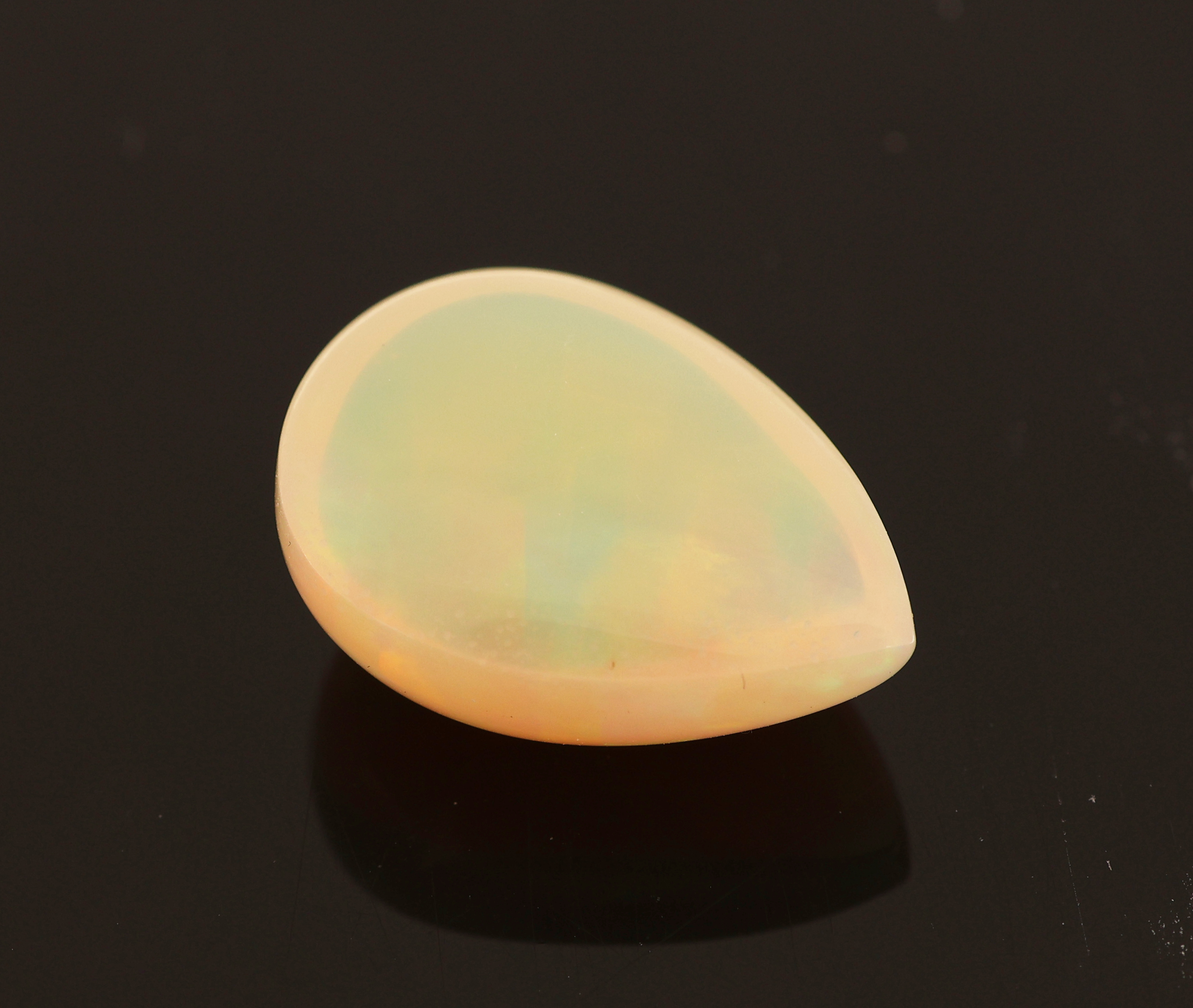 Loser weißer Opal, ca. 5.25 ct, tropfenf. Cabochon, Farbspiel in Grün, Blau und