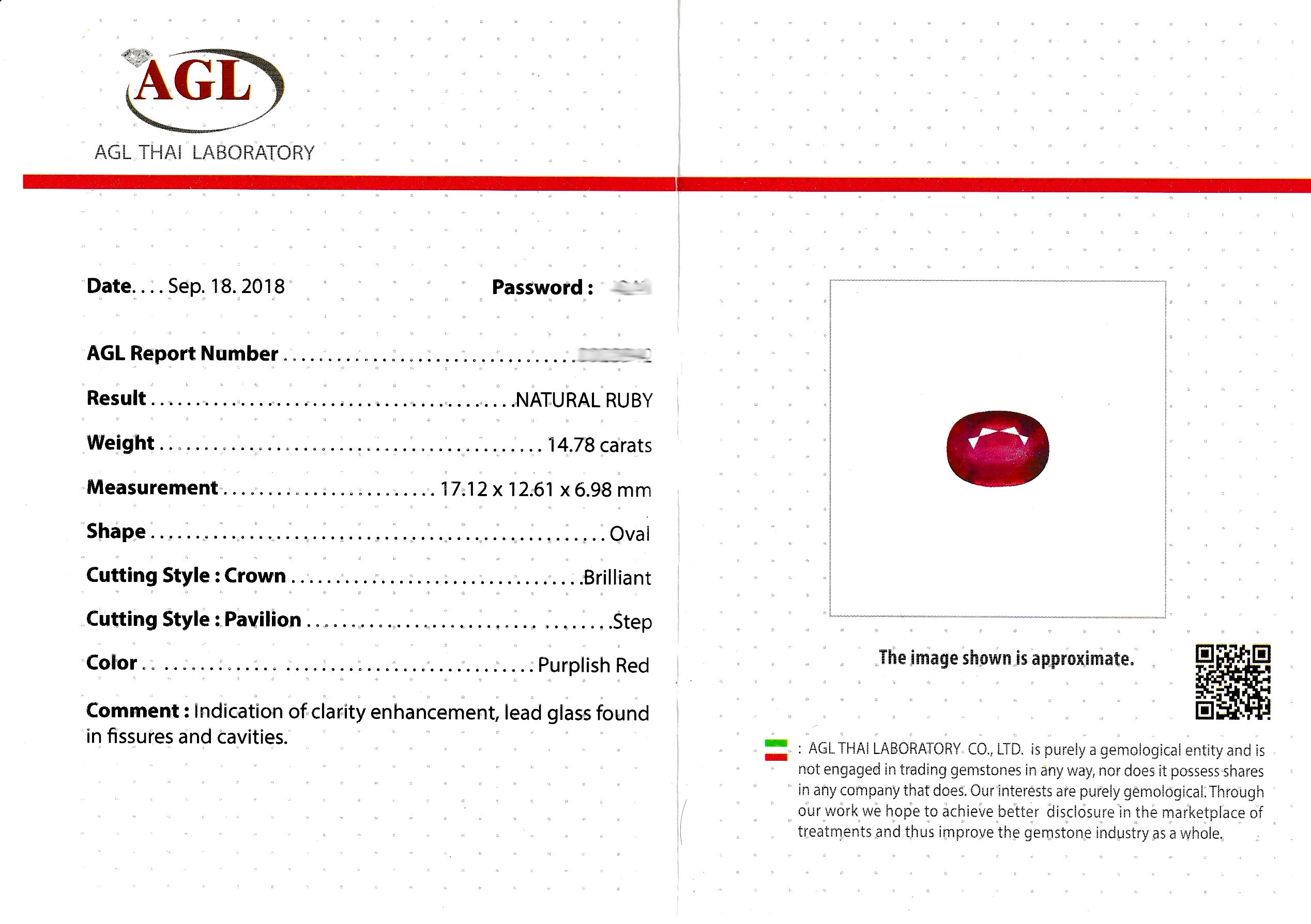 Loser Rubine, ca. 14.78 ct, ovalfacett., ca. 17.12 x 12.61 x 6.98 mm, Purplish Red,