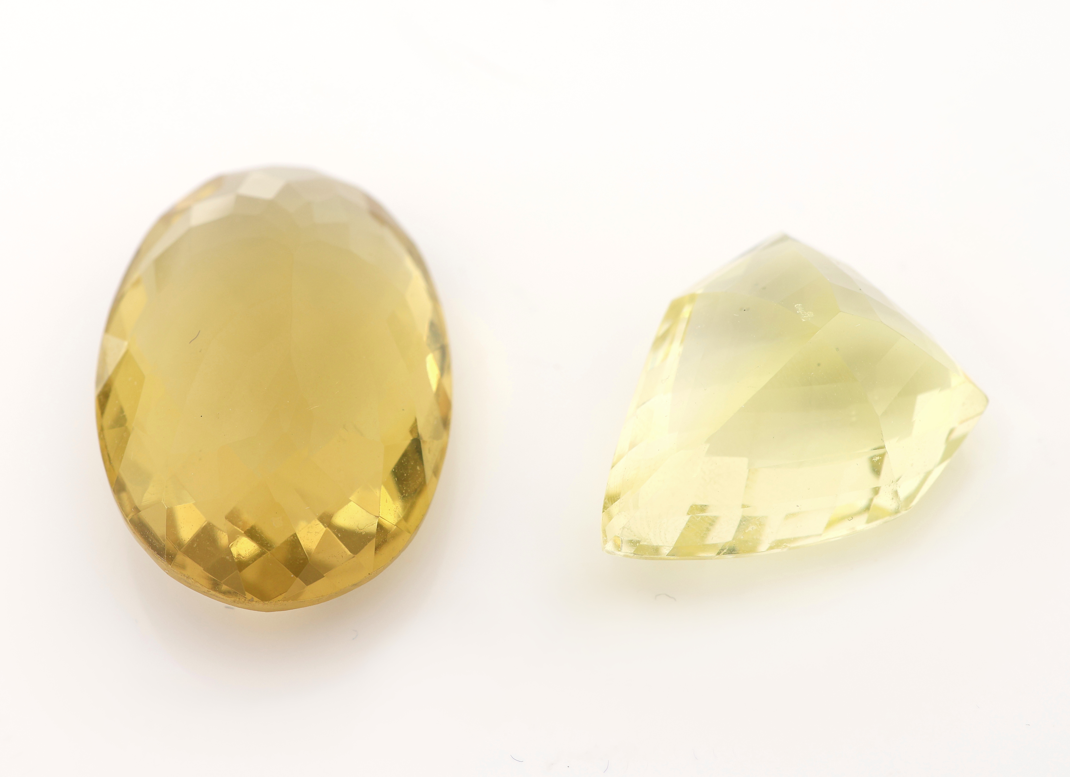 Lot 2 lose Lemoncitrine, 1 x ovalfacett. ca. 41.06 ct, 1 x Fantasieschliff ca. 26.83 ct Schätzpreis: 380, - EUR