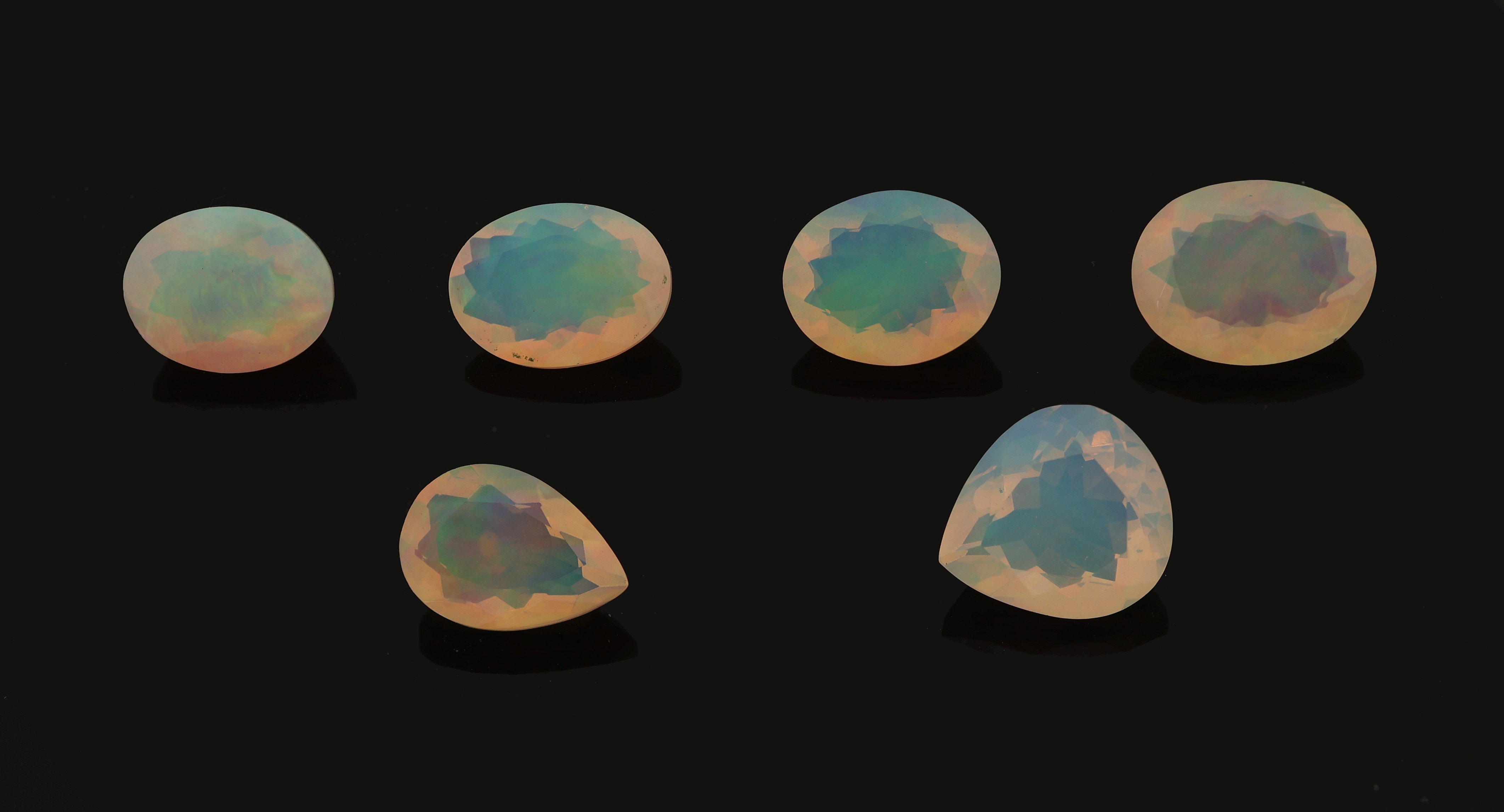 Lot 6 lose facett. Opale, zus. ca. 11.25 ct, versch. Schliffformen und Größen Schätzpreis: 780, - EUR