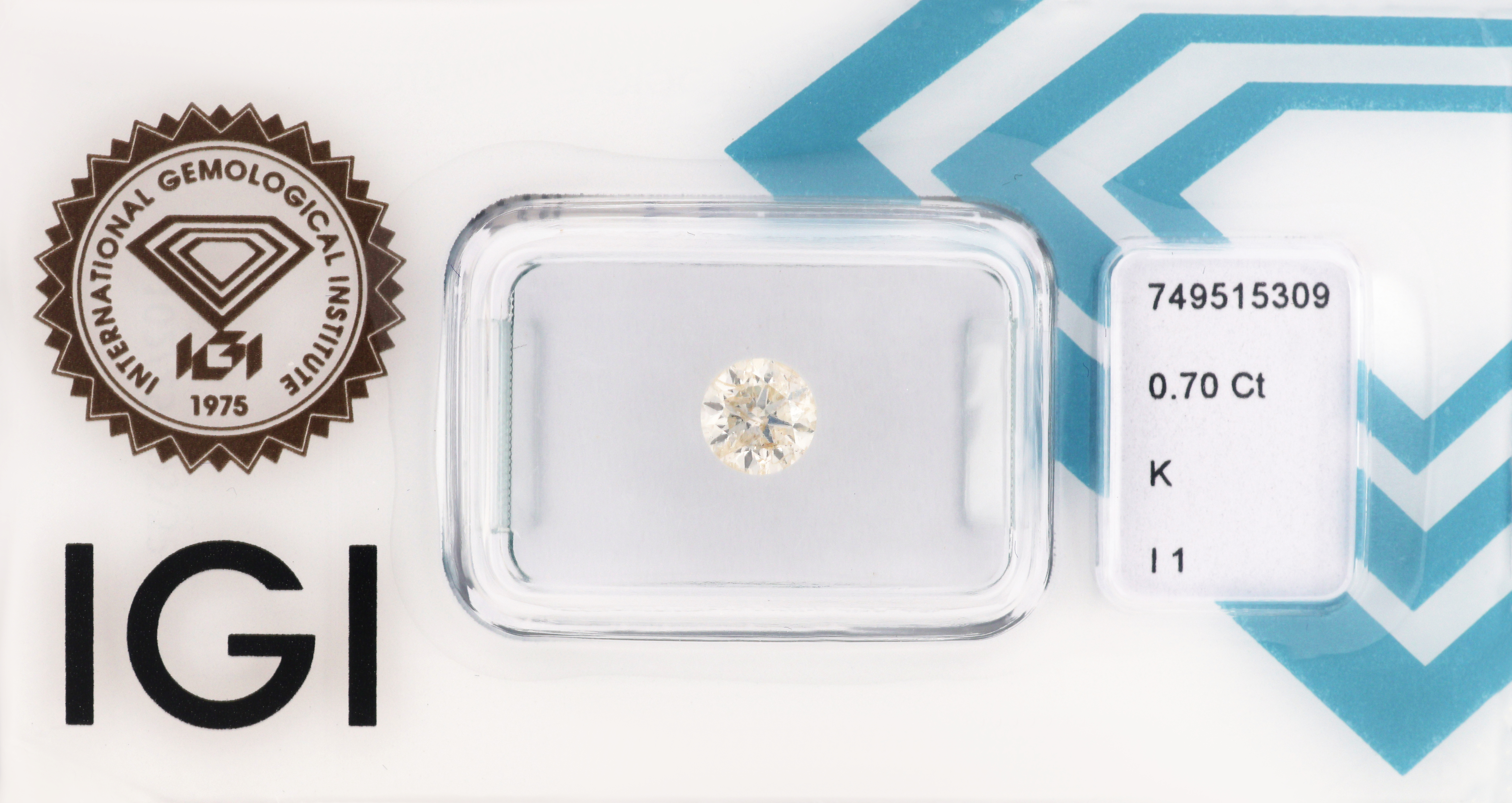Loser Brillant, 0.70 ct get. Weiß(K)/p1, eingeschweißt, IGI-Expertise Schätzpreis: 1000, - EUR