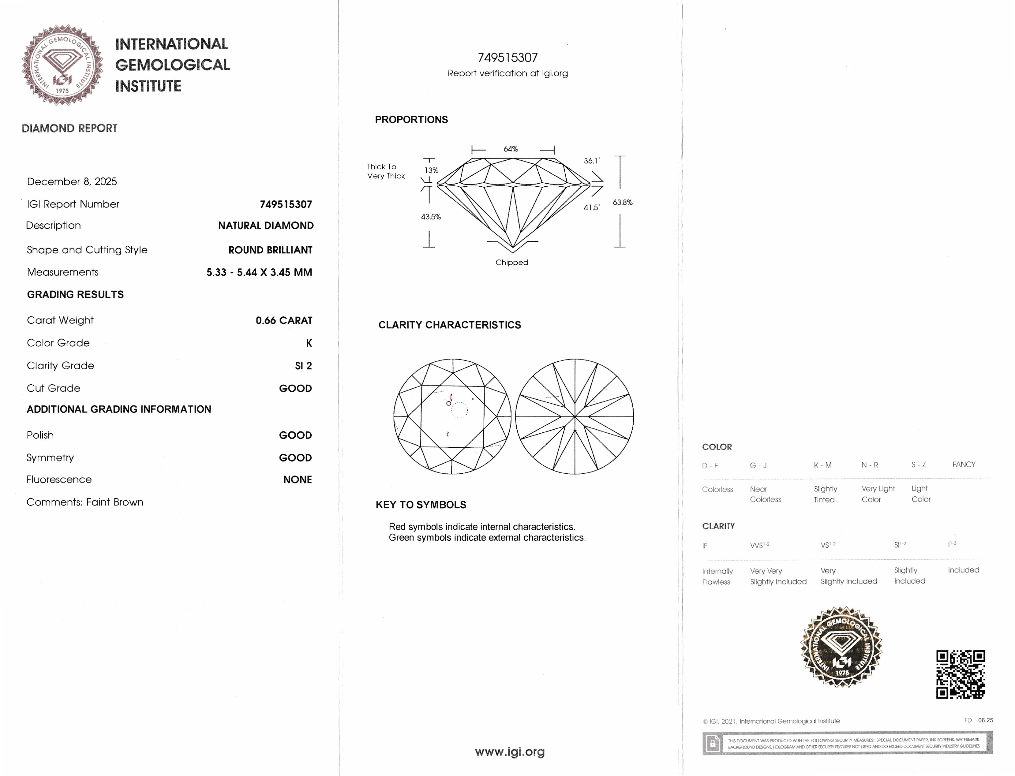 Loser Brillant, 0.66 ct get. Weiß(K)/si2, eingeschweißt, IGI-Expertise Schätzpreis: 1300, - EUR