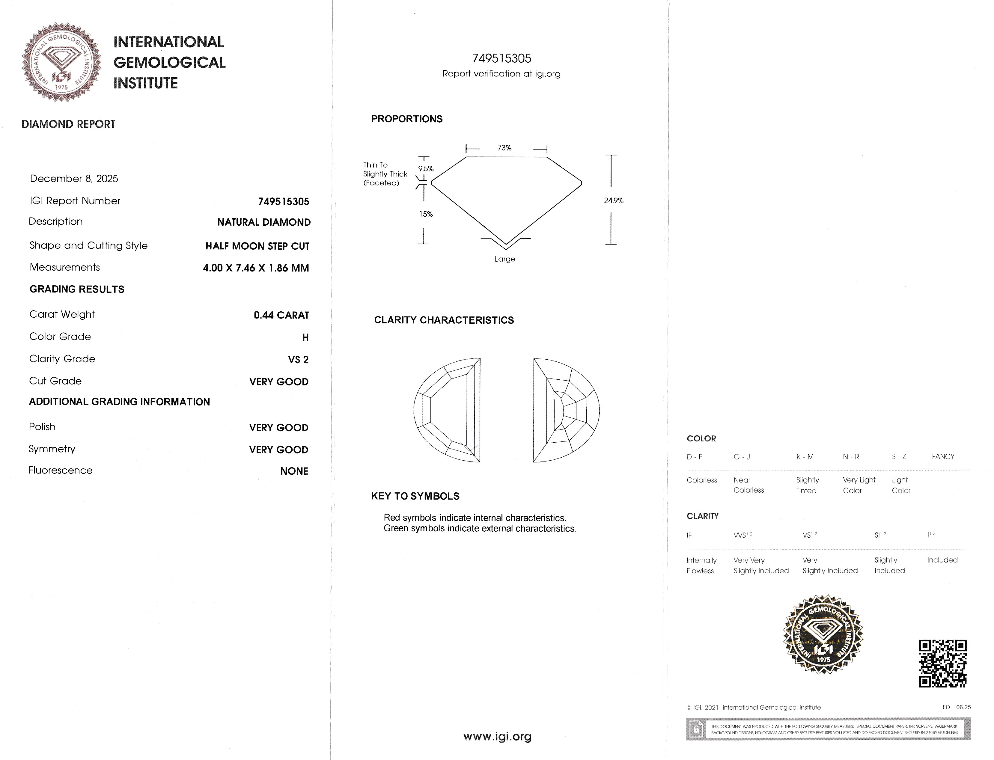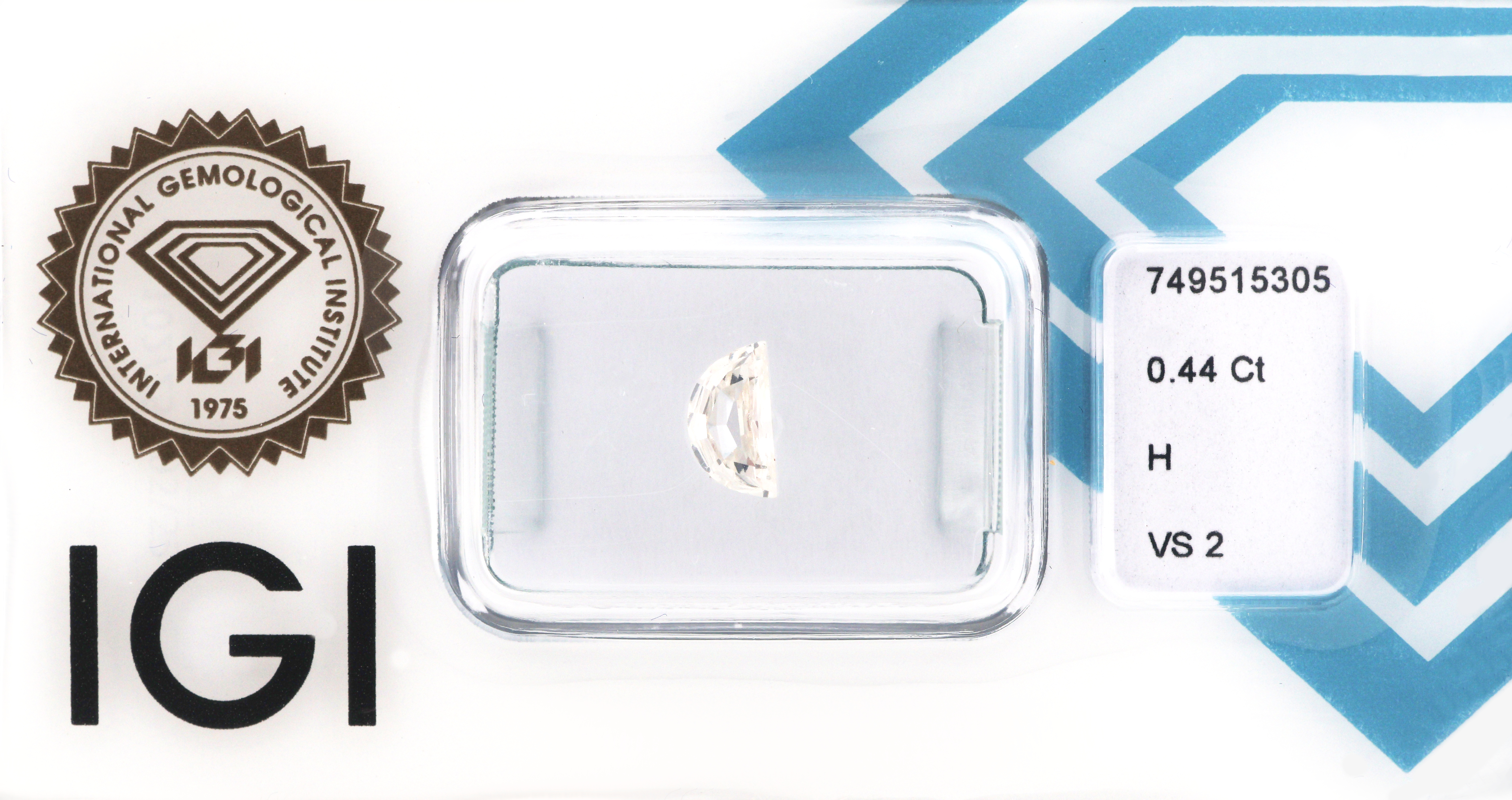 Loser Diamant, 0.44 ct Weiß(H)/vs2, Half Moon Step Cut, eingeschweißt, IGI-Expertise Schätzpreis: 1200, - EUR