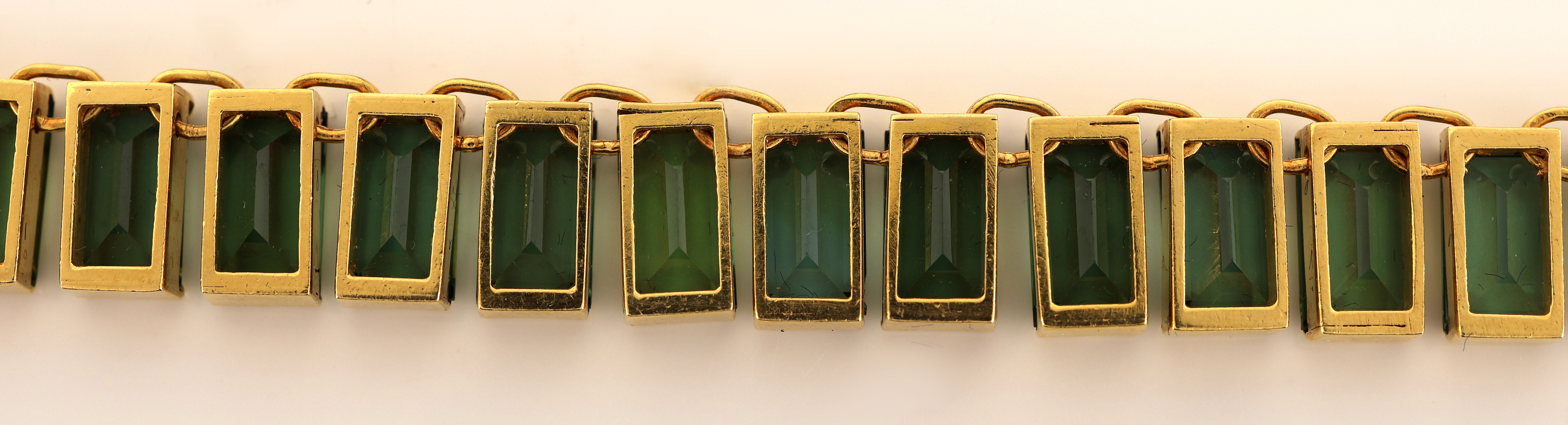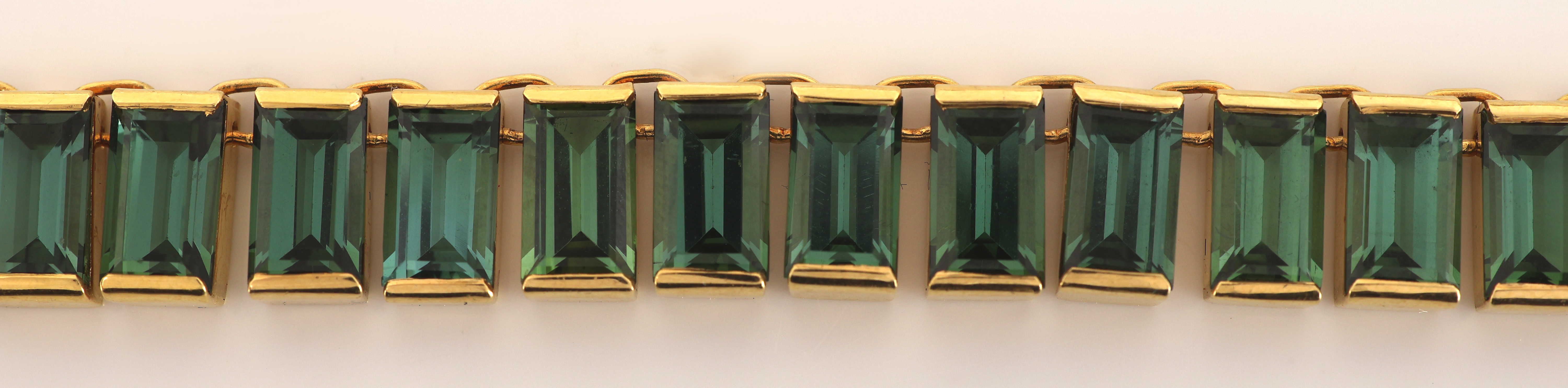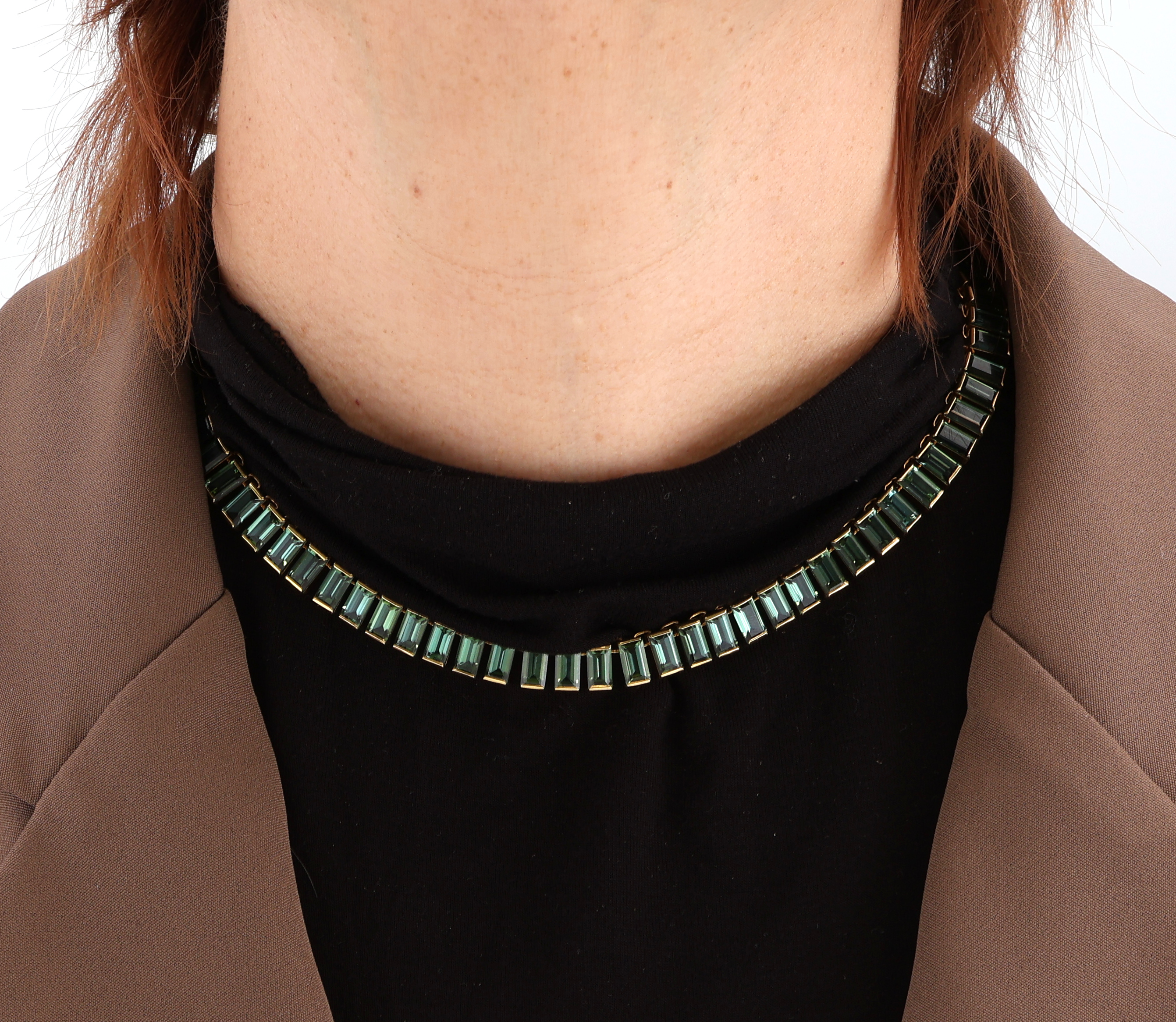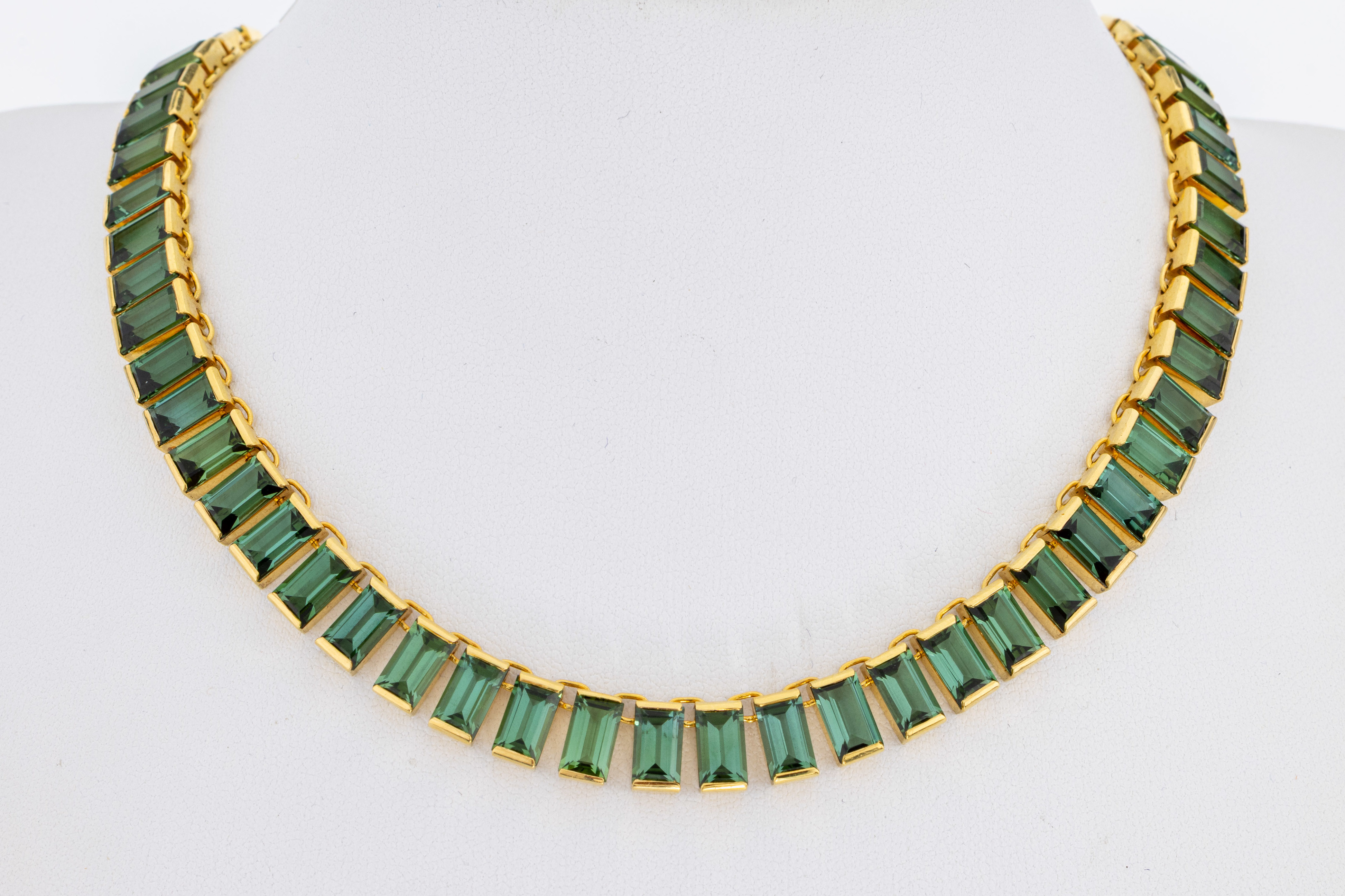 18 kt Gold Turmalin-Collier, GG 750/000, 70 grüne brasilianische Turmalin-Baguettes