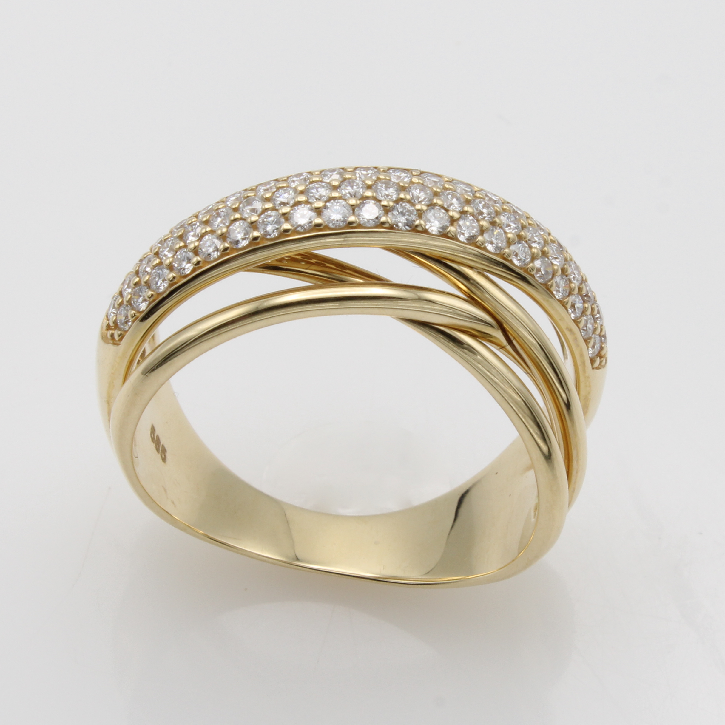 Ring mit Brillanten, GG 585/000, Brill. in Pavéefassungen zus. ca. 0.55 ct Weiß/p, mehrrhg. Optik, RW ca. 56 Schätzpreis: 3800, - EUR