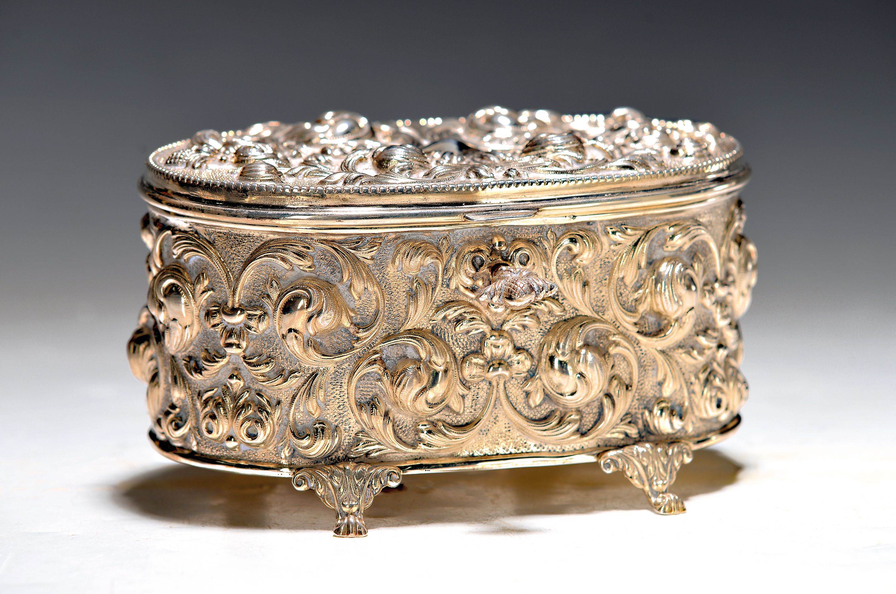 gebrochen, reicher Rankendekor im Hochrelief, mit Schlüssel, ca. 294 g