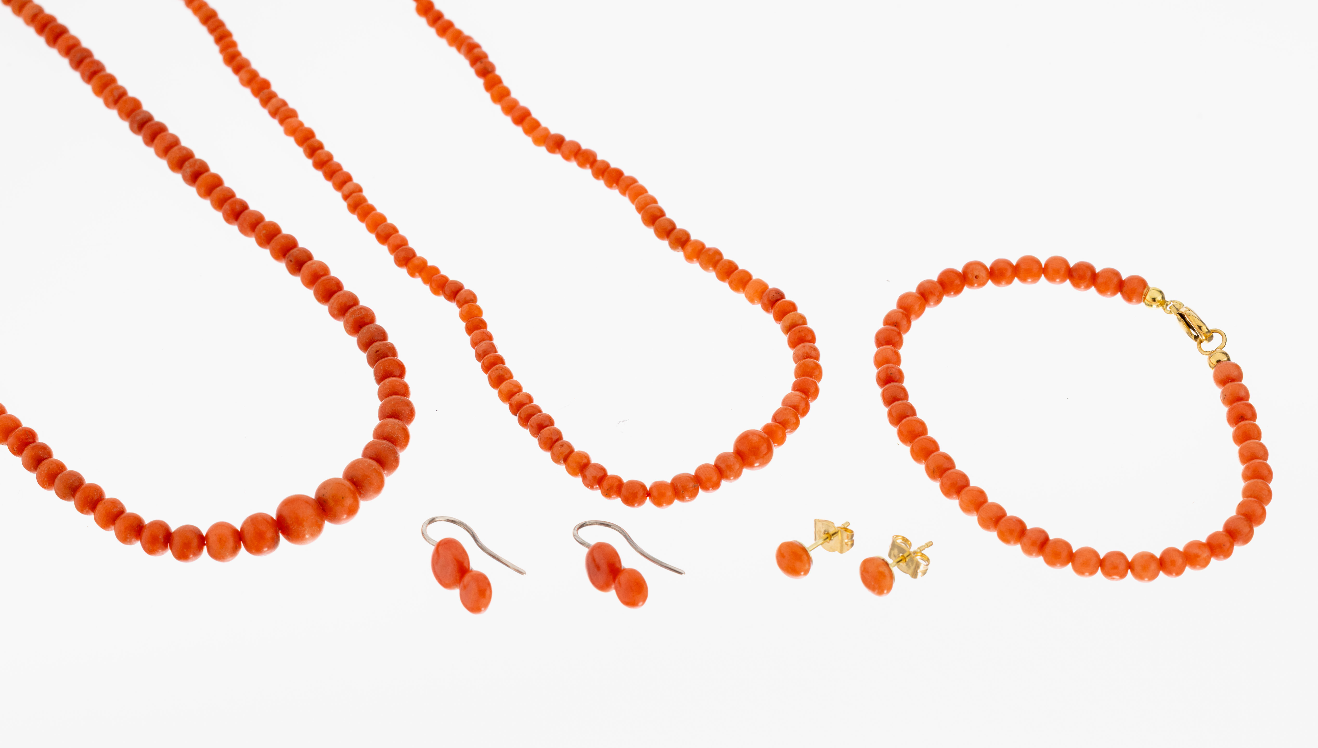 Korallen-Konvolut, best. aus: 1 Collier, L.ca. 79 cm, Korallenkugeln, D. ca. 2.9-6.1