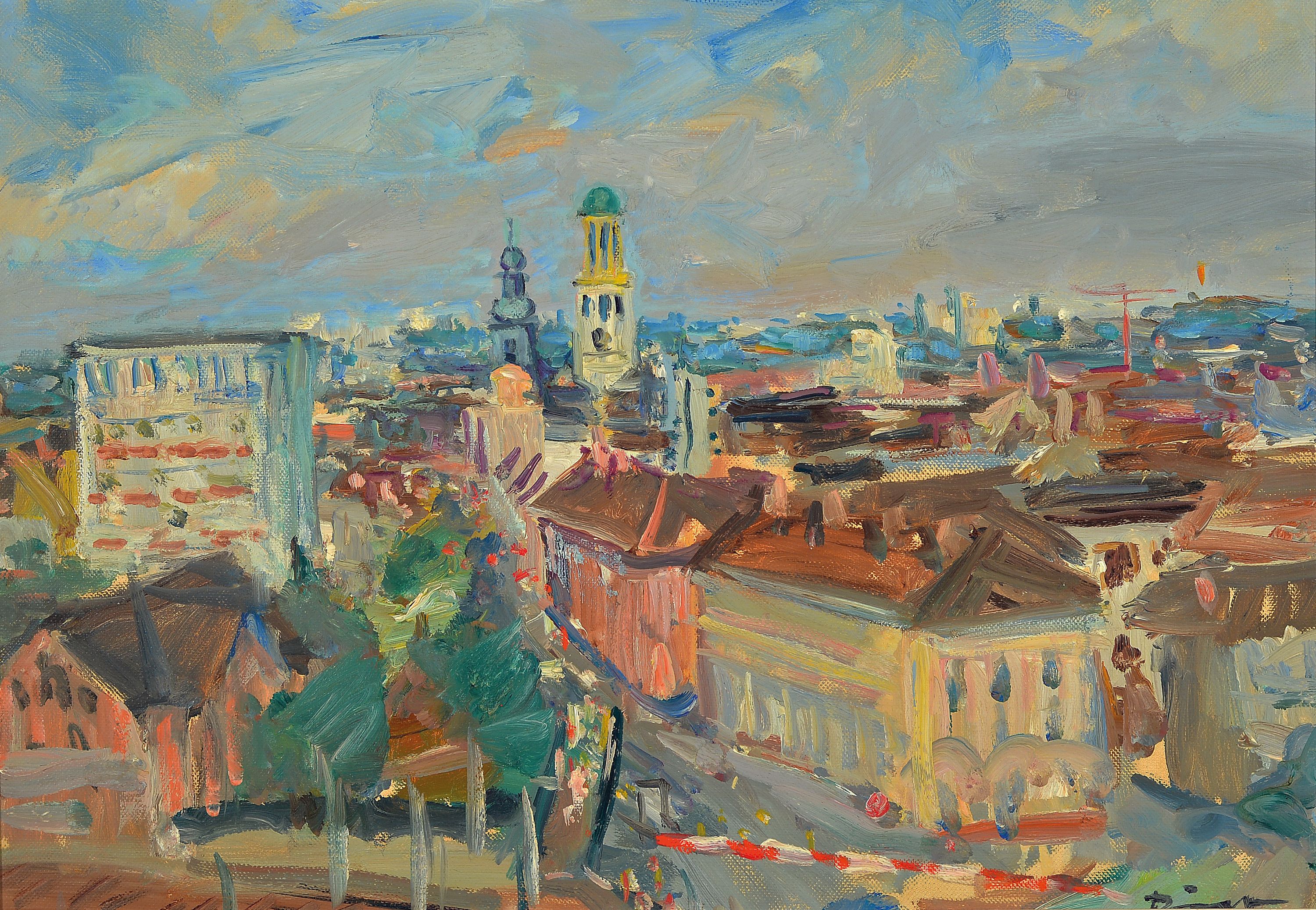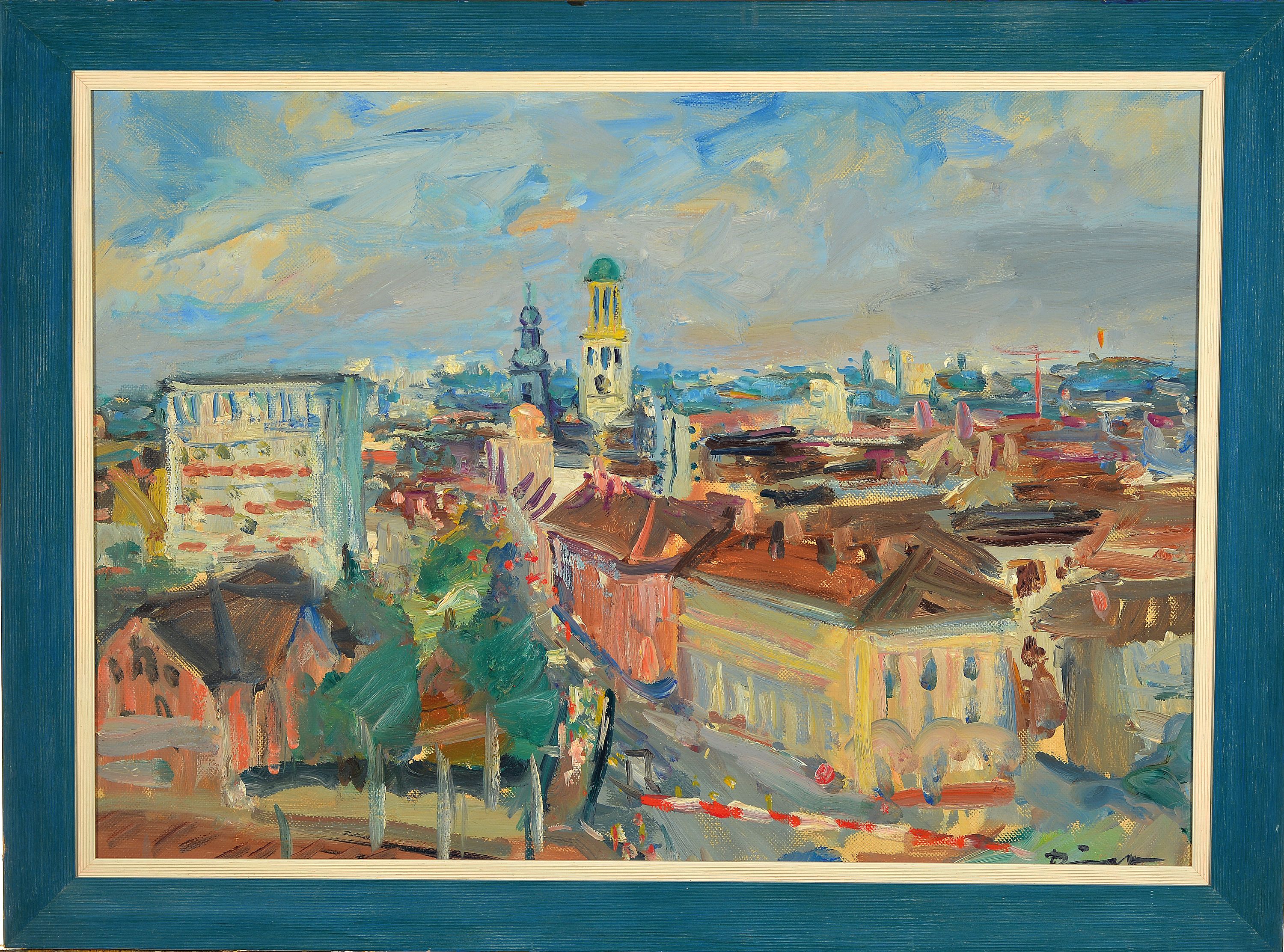 Stadt, rechts unten signiert, Öl/Lwd, 55x70 cm, Rahmen 58x73 cm