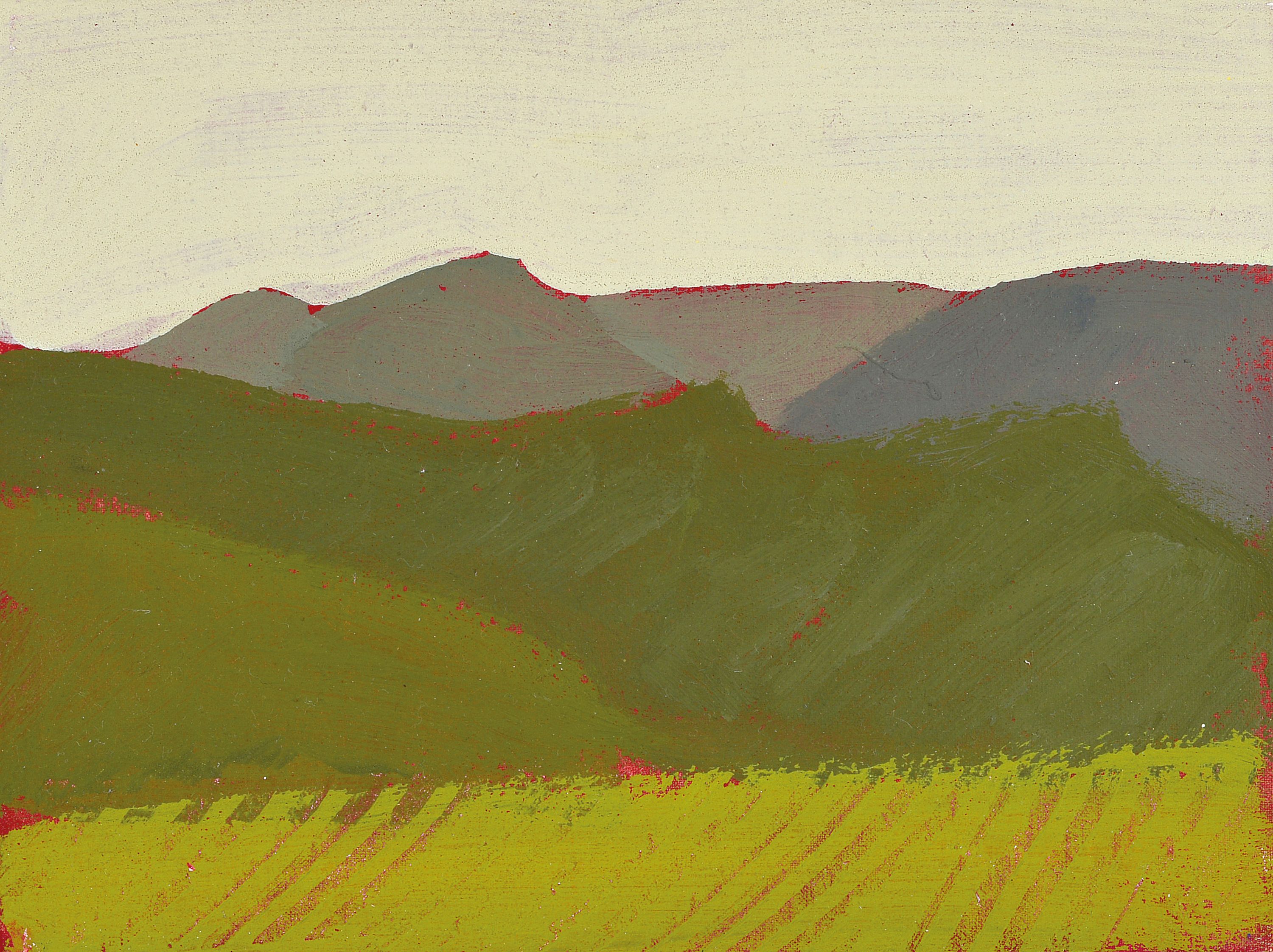 Albert Borchardt, geb. 1961 Hitzhof/Siegkreis , 3 Ölstudien auf Malplatte, Kulturlandschaften, je verso signiert, 18x24 cm, Rahmen 23x30/28x34 cm; Borchardt studierte an der Fachhochschule Aachenbei Christiane Maether und Ulf Hegewald