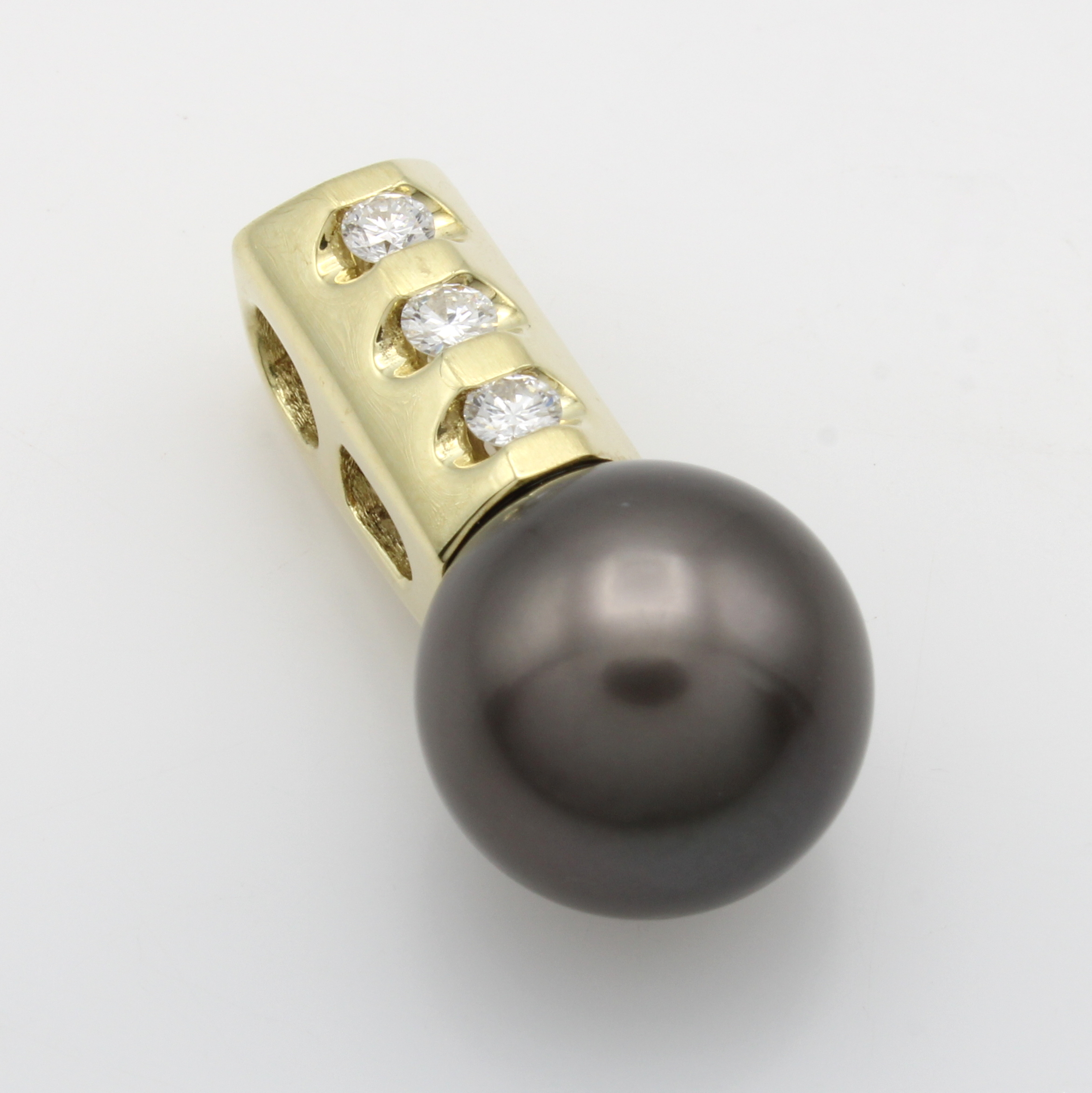 Anhänger mit Tahitiperle und Brillanten, GG 585/000, graue Perle m. leichtem Braunton ca. 12 mm, längl. Öse bes. m. 3 Brill. zus. ca. 0.18 ct Weiß/vs Schätzpreis: 2100, - EUR