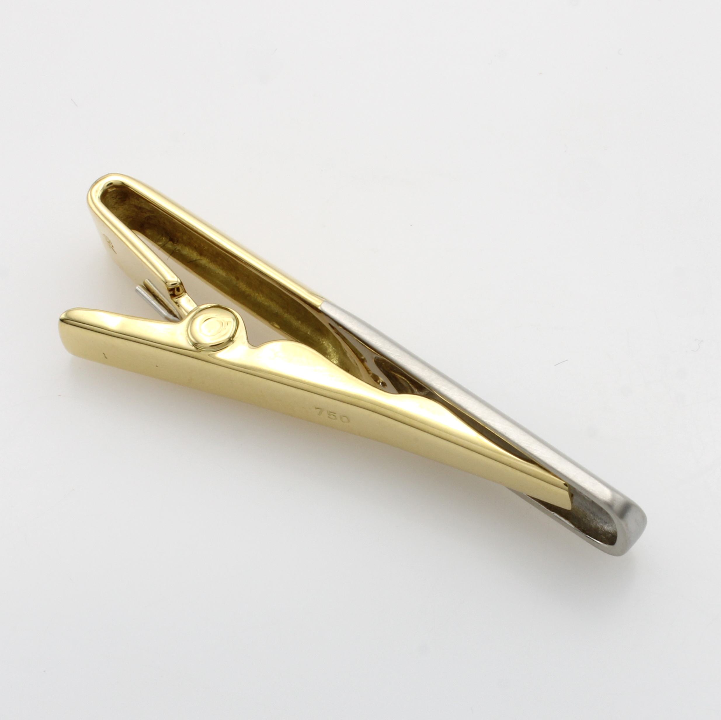 Krawattenklammer mit Brillant, GG/WG 750/000, WG-Teil matt., Brill. ca. 0.15 ct feines Weiß/vs Schätzpreis: 3100, - EUR
