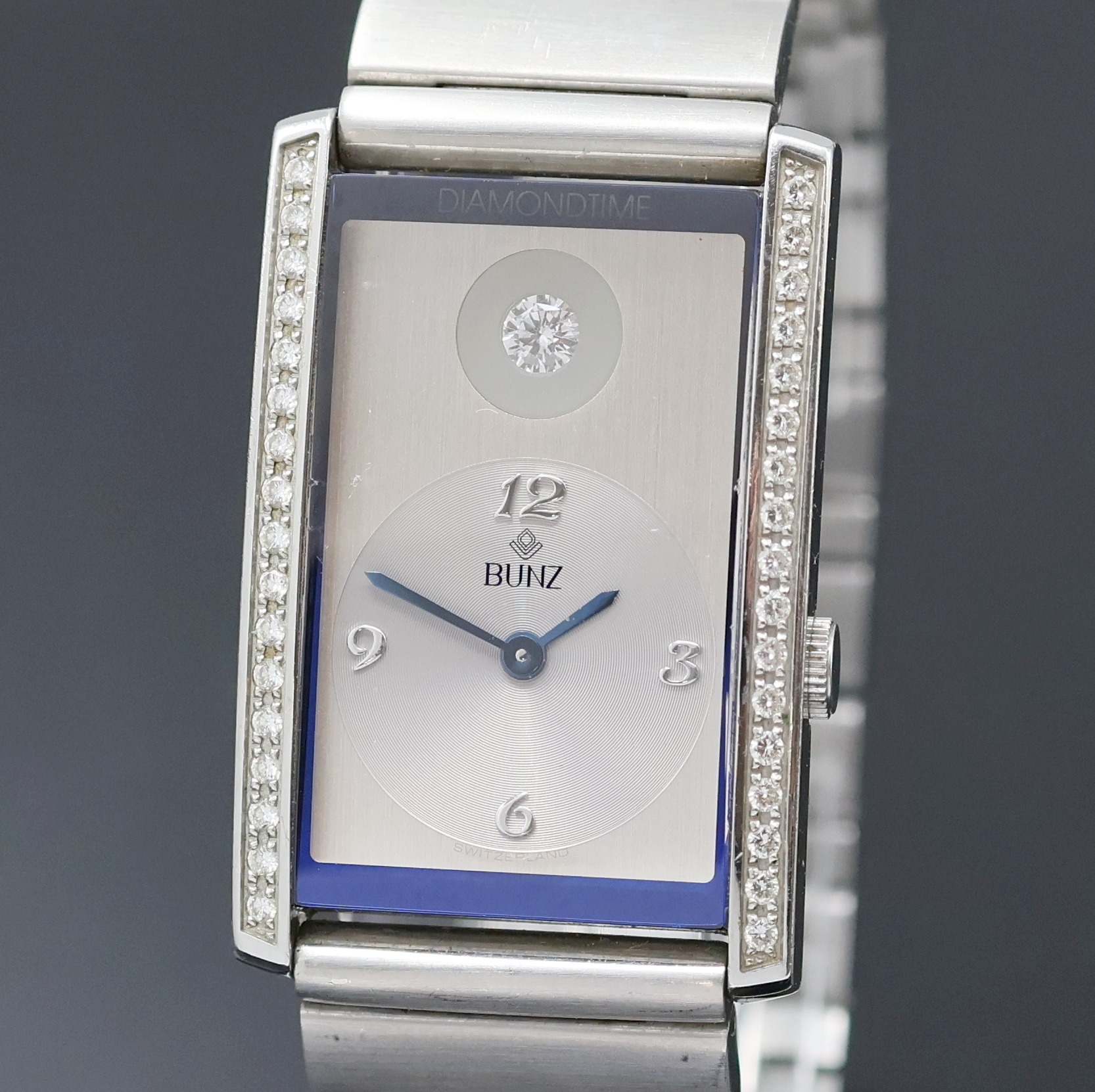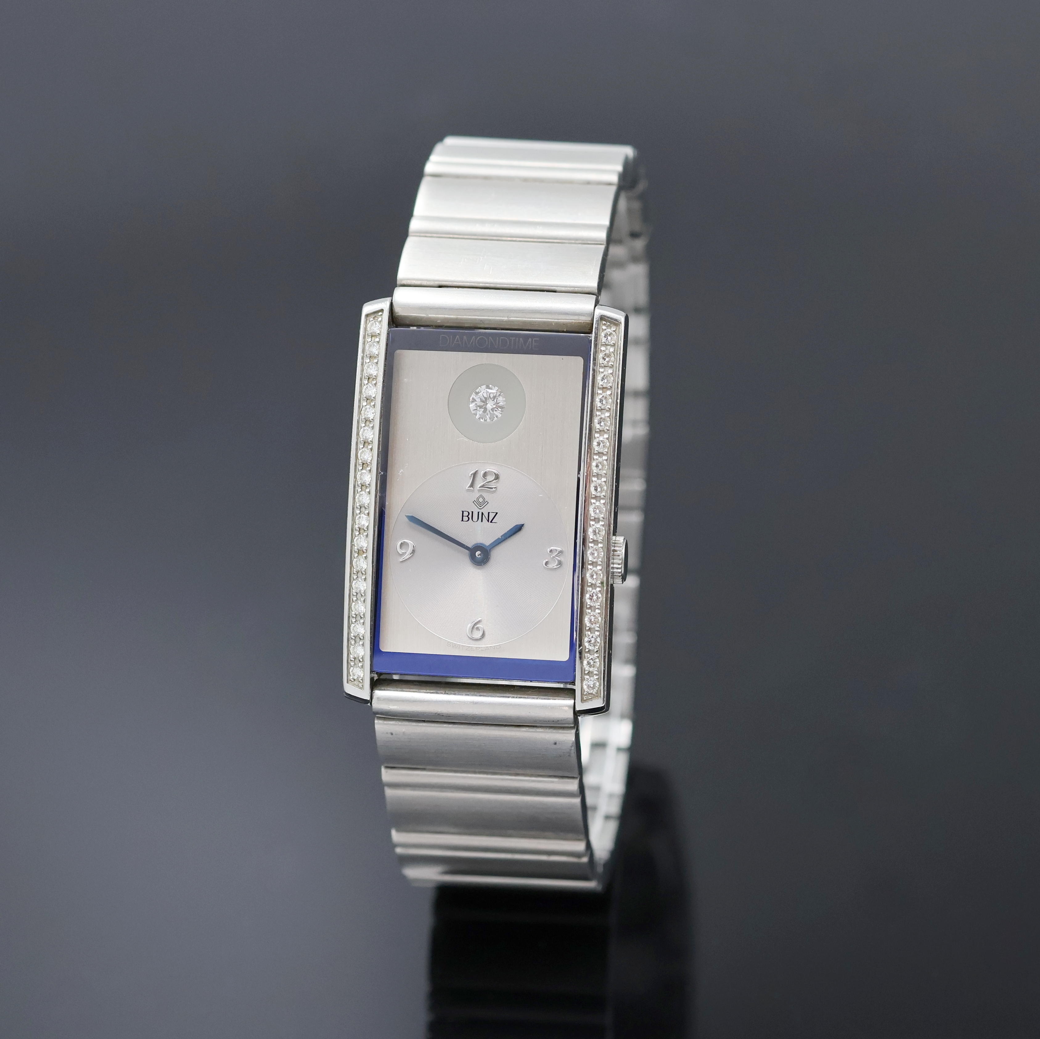 BUNZ ausgefallene Armbanduhr Diamondtime, Schweiz um 2005, quarz, Edelstahl inkl.