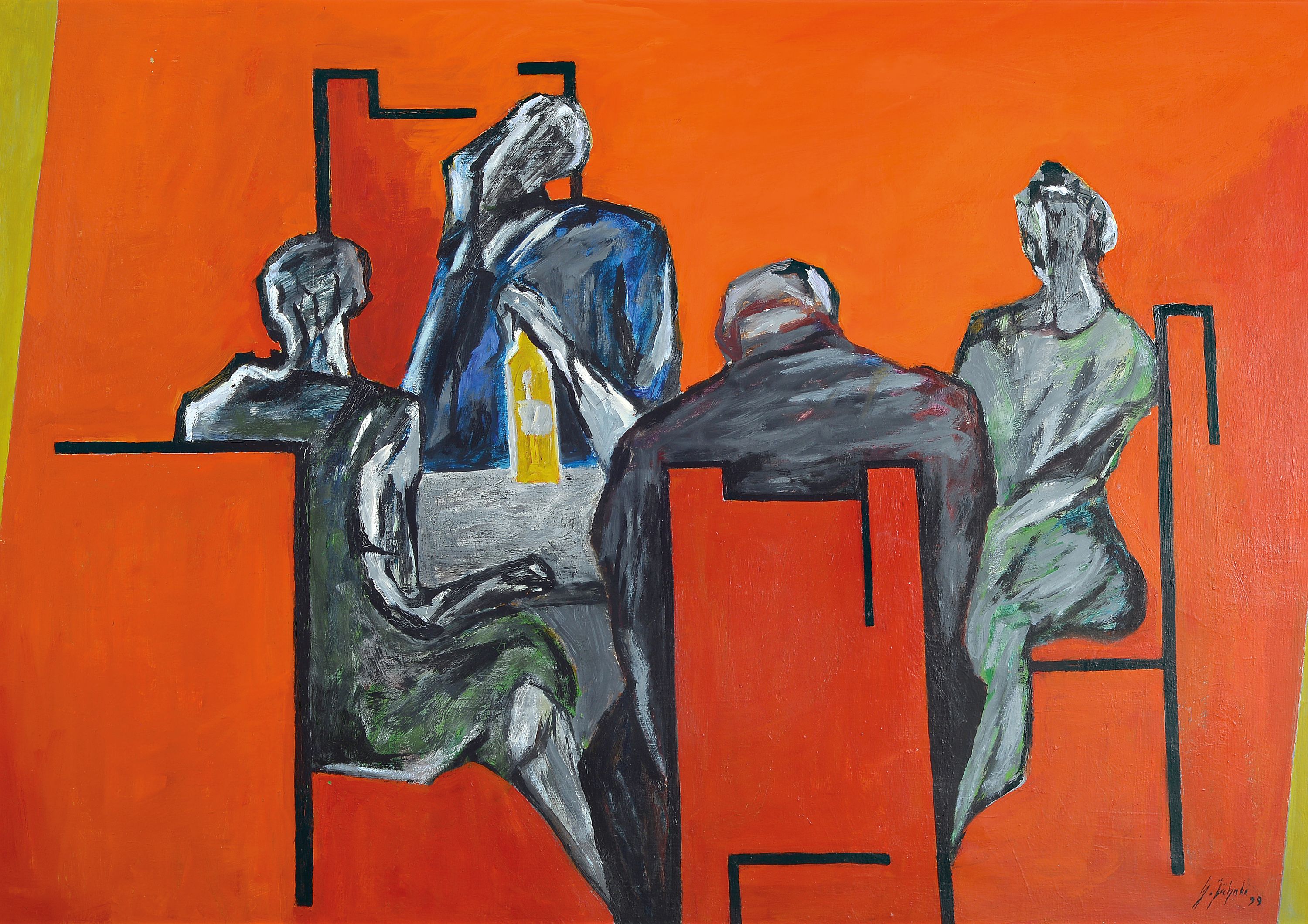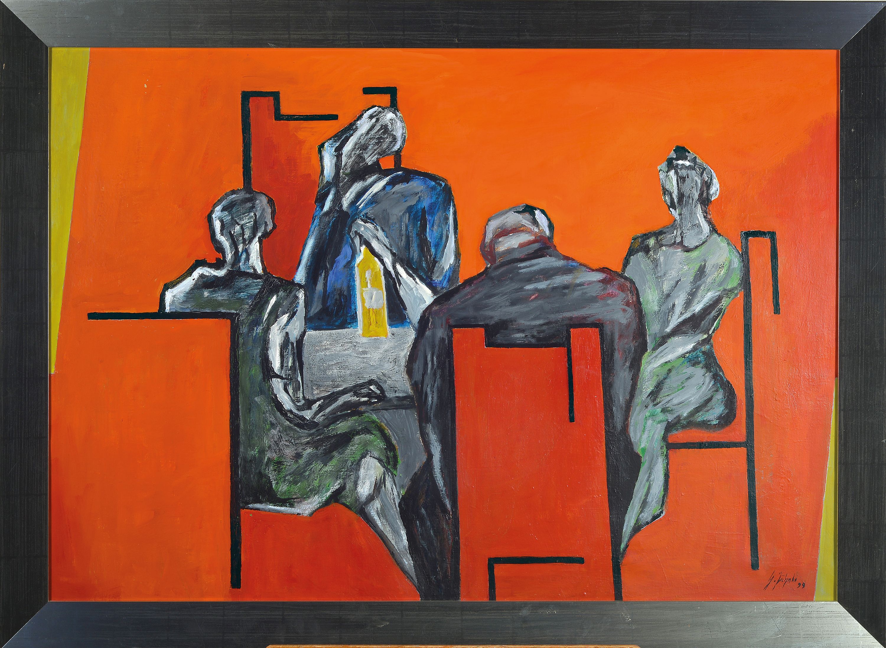 Gerd Jähnke, 1921-2005, Figurenkomposition auf orangefarbenem Grund, rechts unten