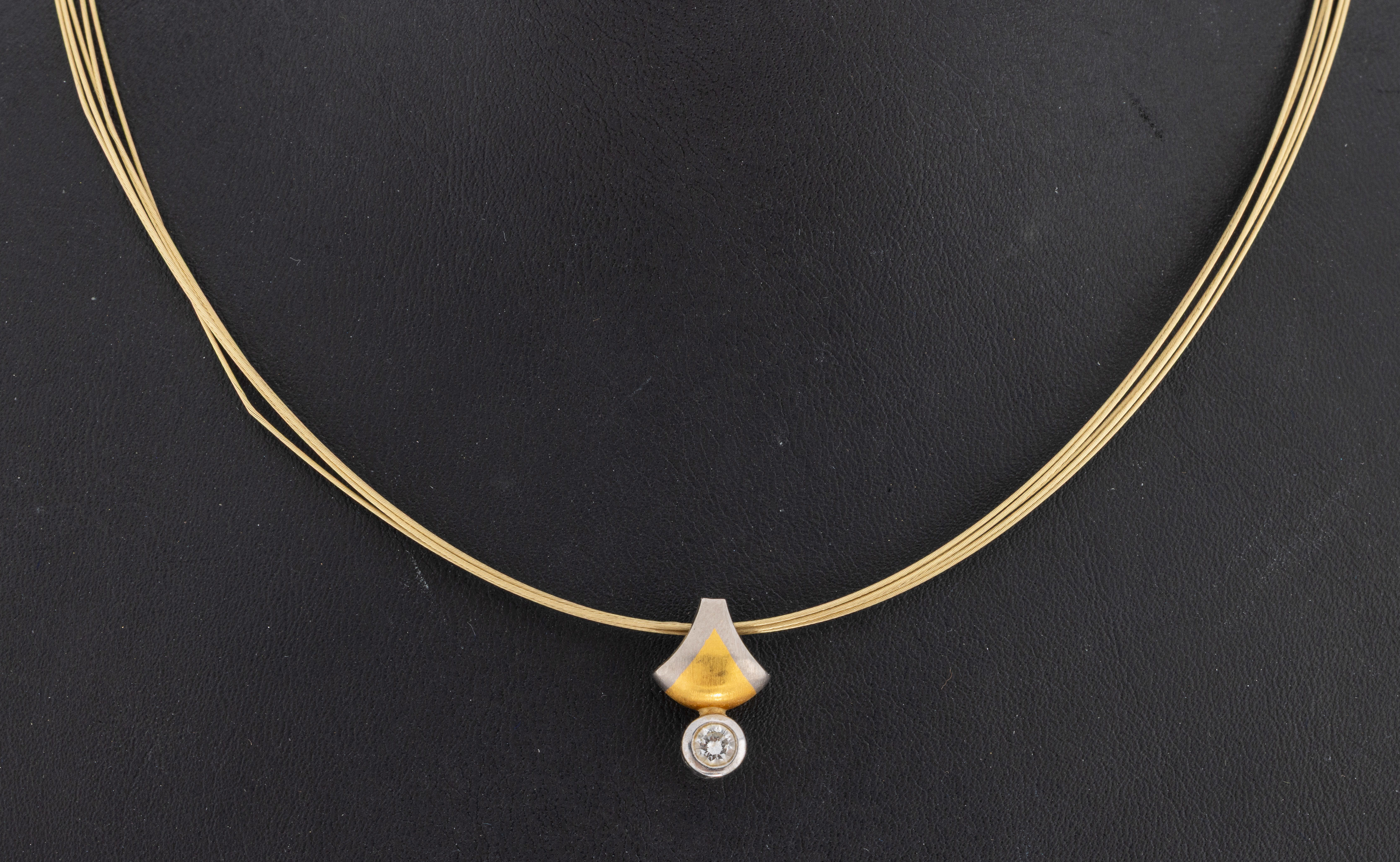 18 kt Gold Brillant-Anhänger, GG/WG 750/000, Brillant ca. 0.18 ct Weiß/si, an 5-reihigem