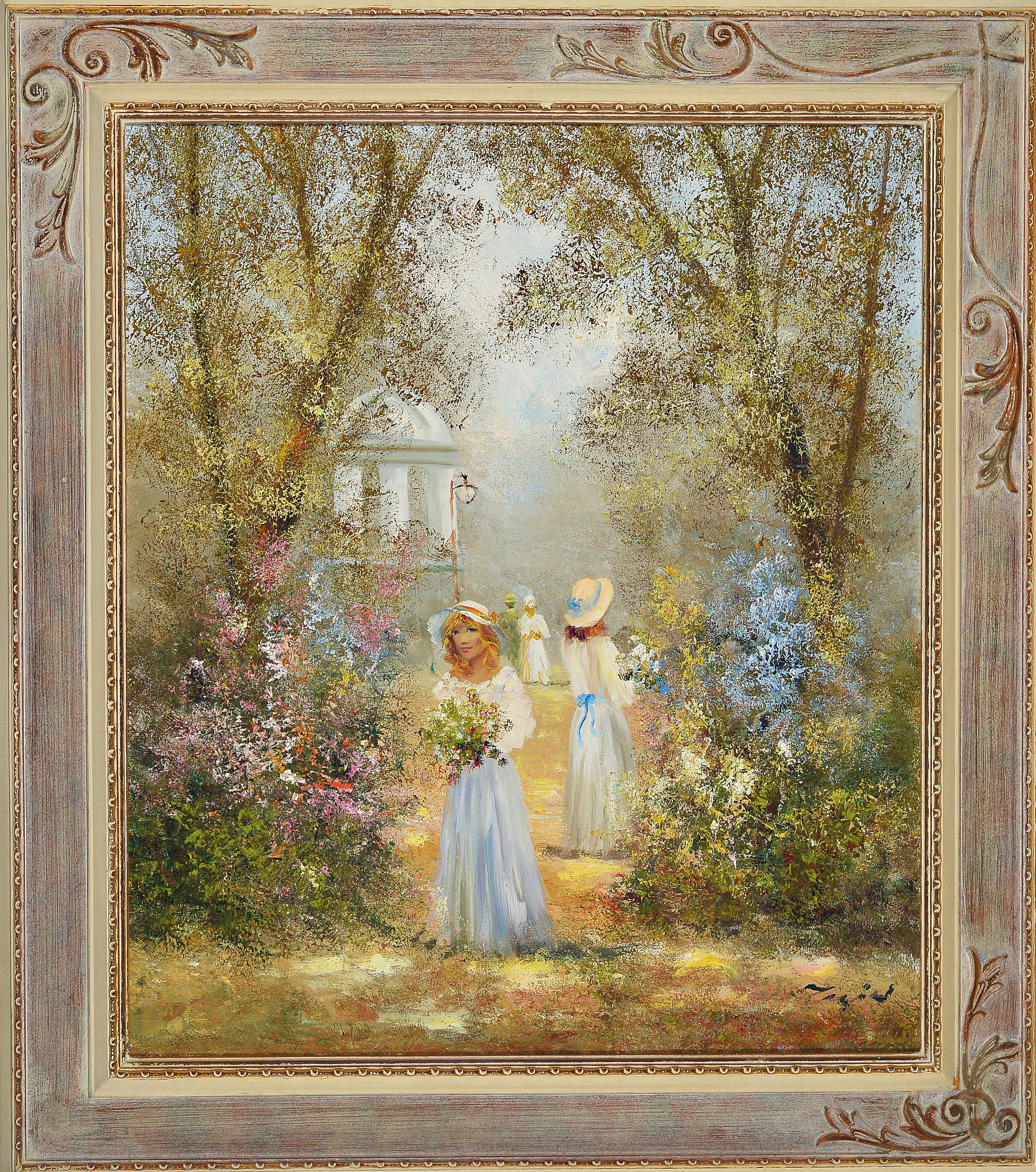 Madjid Rahnavardkar, born 1943 Tehran, gallantry, ladies in the garden, signed lower