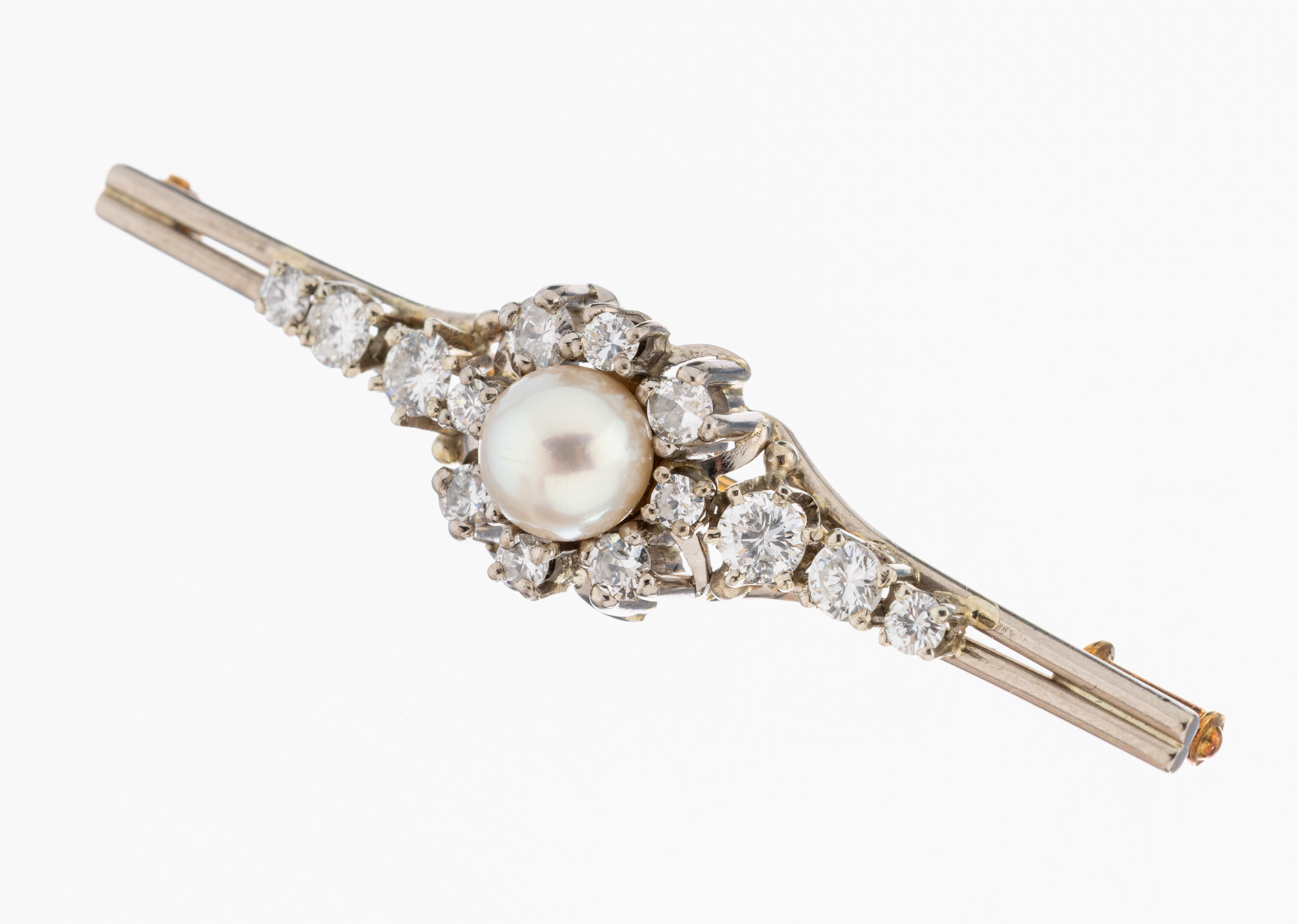 14 kt Gold Perl-Brillant-Brosche, WG/GG 585/000, mittig Zuchtperle, D. ca. 6.6 mm,