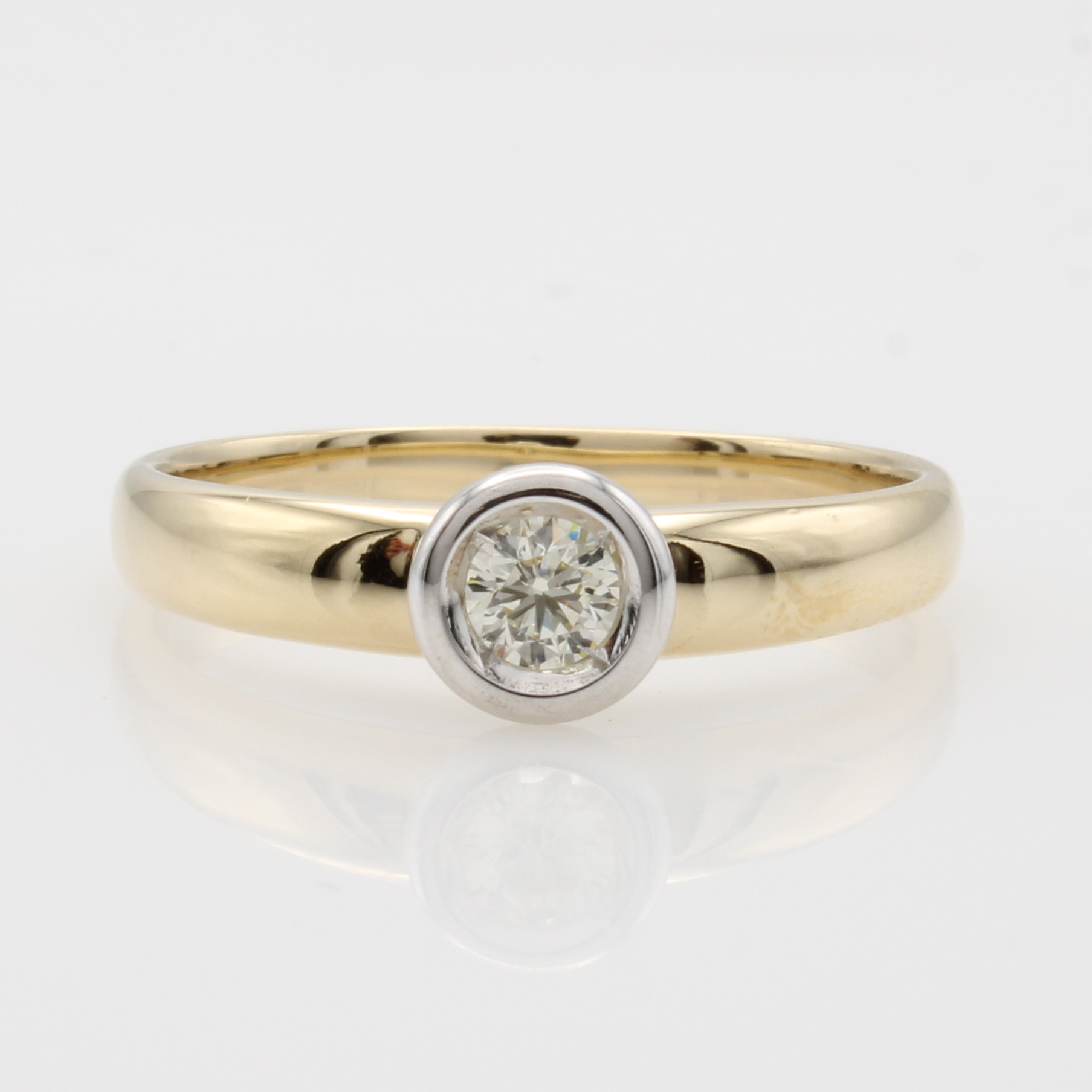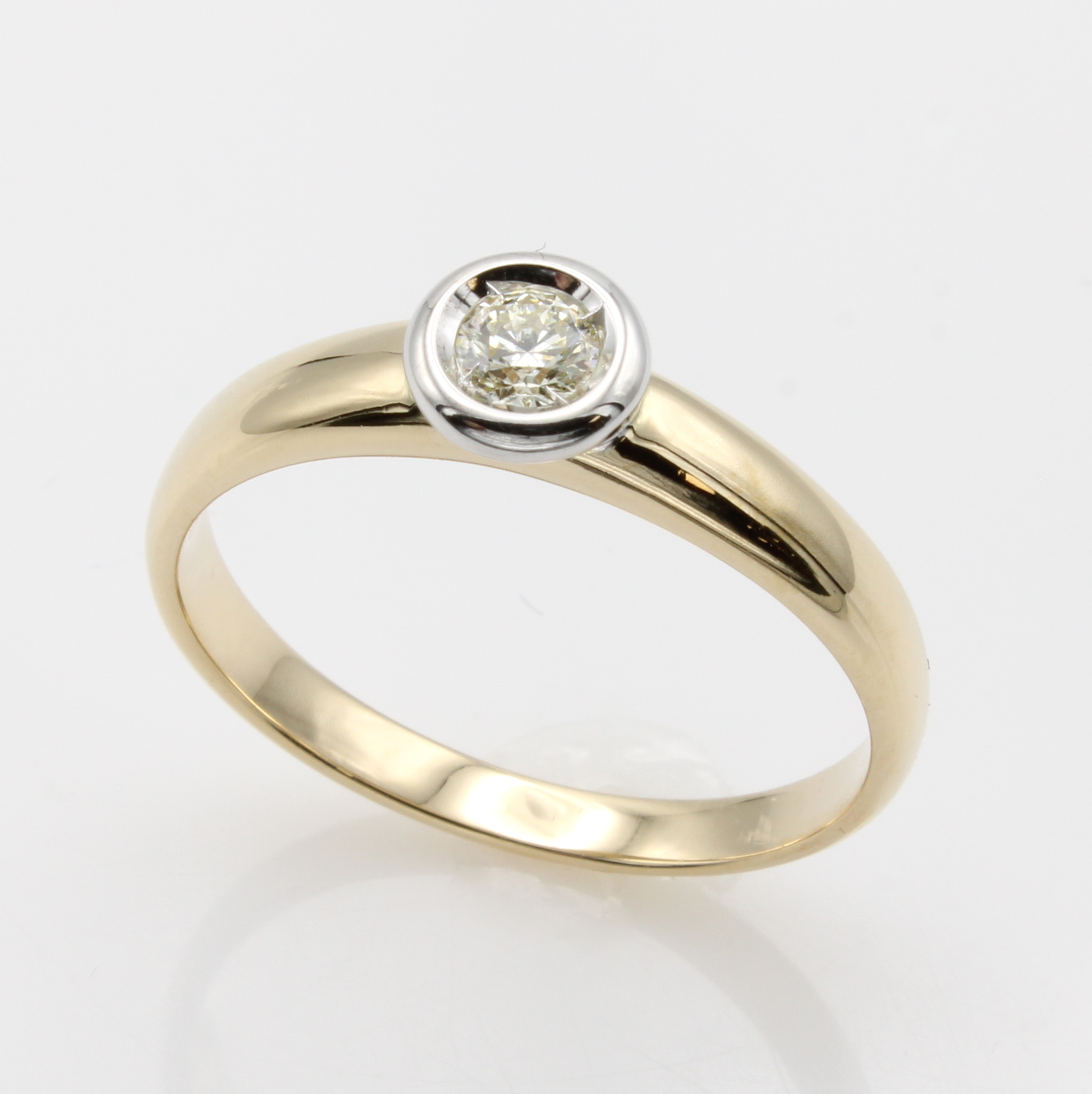 Ring mit Brillant, GG/WG 585/000, Brill. in Zargenfassung ca. 0.25 ct Weiß/lupenr., RW ca. 66 Schätzpreis: 1820, - EUR