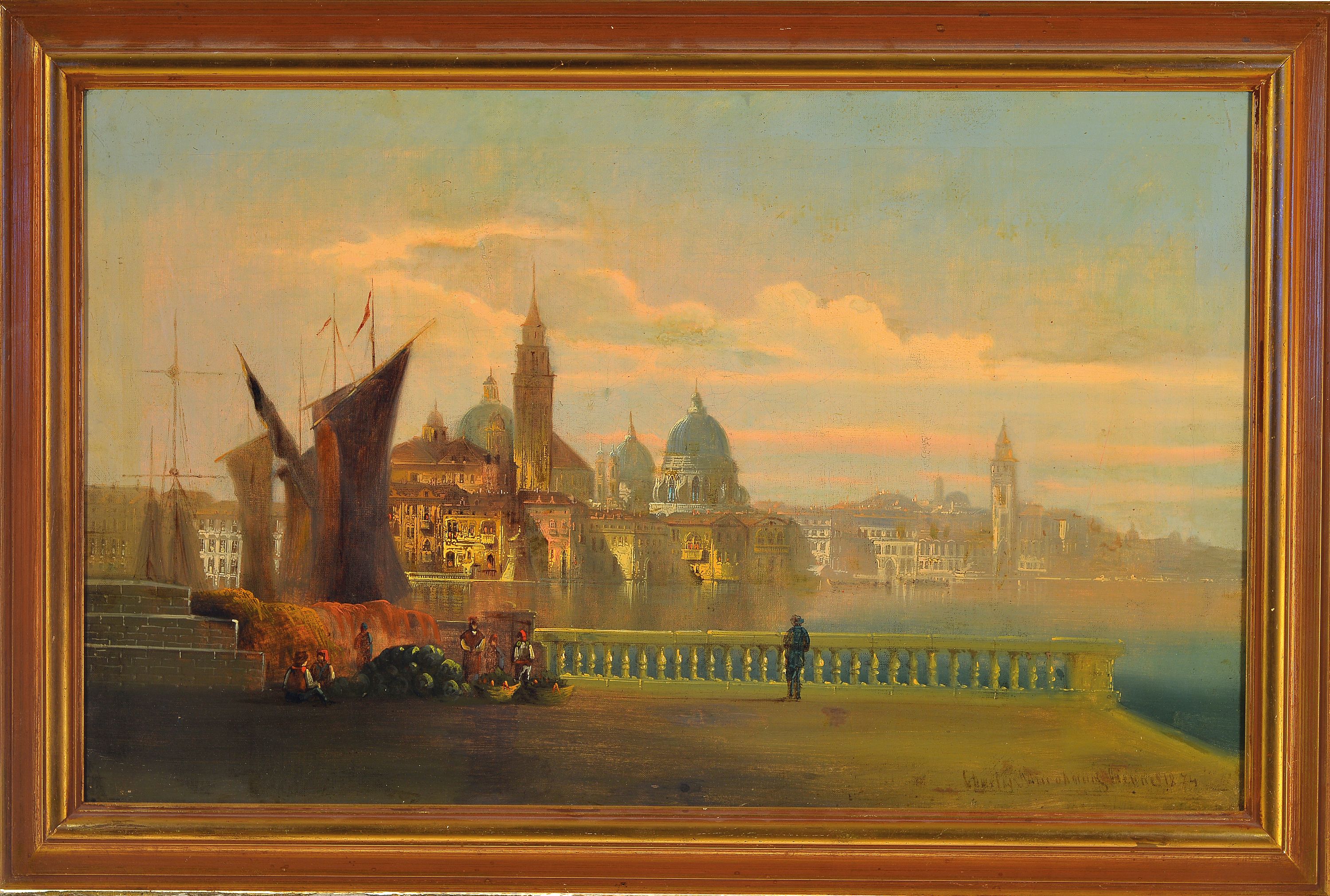 Unbekannter tschechischer Künstler des 19.Jh. , Ansicht von Venedig, bewegte Figurenstaffage,