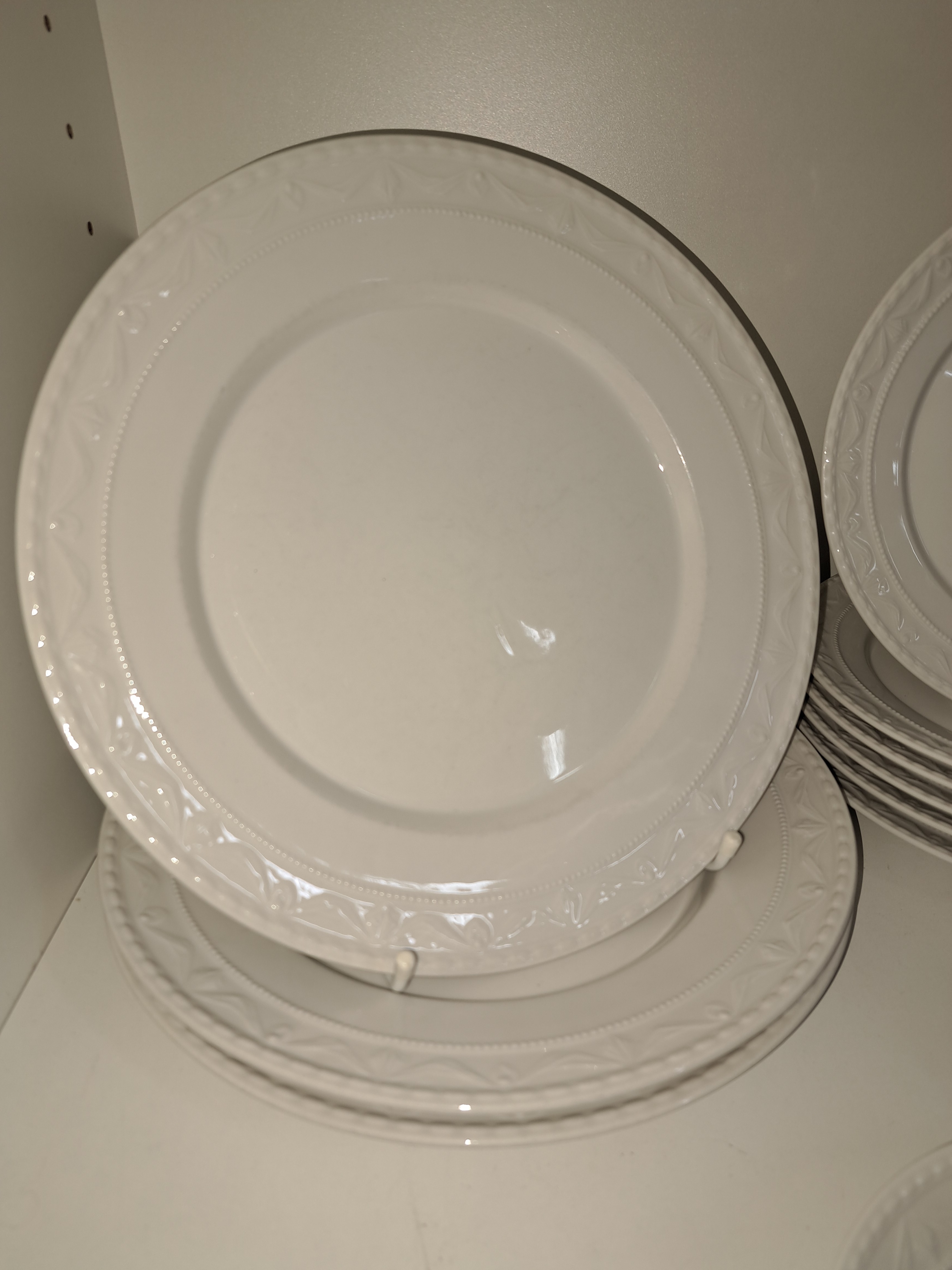 10 Teller, KPM Berlin, 1960er Jahre, Modell Kurland, weiß, 3 flache Teller D. 25cm,