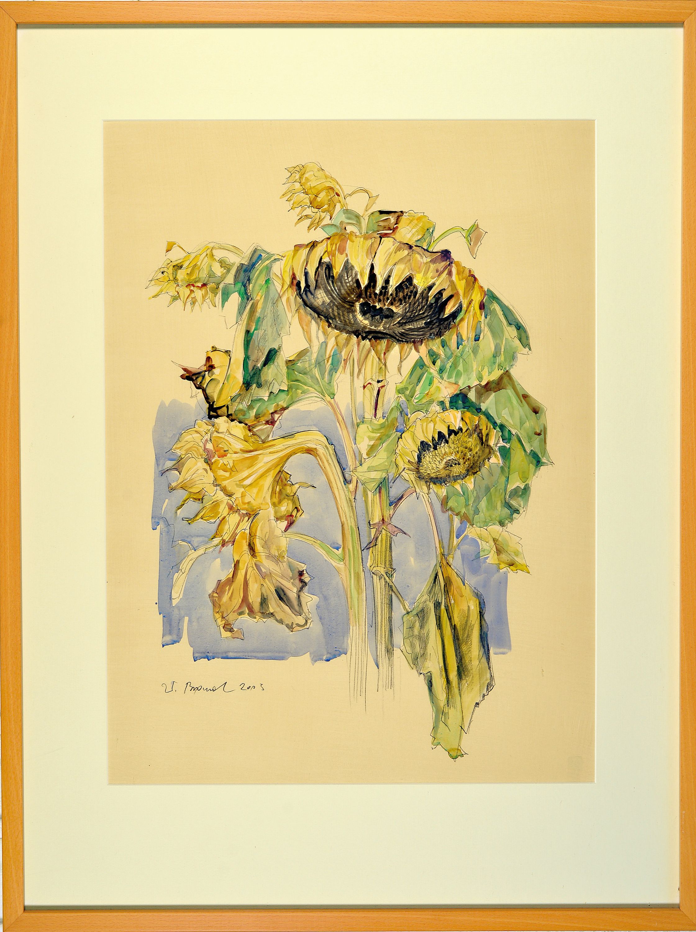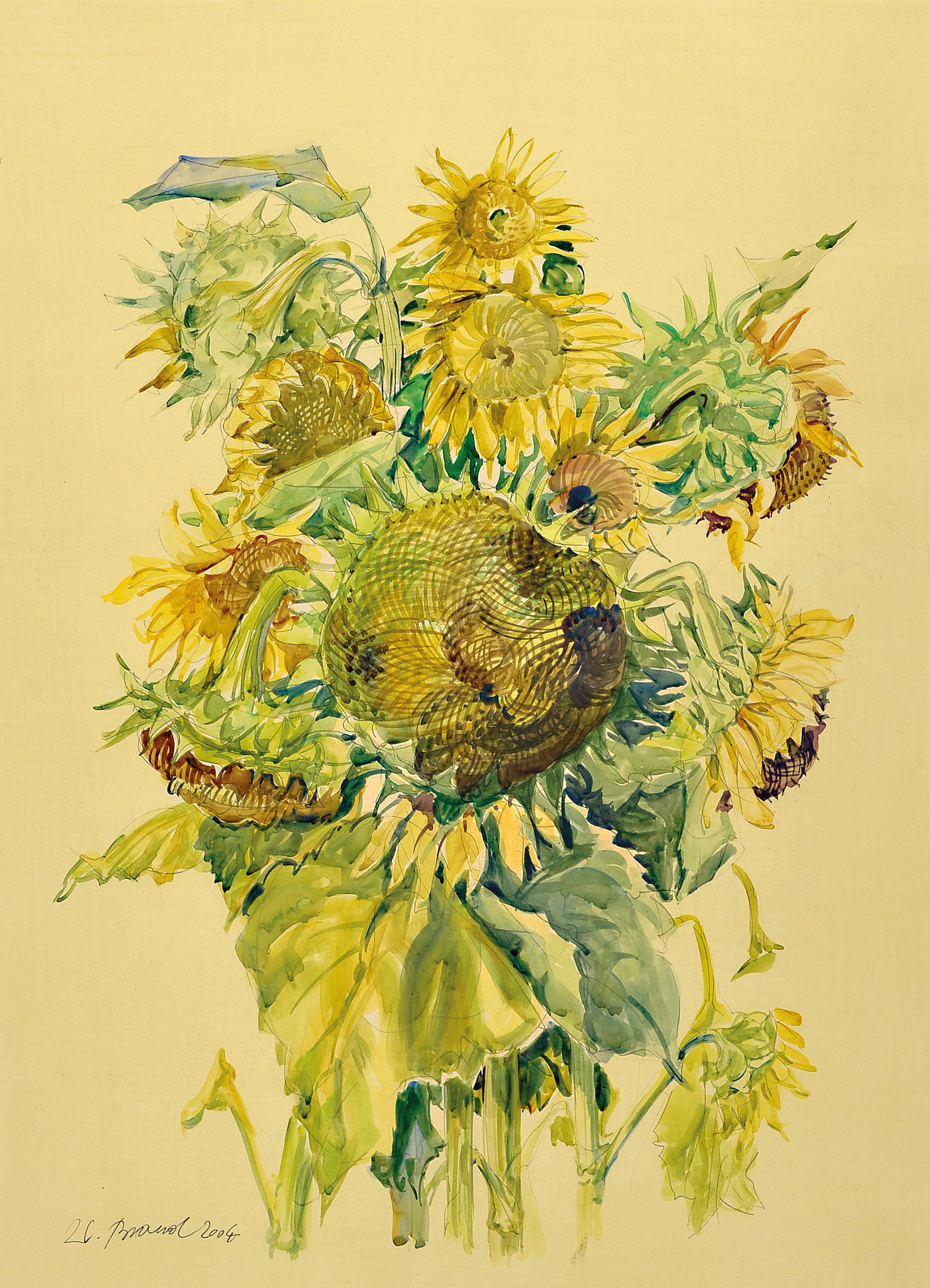 Werner Brand, 1933 Löbau-2021 Hochstadt, 3 Aquarelle mit Sonnenblumendarstellungen,