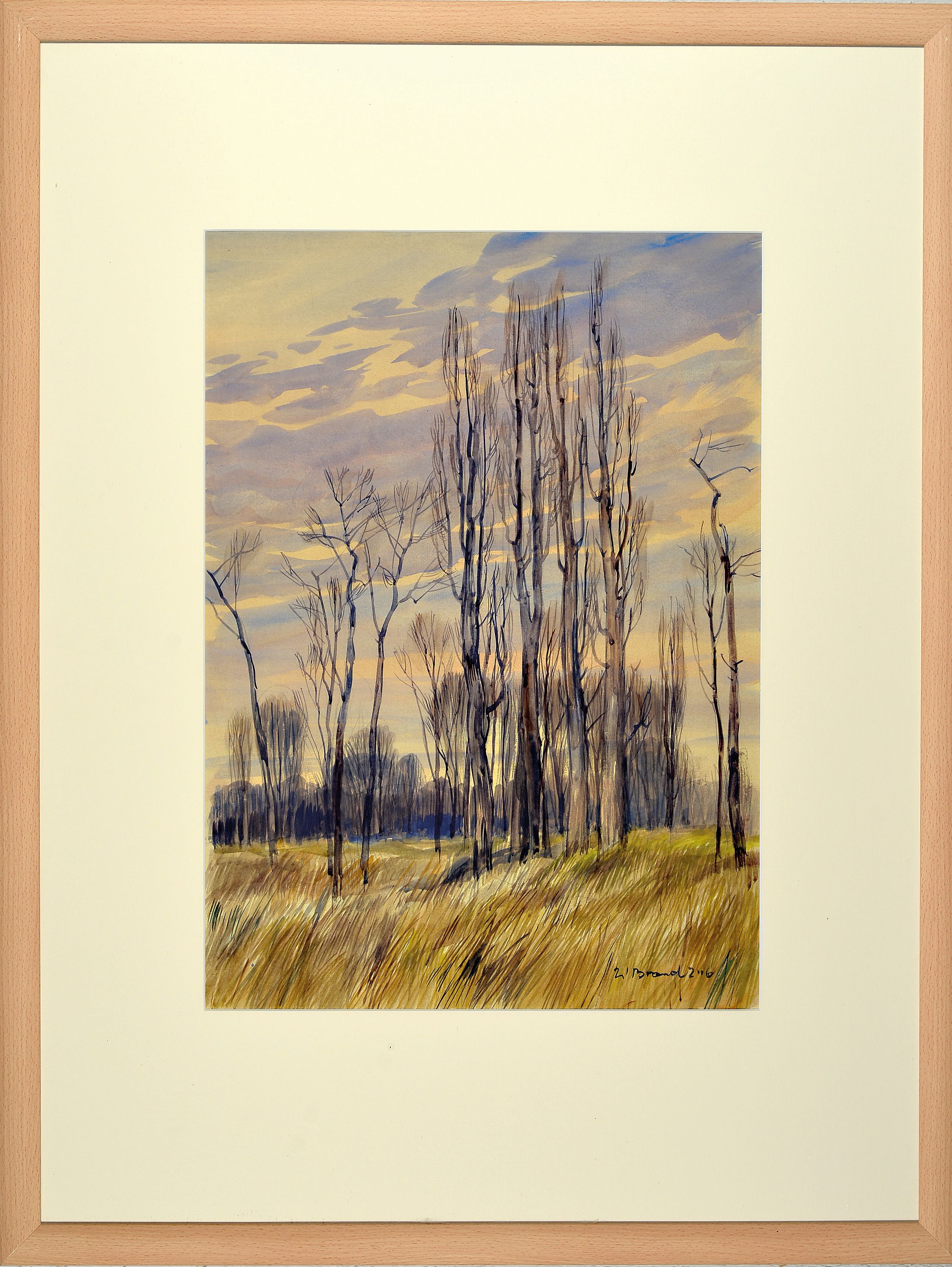 Werner Brand, 1933 Löbau-2021 Hochstadt, 2 Aquarelle: Pappeln im Winter, sign. und