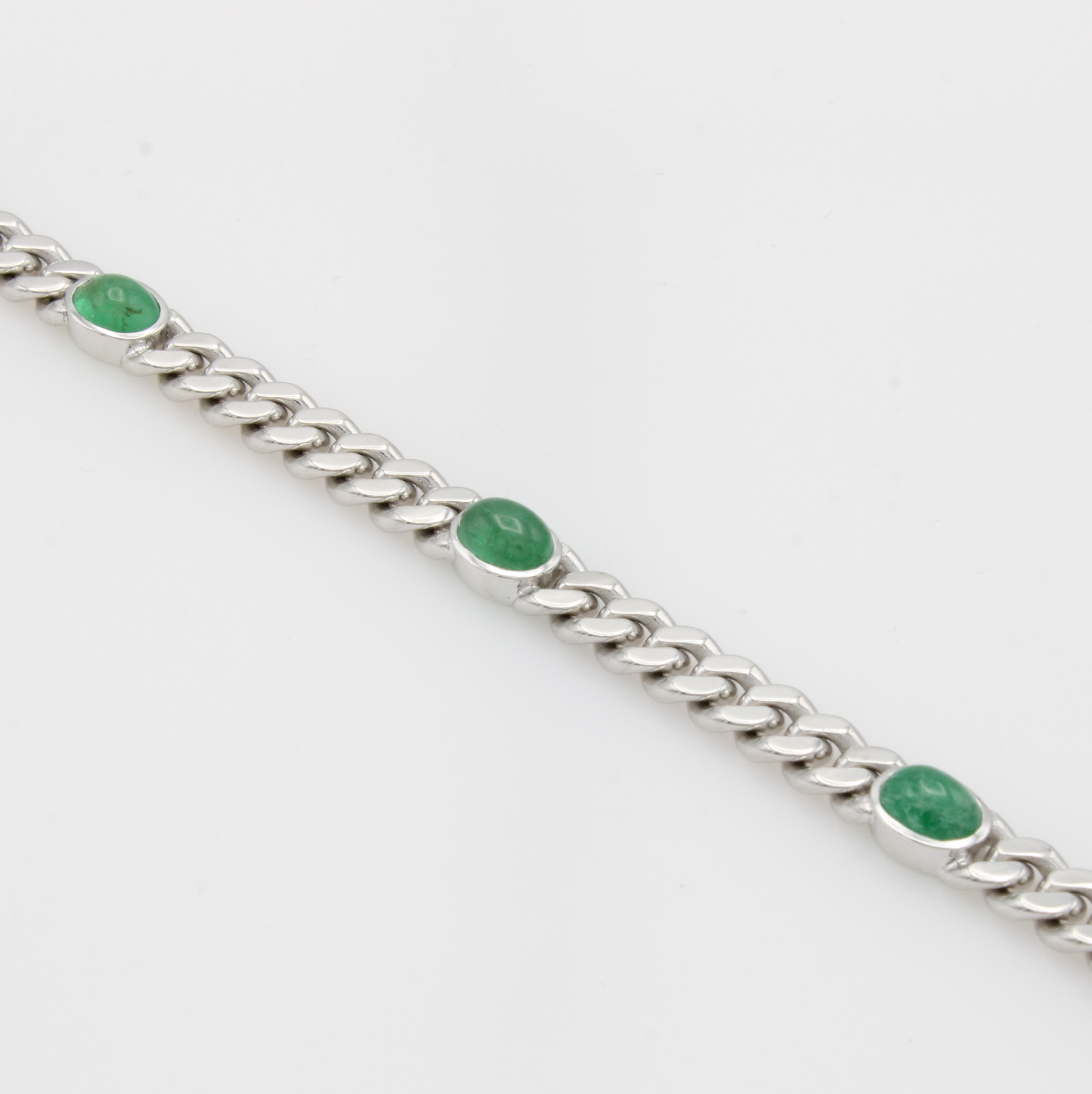 Panzerarmband mit Smaragdcabochons, WG 590/ 000, 5 Smaragde, Kastenschl. m. Sicherheits- achten, L. ca. 19 cm Schätzpreis: 13500, - EUR