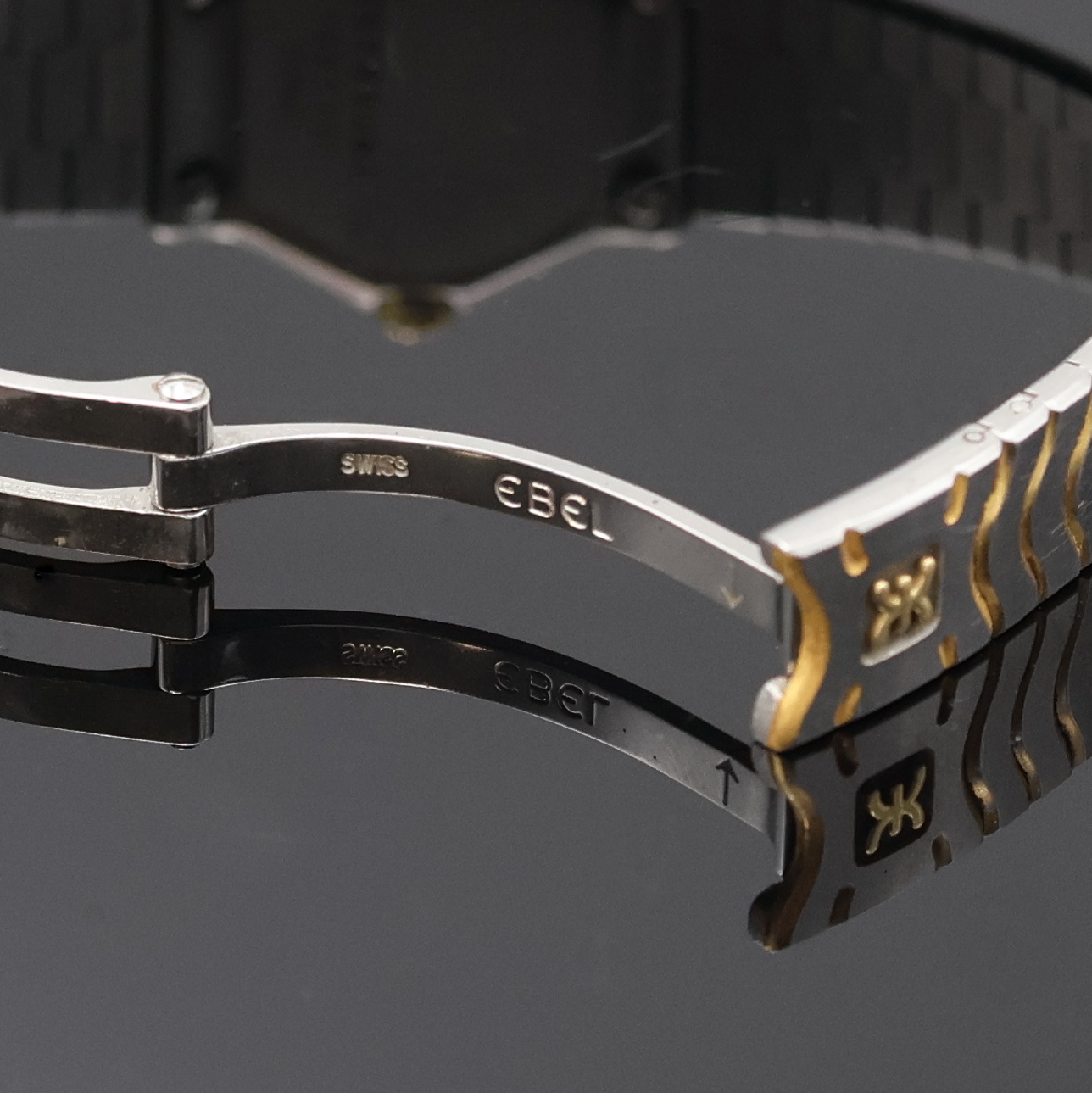 Geh. Edelstahl/Gold komb. inkl. Wellengliederband m. Faltschl., Lünette 5- fach