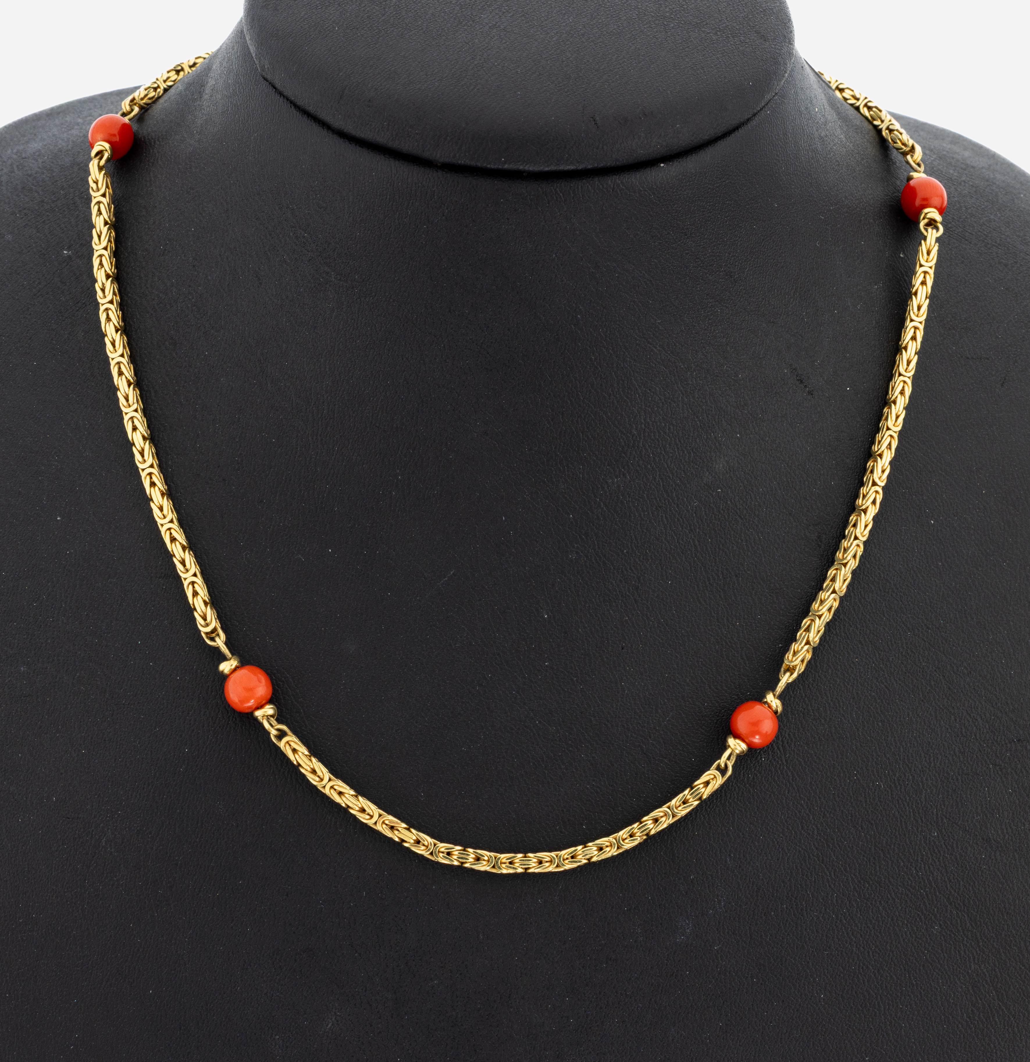 8 kt Gold Korallen-Königskette, GG 333/000,5 Korallenkugeln als Zwischenglieder,